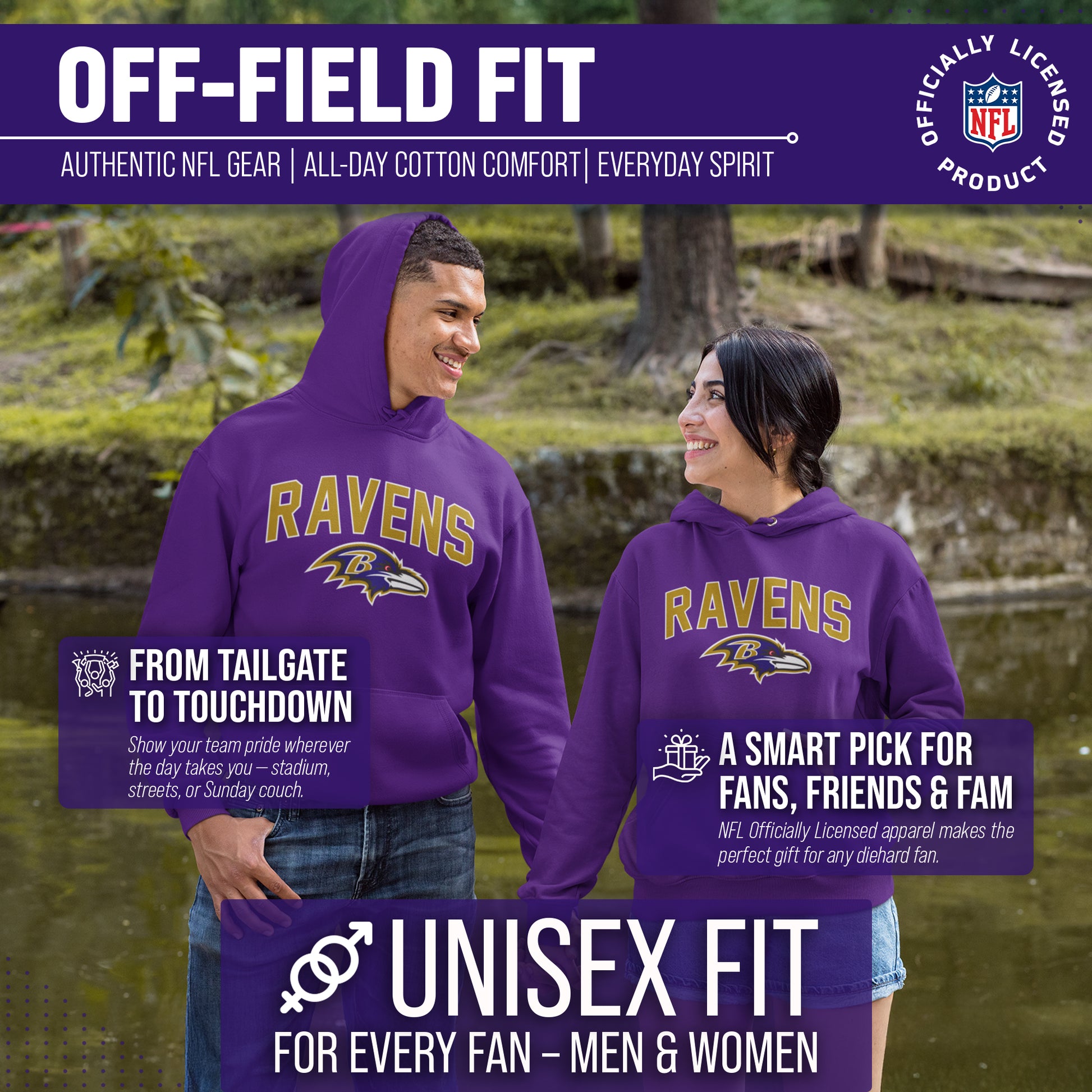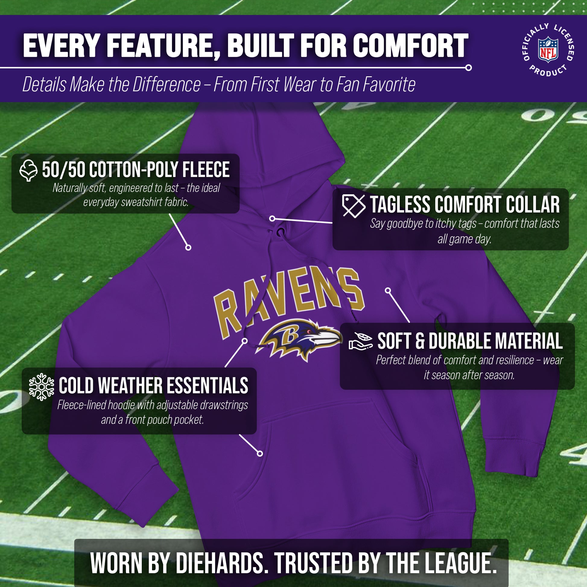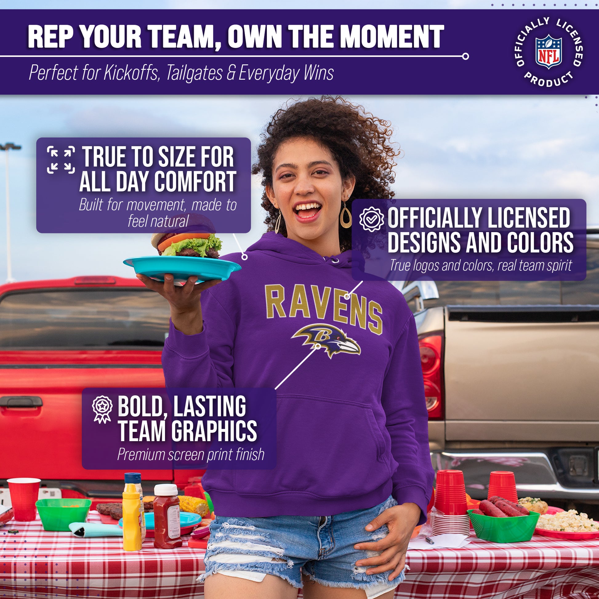 If you are looking for the ideal Ravens hoodie to wear with your sports outfit on game day, the Ravens Home Team Hood is perfect for you! This Ravens hoodie is great for showing team pride all year long. This is an essential piece of womens and mens football apparel for pro football fans. Our Baltimore Ravens team-colored hoodies are the perfect fan apparel for Baltimore Ravens tailgate outfits and sports games. This Baltimore Ravens hooded pullover with a pocket and drawstrings is ideal for warm or cold weather. The football pullover hoodie is made from a cotton poly blend fleece material with cotton face. Our Ravens hoodies also make the best Ravens gifts for men and women. If you are looking for the best Ravens gifts for women, Ravens shirts, Ravens hoodies, or Ravens winter clothes, look no further than the Team Home Hood. Get yours today!