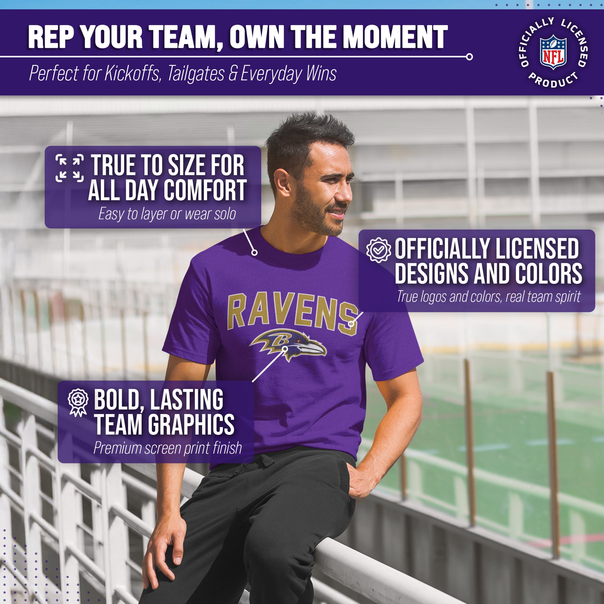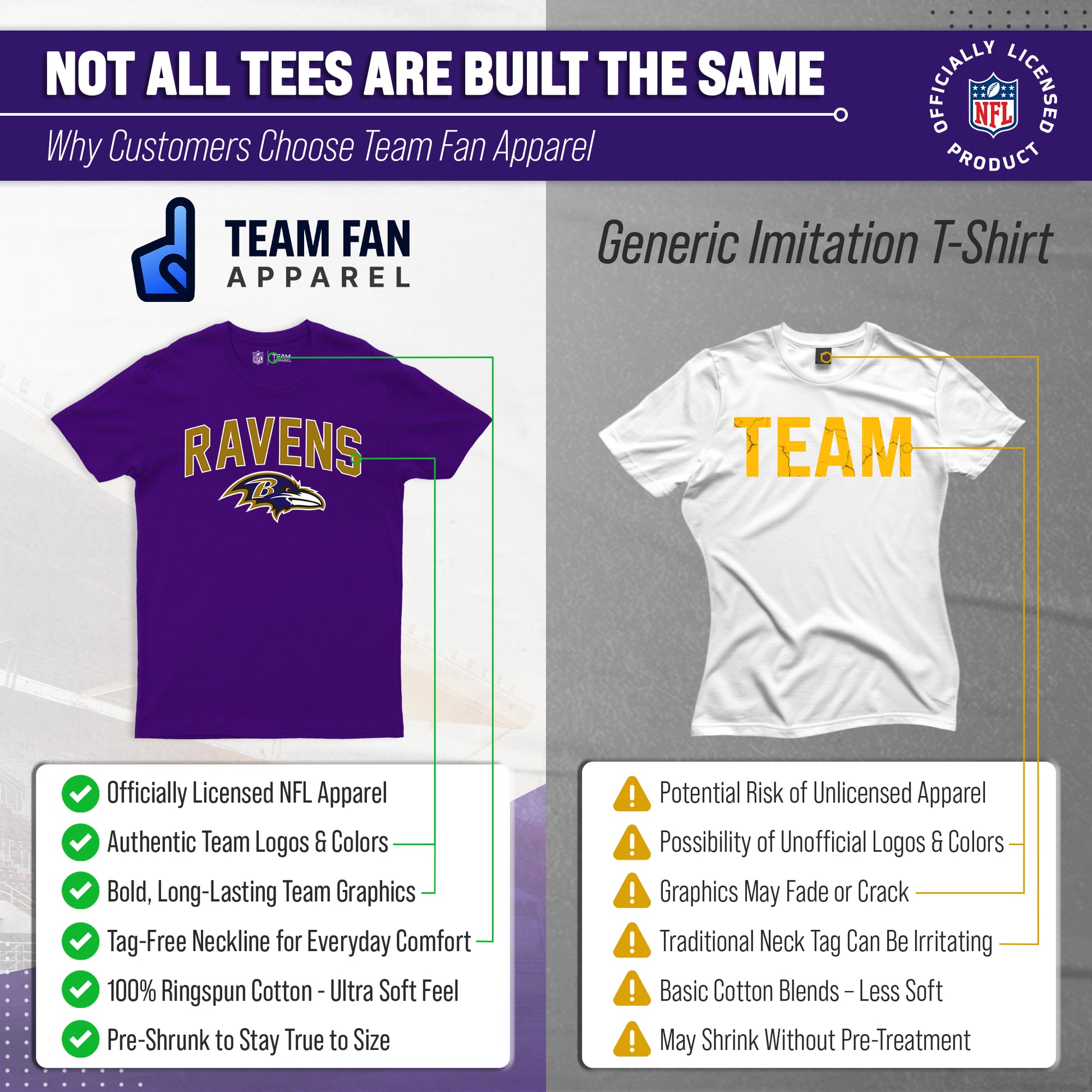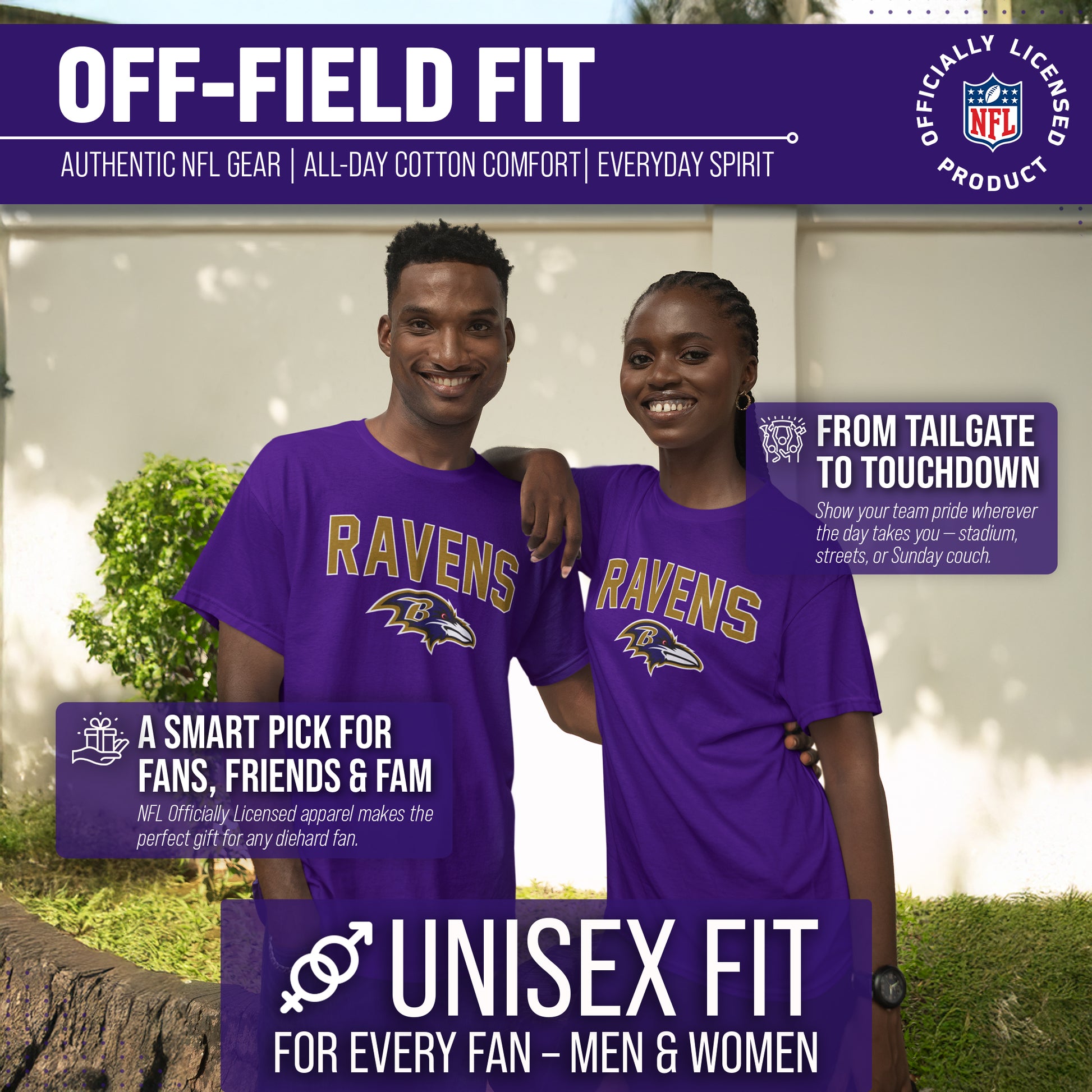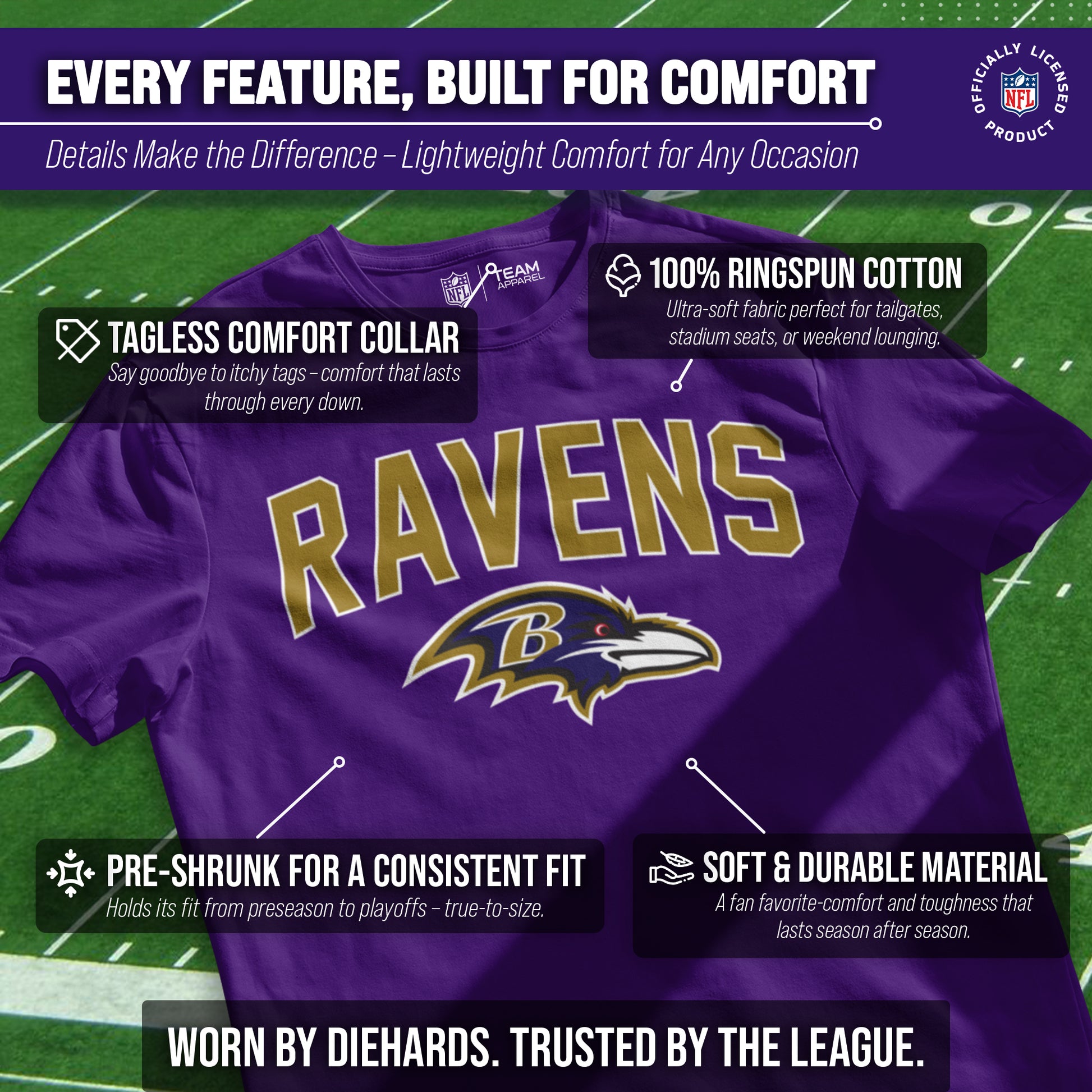 Looking for a comfortable, lightweight tee representing your favorite team? The Home Team Tee is for you! This Ravens t-shirt is made of cotton-poly fabric. It features the officially licensed Ravens wordmark in a trendy, thermally-printed design. It was made in the USA and is perfect for men or women. This tagless Ravens shirt is beyond comfortable and will keep you looking and feeling your best while you cheer on your favorite football team on game day. If you are looking for the best Baltimore Ravens gifts for men, Baltimore Ravens for women, pro football Baltimore Ravens shirts, football tshirts, mens and womens Ravens t-shirts, football merchandise Baltimore Ravens gear for men and women, lightweight & tagless Baltimore Ravens shirts, or Baltimore Ravens apparel, look no further than this Baltimore Ravens short sleeve fan shirt. It makes the perfect Father's Day or Christmas gift for Baltimore Ravens fans.