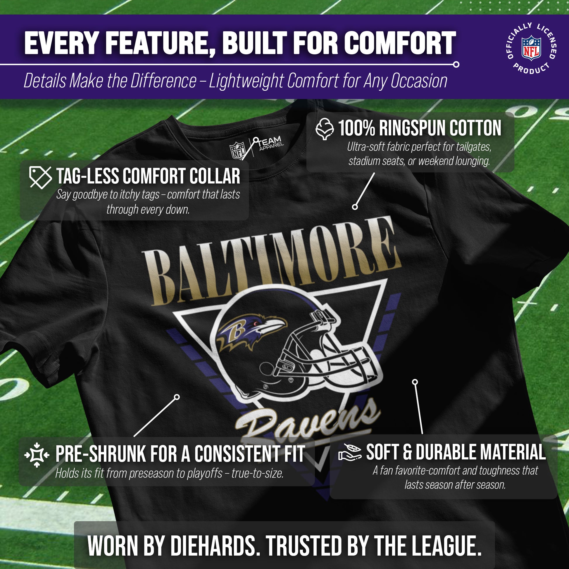 Show off Your Team Spirit with the Comfortable and Stylish Baltimore Ravens NFL Adult Retro Triangle T-Shirt! Support your favorite football team in style and comfort with this officially licensed Ravens t-shirt. Made from a soft and breathable ring-spun cotton, this shirt is perfect for game day or everyday wear. The tag-less design eliminates any annoying tags that can cause discomfort, making it even more comfortable to wear. Featuring a retro triangle design, this unisex t-shirt is suitable for both men and women. The short-sleeved style is perfect for warmer weather or layering under a jacket during colder months. Whether you're cheering on your team at the stadium or watching the game from home, this t-shirt is the ultimate fan apparel. So go ahead and show off your Ravens team pride with the NFL Adult Retro Triangle T-Shirt - because nothing beats comfortable, stylish, and officially licensed fan gear!