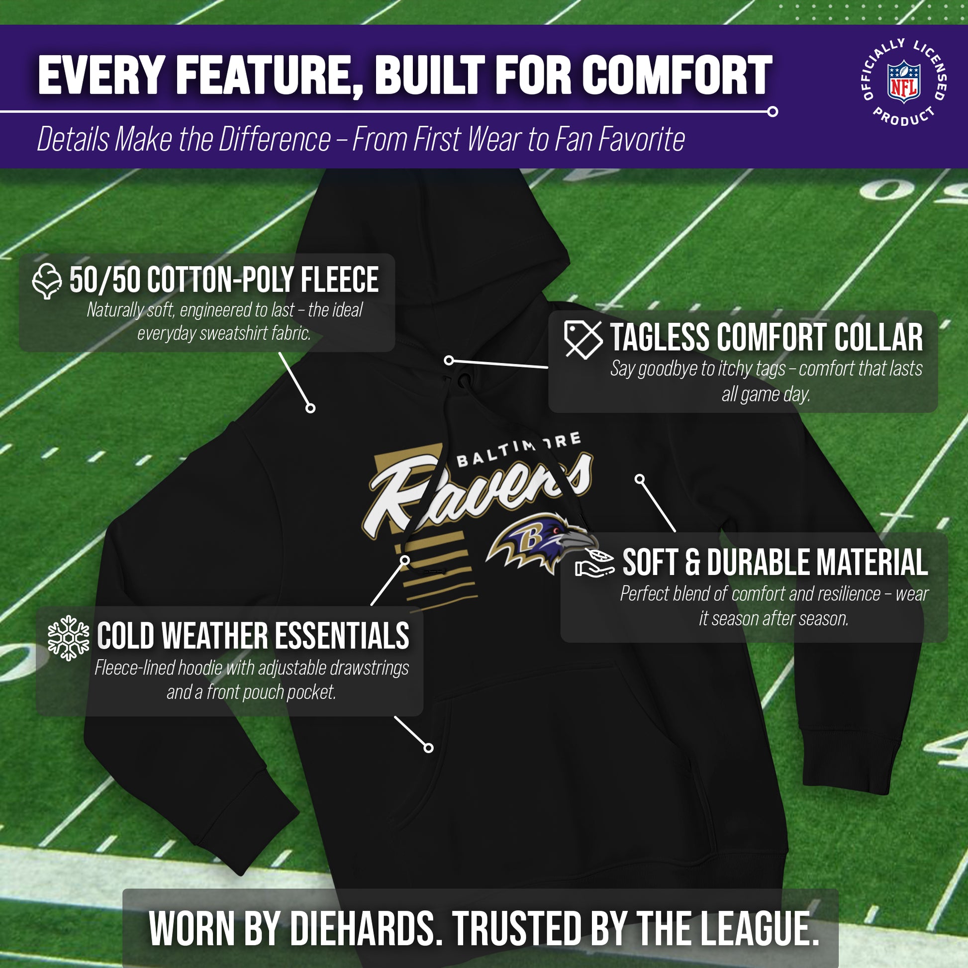 Baltimore Ravens NFL Adult Unisex Retro Script Ultra Soft Fleece Hooded Sweatshirt - Black