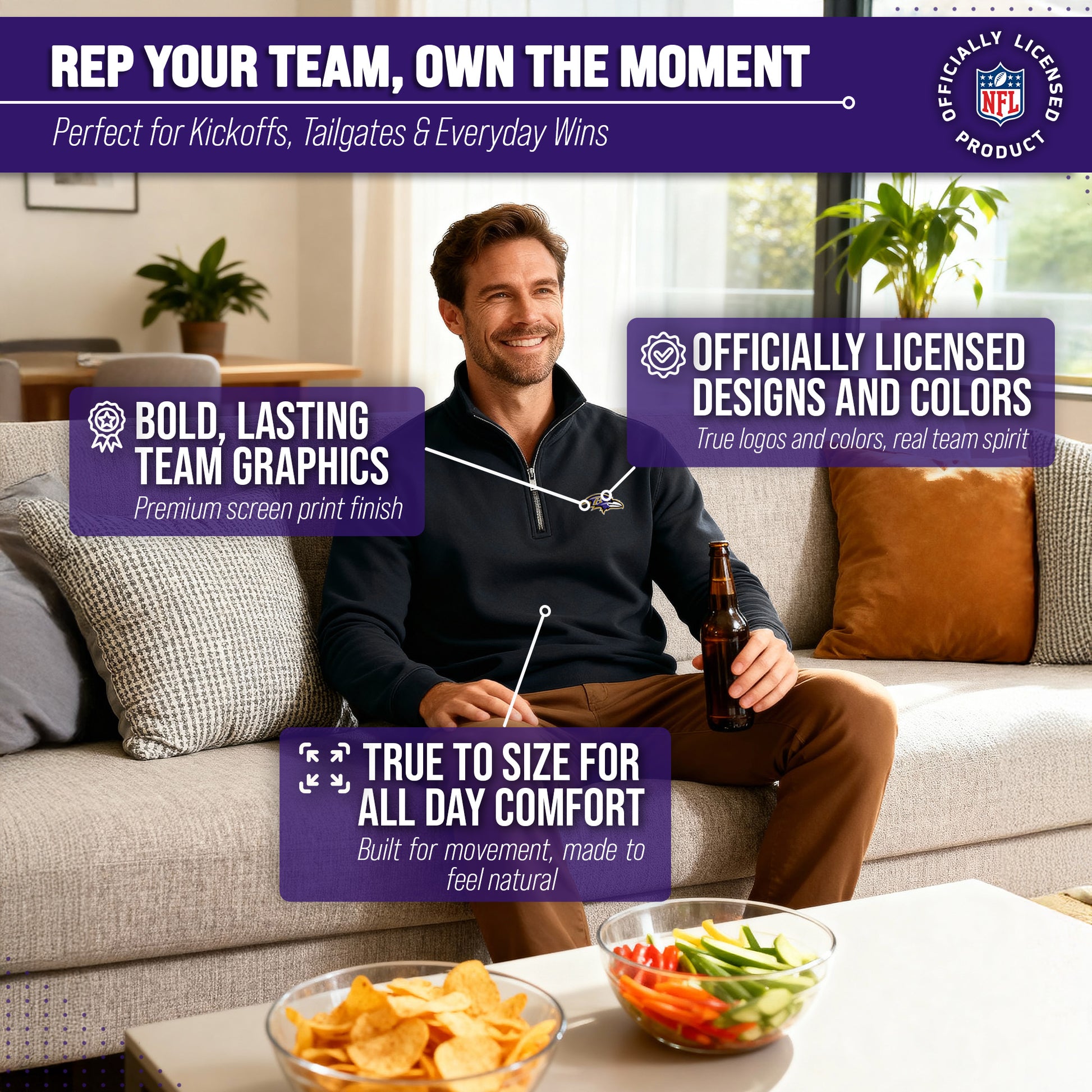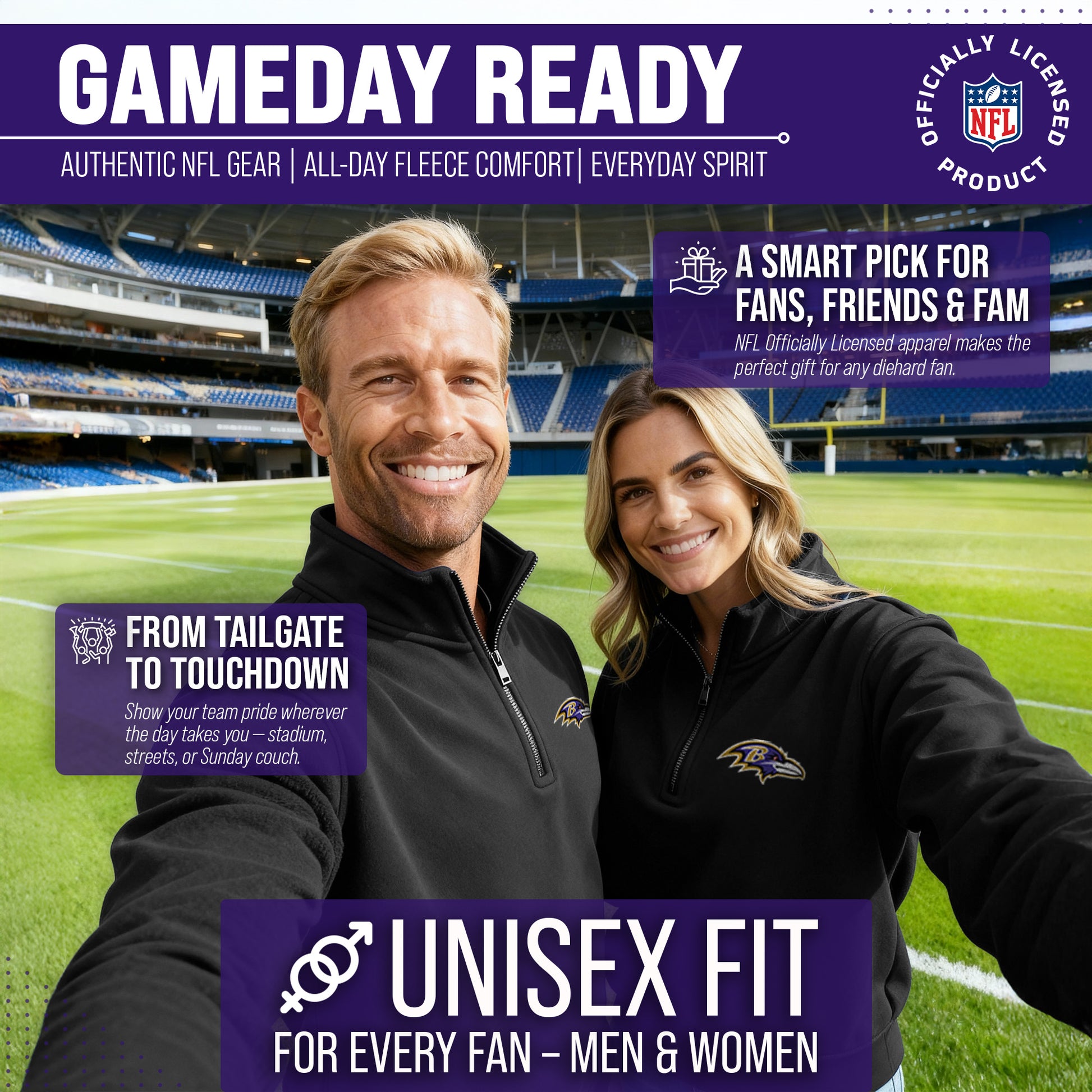 Show off your Baltimore Ravens pride with the officially licensed NFL Team Logo 1/4 Zip Fleece Pullover Sweatshirt! Designed with fans in mind, this cozy and stylish pullover is the perfect way to represent your favorite team all season long. Crafted with ultra-soft fleece fabric, it delivers warmth and comfort whether you’re braving chilly stadium seats, tailgating with friends, or simply cheering on the Ravens from home. The classic quarter-zip design adds versatile style and makes layering easy, so you can throw it on over a tee or under a jacket as the temperature drops. With the authentic Baltimore Ravens logo proudly displayed on the front left chest, your loyalty will be clear to everyone around you. No matter where game day takes you, this pullover is a statement piece that showcases true Ravens spirit. Made for both men and women, this sweatshirt features a flattering unisex fit that looks great on all body types. It’s available in a full range of sizes to ensure every Ravens fan finds the right fit. Whether you’re hunting for your next go-to tailgate outfit, upgrading your cold-weather game-day look, or shopping for the perfect gift for a fellow football fan, this 1/4 zip fleece is an unbeatable choice. Durable, versatile, and stylish, the Baltimore Ravens 1/4 Zip Fleece Pullover Sweatshirt is a must-have addition to any fan’s wardrobe. From Sunday kickoffs to casual everyday wear, you’ll stay warm, comfortable, and proud to rep the Ravens every time you put it on. Don’t miss your chance to gear up—this essential fan favorite is ready to help you cheer on your team in style!