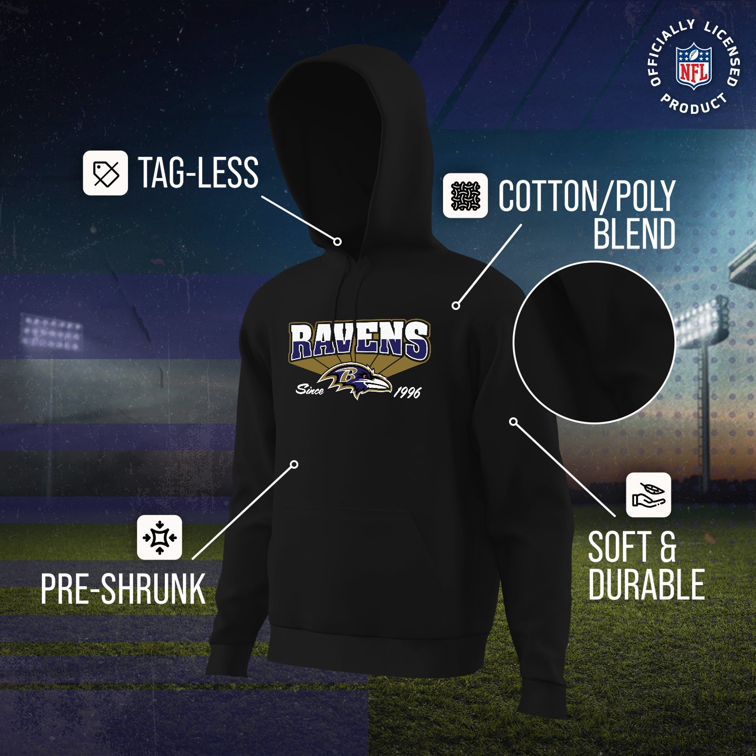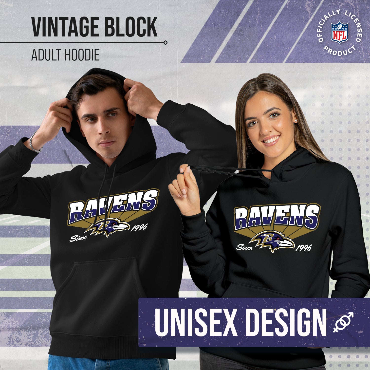 Baltimore Ravens NFL Adult Unisex Vintage Block Ultra Soft Fleece Hooded Sweatshirt - Black