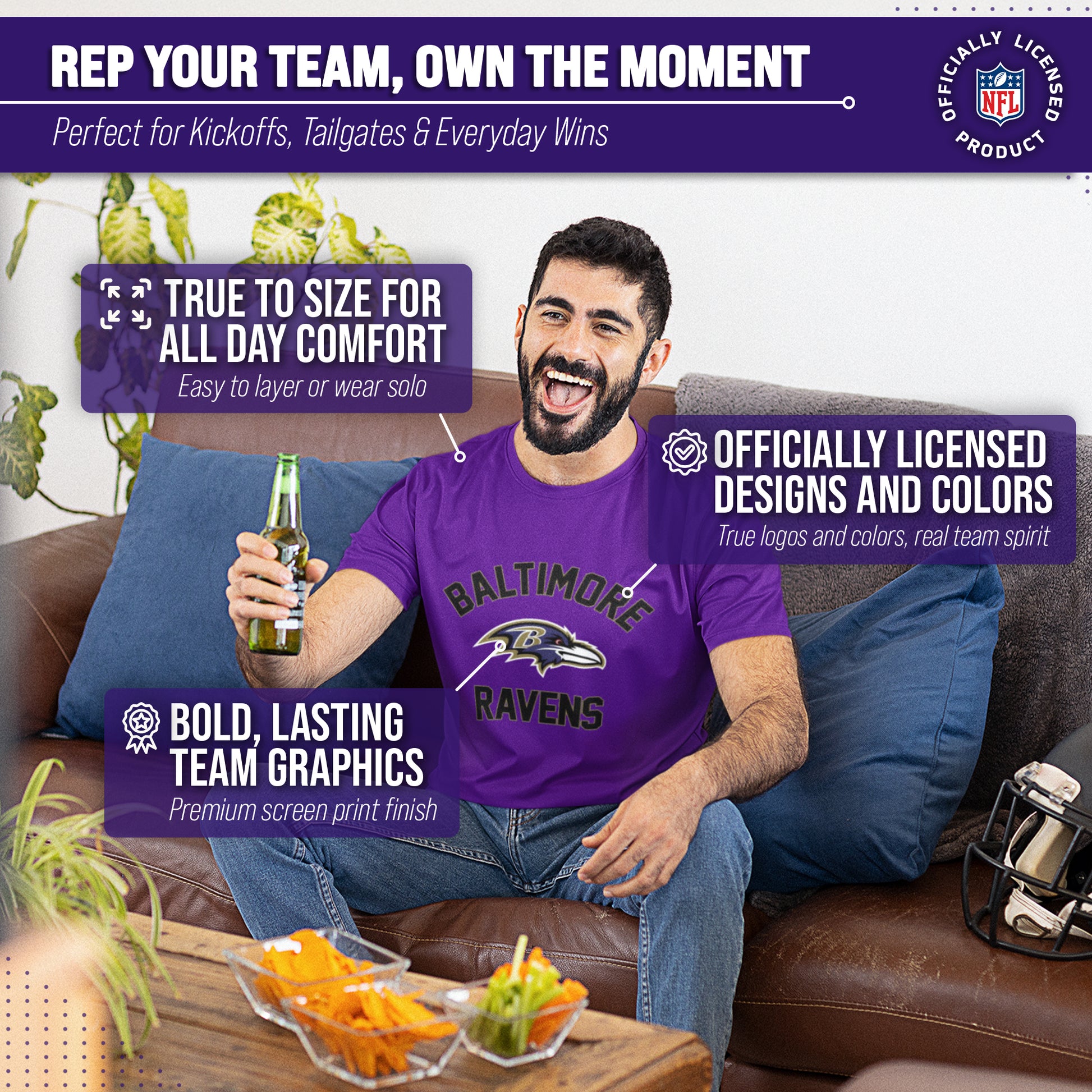 Baltimore Ravens NFL Adult Gameday T-Shirt - Purple