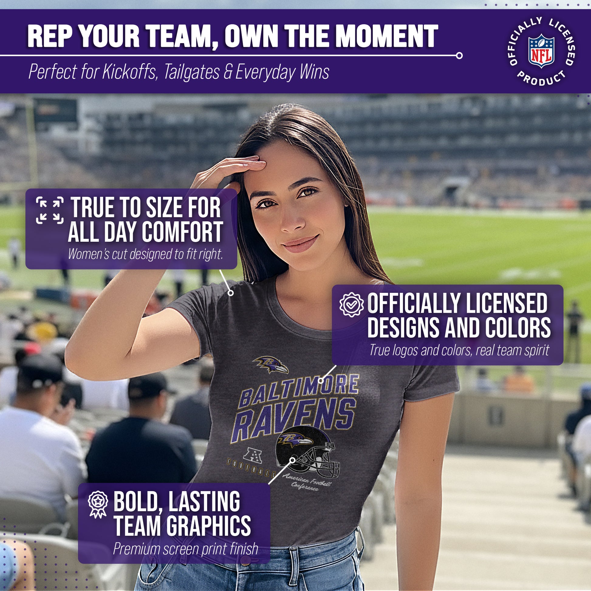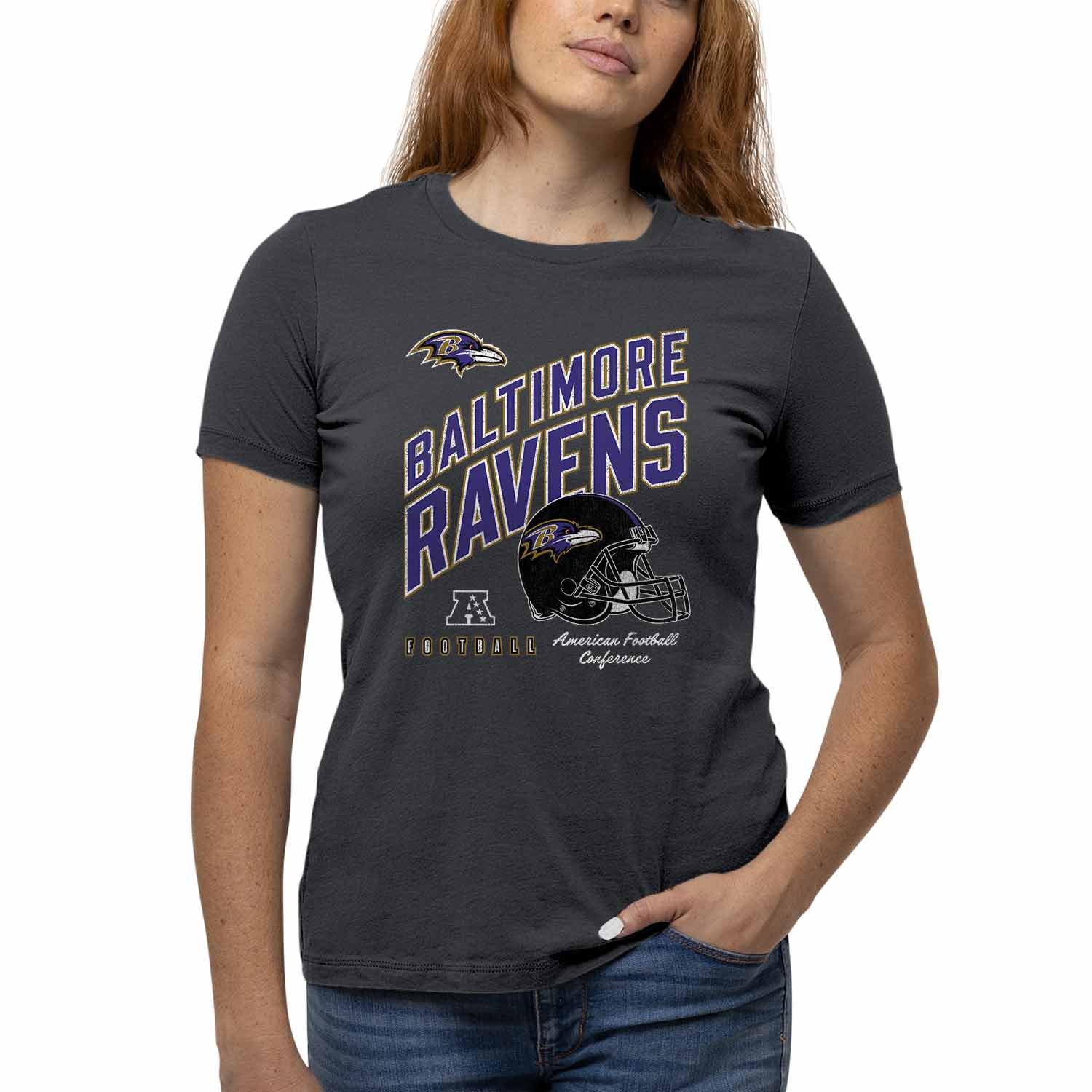 Baltimore Ravens NFL Womens Distressed Helmet Tag-Less Soft T-Shirt - Heather Charcoal