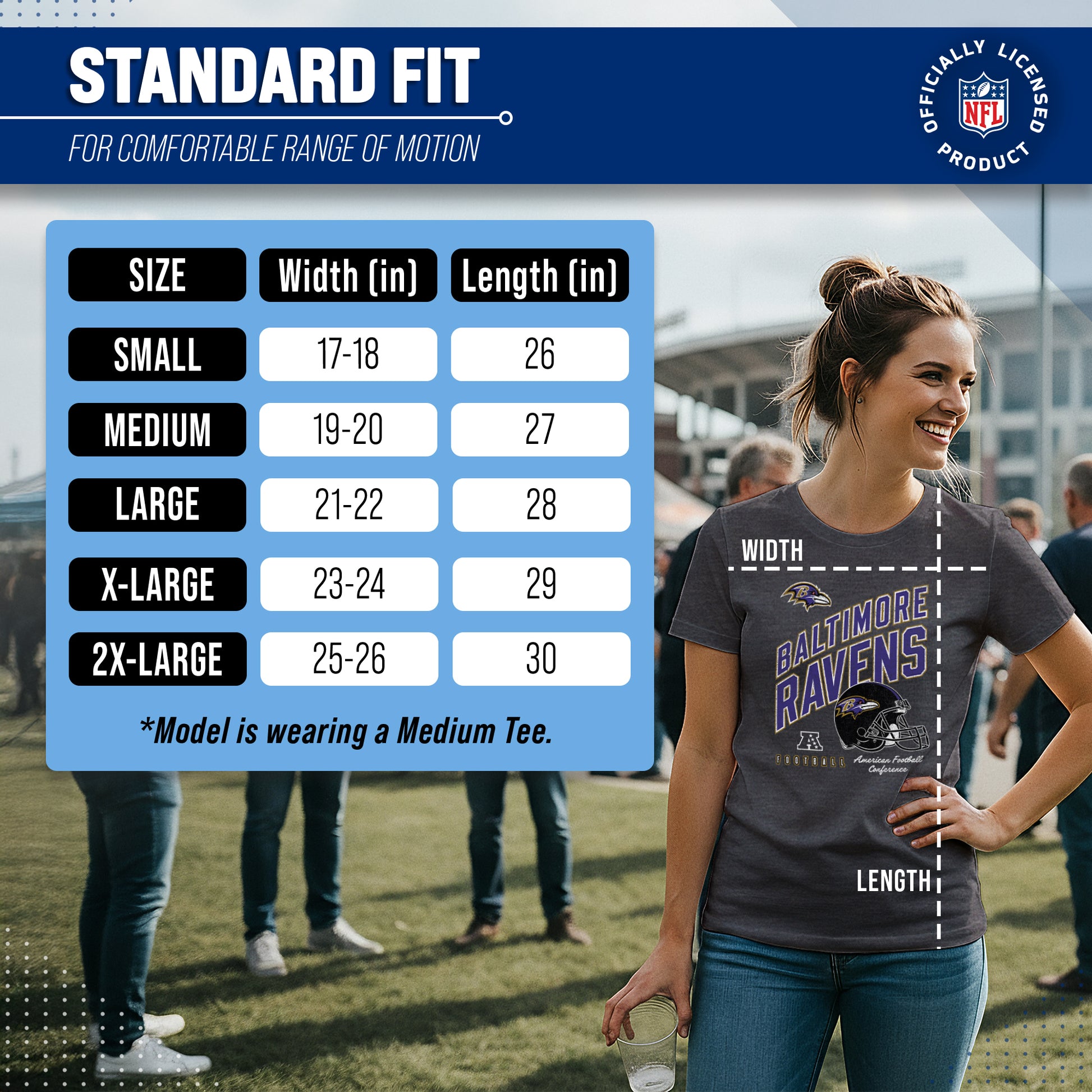Calling all ladies! Get ready to rock game day with the Women's Team Fan Apparel Distressed Helmet T-Shirt! This comfortable and stylish Baltimore Ravens womens tee is perfect for any female football fan, whether you're cheering on your favorite team at the stadium or watching from home. Made from a super soft cotton fabric , this shirt will keep you cool and comfortable all game long. The helmet, team name, team logo and official team color adds a touch of retro flair, while the tag-less design ensures itch-free wear. Whether you're a die-hard fan or just love a good simple look, this shirt is perfect for showing off your team spirit. Available in a wide range of women's sizes, it's suitable for all shapes and sizes! So grab your girlfriends and get ready to cheer on your team in style with the Women's Team Fan Apparel Distressed Helmet T-Shirt!