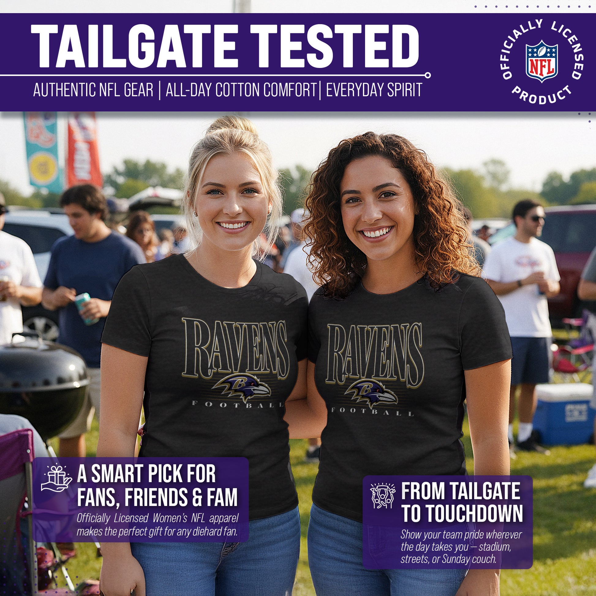Calling all ladies! Get ready to rock game day with the Women's Team Fan Apparel Overtime Blueprint T-Shirt! This comfortable and stylish Baltimore Ravens womens tee is perfect for any female football fan, whether you're cheering on your favorite team at the stadium or watching from home. Made from a super soft cotton fabric , this shirt will keep you cool and comfortable all game long. The text, logo and official team color adds a touch of retro flair, while the tag-less design ensures itch-free wear. Whether you're a die-hard fan or just love a good classic look, this shirt is perfect for showing off your team spirit. Available in a wide range of women's sizes, it's suitable for all shapes and sizes! So grab your girlfriends and get ready to cheer on your team in style with the Women's Team Fan Apparel Overtime Blueprint T-Shirt!