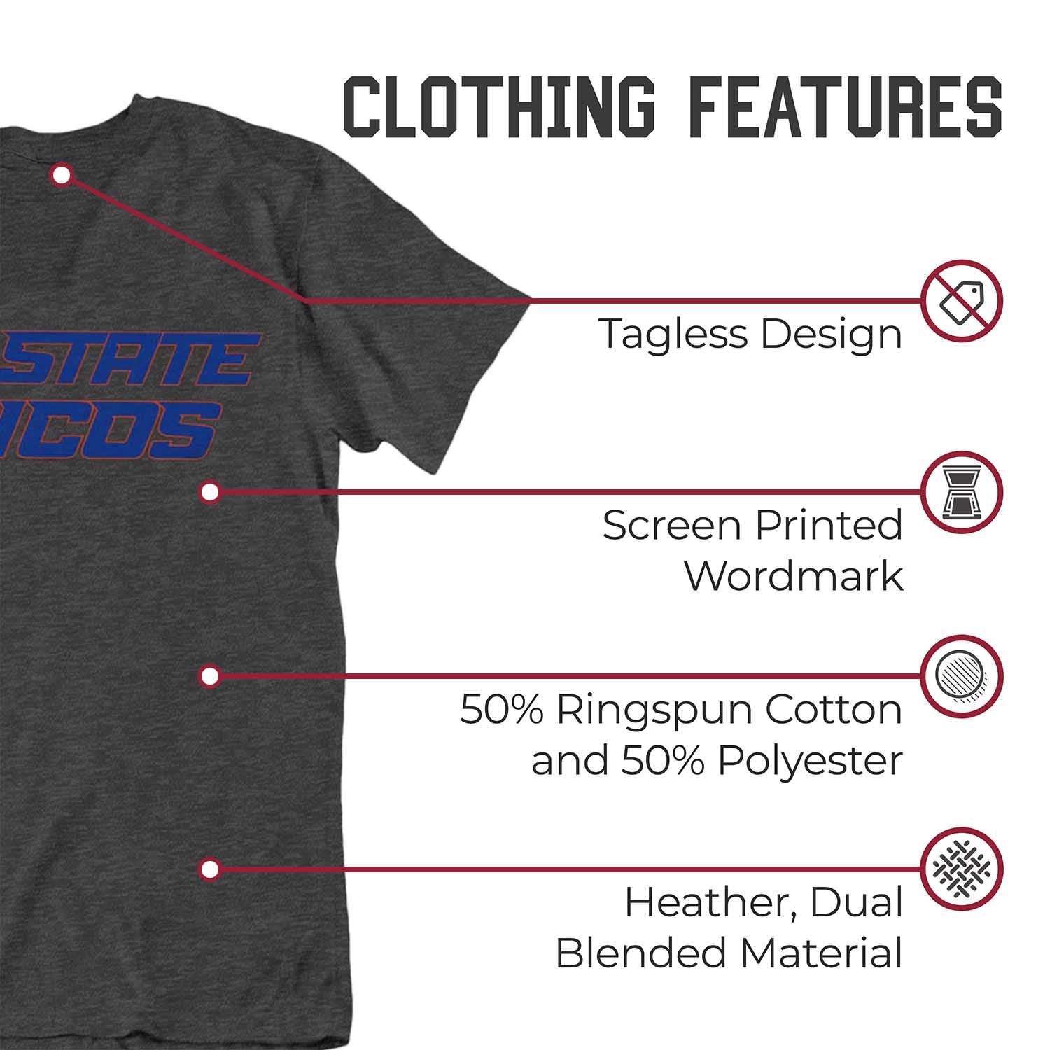 The Campus Colors Adult Heather College wordmark T-Shirt is the ultimate light, soft, and comfortable college tee. These college tshirts for mens and womens short sleeve shirt is the most versatile college or university apparel. Let us help you celebrate and showcase school pride with our durable and lightweight t-shirt. This tee features a quality, screen printed wordmark that will last wear after wear. The official wordmark design gives you the look of a loyal and seasoned sports or school fan and the unique heather, dual-blended material gives a trendy, distressed look without that heavy printed feel. Made of 50% ringspun cotton and 50% polyester, the dual blend material is extremely soft, smooth and comfortable. These Boise State t shirts comes without a tag, so you'll never feel annoyed or irritated by those pesky neck tags again! This tee is essential apparel for any college sports fan or university student. This classic college apparel t-shirt will stand out and is perfect for walking around campus, going to class, hanging out with friends, or wearing to the gym. It's the perfect college shirt for staying cool at a hot gameday tailgate! The unisex fit and design makes it ideal for both men and women! Quality college t shirt makes the best birthday, Christmas, or graduation gifts for current students, alumnus, upcoming graduates, proud parents or NCAA fans; Our university t-shirts run true to size. All quality logos and colors are officially licensed and are of the highest quality. Show off your school pride with this official short sleeve t-shirt! Be confident and wear this Boise State shirt knowing your fandom is superior.