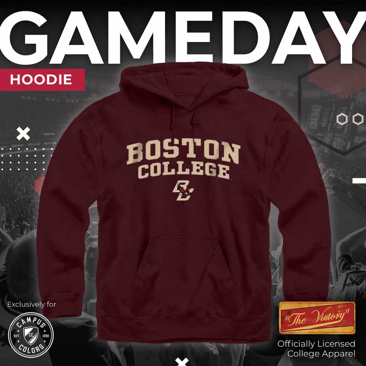 When the weather gets cool, keep your Eagles loyalty hot! The�Boston College Eagles Adult� Arch & Logo Gameday Hooded Sweatshirt is just what you need! This cotton/polyester fleece hooded sweatshirt is comfortable yet durable and is the perfect weight for that chilly game day or that brisk outdoor activity. Your pride will be radiating with the bold colors and clear, vibrant graphics! The screen printed graphics feature your school's name and official team logo! Whether you are wearing it in the stands, cheering on your squad at home, or wearing it around town running errands, this sweatshirt is an amazing addition to any die-hard fans wardrobe! Perfect for yourself, a soon to-be graduate, or even an alum, this great hoody lets you show off your Eagles fandom.