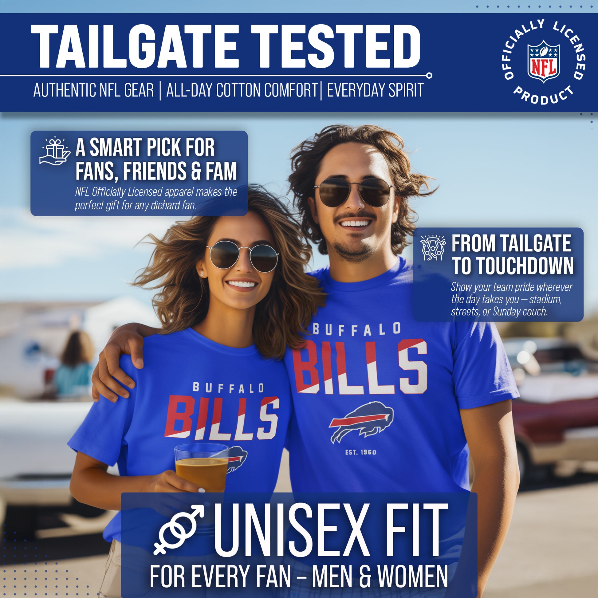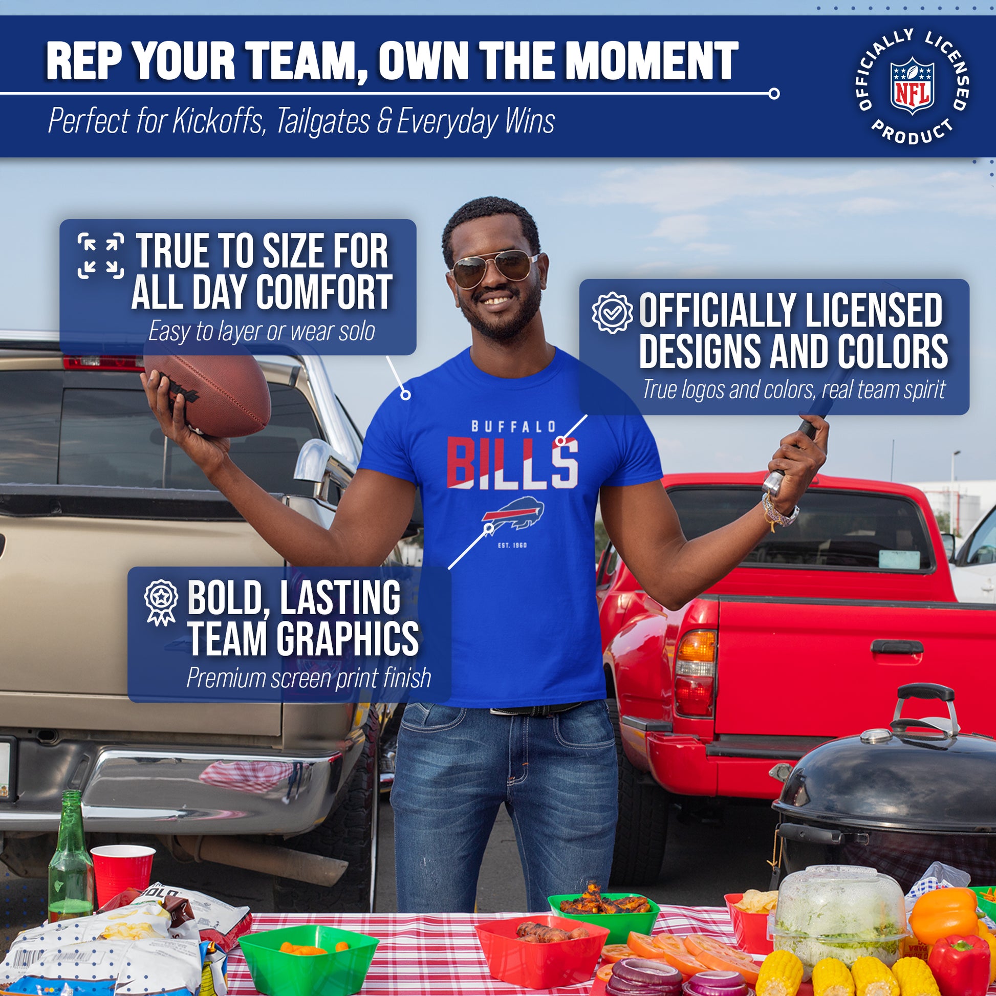 Score with Team Fan Apparel, the ultimate destination for officially licensed NFL apparel for men and women. We use only the highest quality screen printing techniques to bring you the most comfortable, durable, and stylish clothing possible. Go ahead and show your team pride at the big game or any time! This premium t-shirt fits both male and female adults and comes in small, medium, large, XL, and XXL. So needless to say, it fits Buffalo Bills fans of all types! Maybe you aren't a Bills fan but you know someone who is? Don't worry! This high-quality t-shirt is soft, lightweight, breathable and a GREAT gift for any birthday, anniversary, Father's Day, Mother's day, you name it! So, if you want to stand out as the #1 fan at the next big game or watch party, you're going to want to be wearing one of these hockey t-shirts.