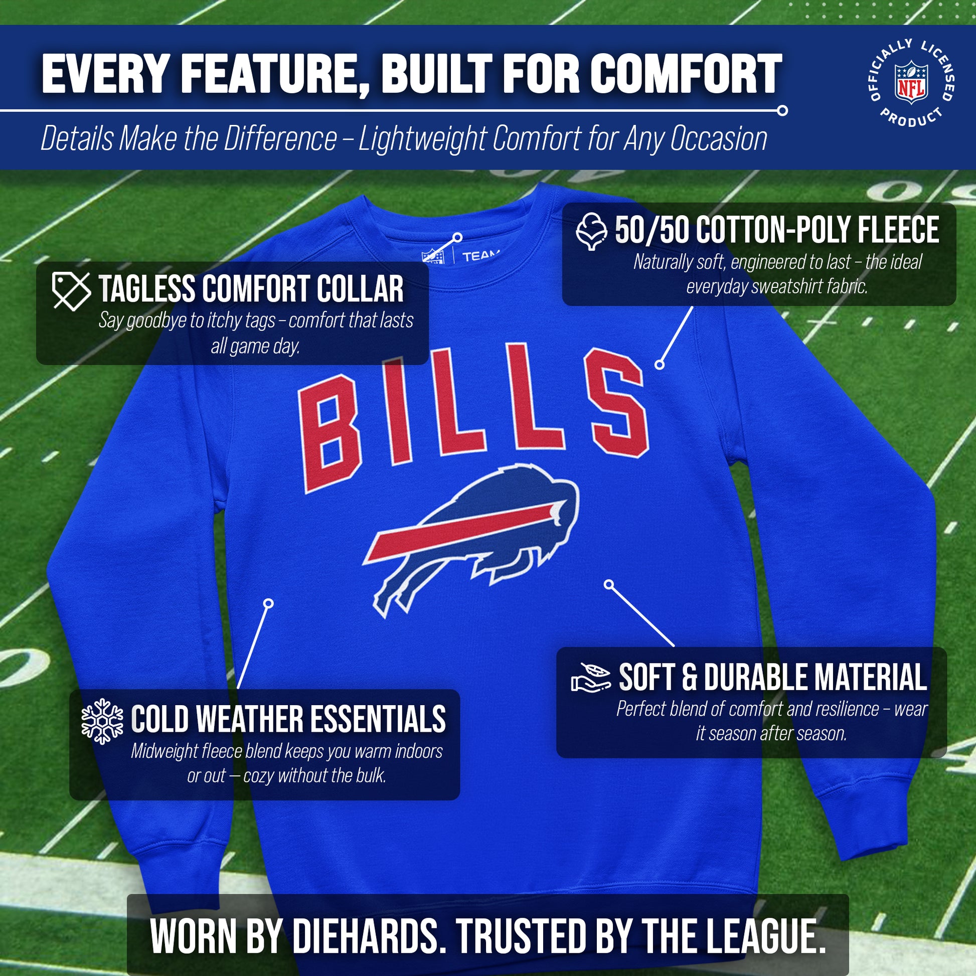 If you are looking for the best football gift for a Bills fan, the Home Team Crew is perfect for you! This Bills sweatshirt is great for showing team pride all year long. Our Buffalo Bills sweatshirts are the perfect fan apparel for Buffalo Bills tailgate outfits and games. This Buffalo Bills pullover is ideal for cold weather. The football pullover sweatshirt is made from a cotton-poly blend fleece material with a cotton face. Our Bills crewneck sweatshirts also make the best Bills gifts for men and women. Give this Buffalo Bills crew as an oversized sweatshirt gift for your boyfriend or girlfriend. If you are looking for the best Bills gifts for women, Bills shirts, Bills sweatshirts, or Bills winter clothes, look no further than the Home Team Crew. Get yours today!