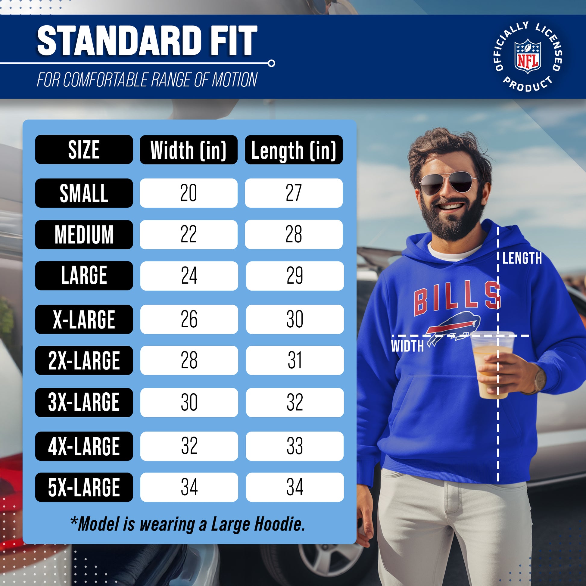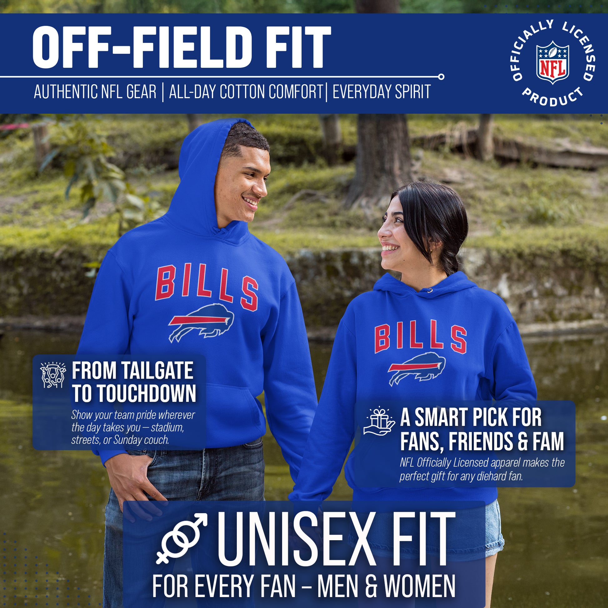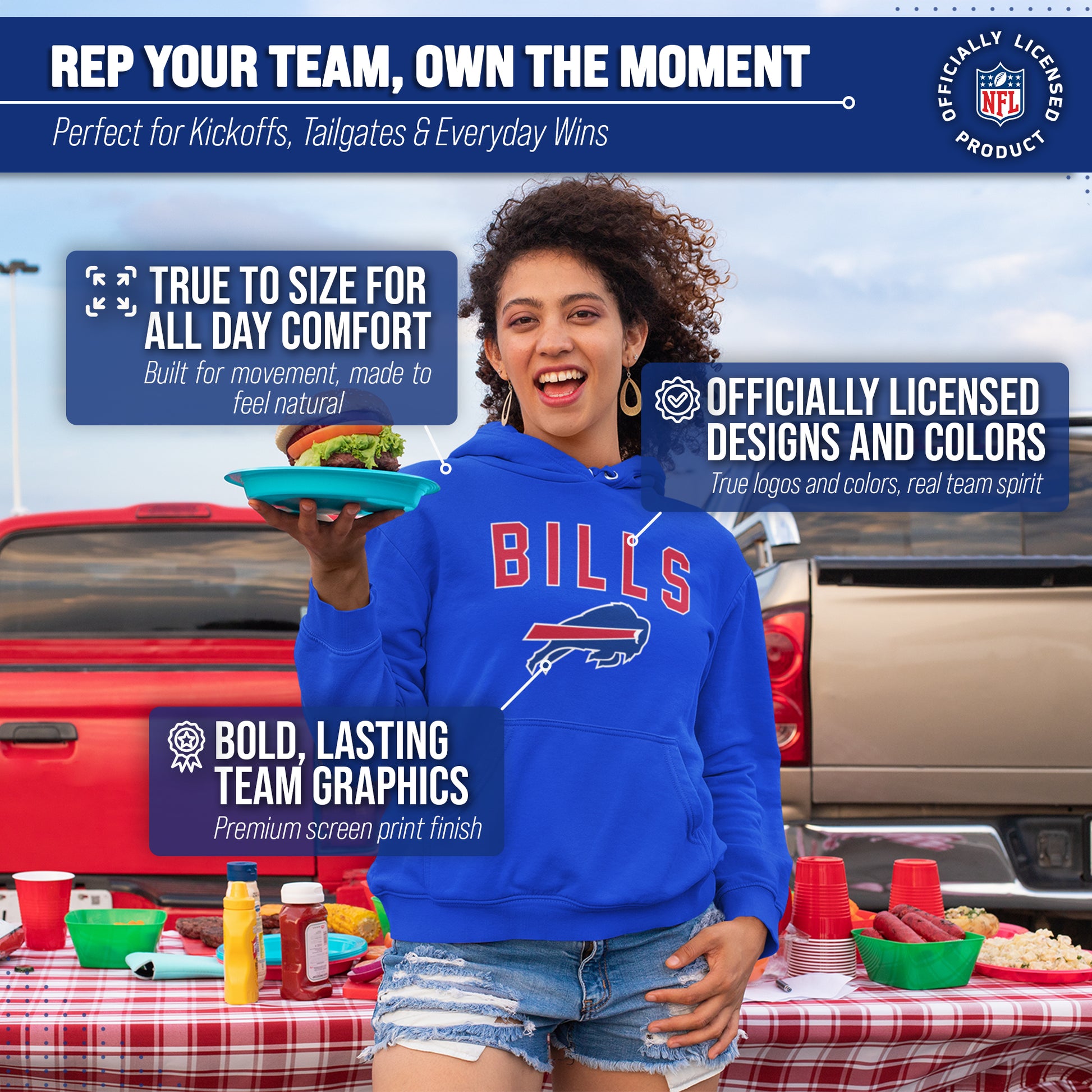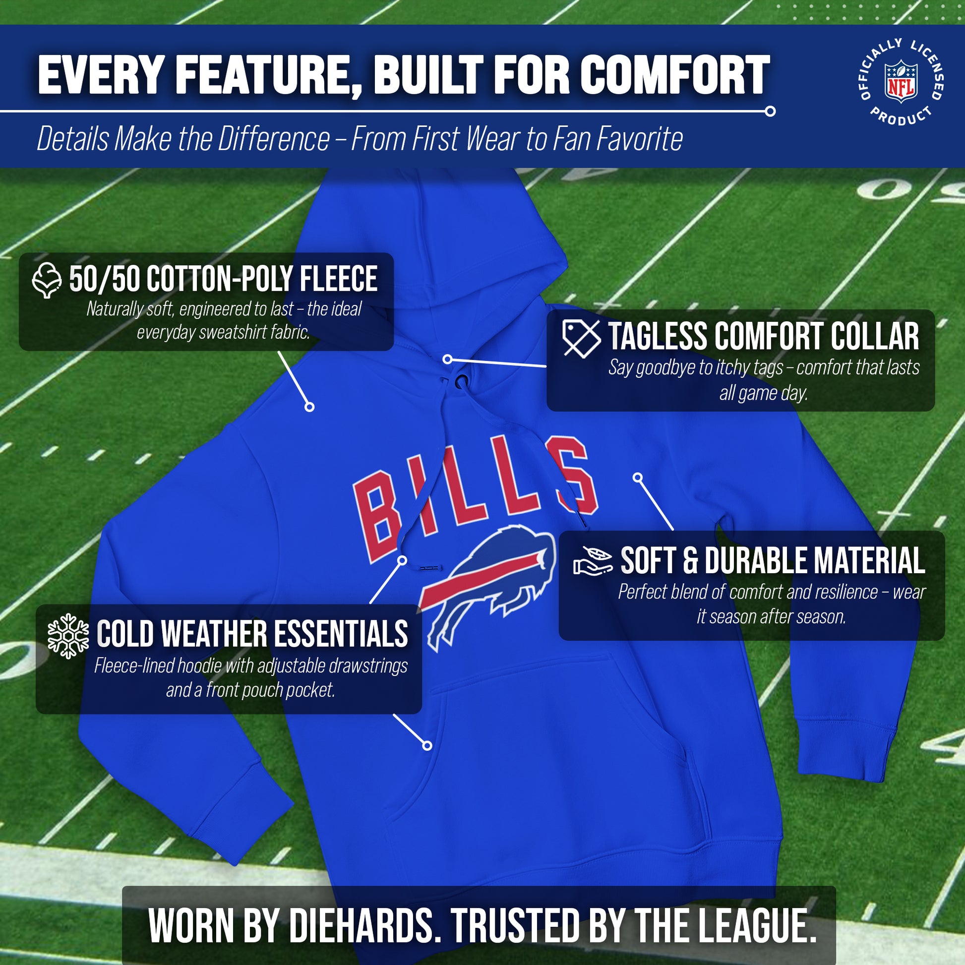 If you are looking for the ideal Bills hoodie to wear with your sports outfit on game day, the Bills Home Team Hood is perfect for you! This Bills hoodie is great for showing team pride all year long. This is an essential piece of womens and mens football apparel for pro football fans. Our Buffalo Bills team-colored hoodies are the perfect fan apparel for Buffalo Bills tailgate outfits and sports games. This Buffalo Bills hooded pullover with a pocket and drawstrings is ideal for warm or cold weather. The football pullover hoodie is made from a cotton poly blend fleece material with cotton face. Our Bills hoodies also make the best Bills gifts for men and women. If you are looking for the best Bills gifts for women, Bills shirts, Bills hoodies, or Bills winter clothes, look no further than the Team Home Hood. Get yours today!