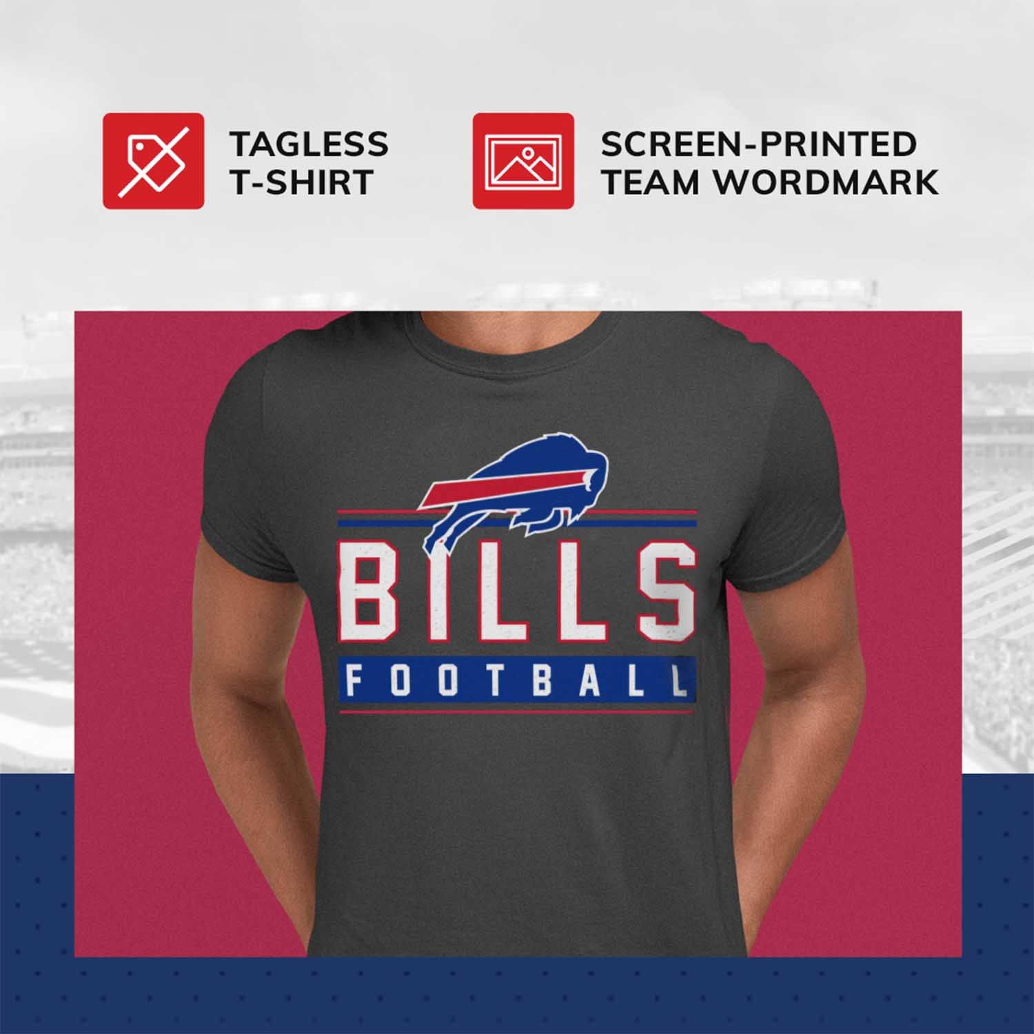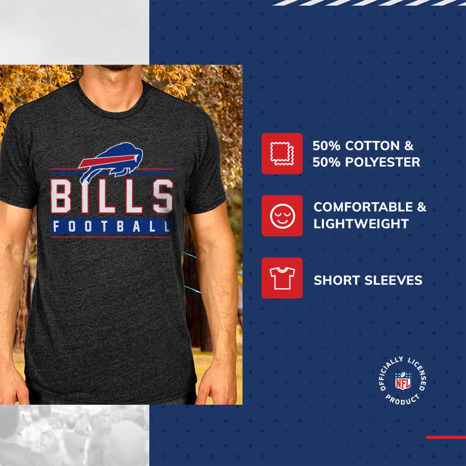 The True Fan womens and mens Buffalo Bills t shirts are the ultimate light, soft, and comfortable tee. These Buffalo Bills tshirts are the most versatile football apparel. Let us help you celebrate and showcase team pride with our durable and lightweight Buffalo Bills t shirts for men and women. This tee features a quality, screen printed wordmark that will last wear after wear. The official wordmark design gives you the look of a loyal and seasoned sports fan and the unique heather, dual-blended material gives a trendy, distressed look without that heavy printed feel. Made of 50% ringspun cotton and 50% polyester, the dual blend material is extremely soft, smooth and comfortable. These Buffalo Bills shirts for men and women comes without a tag, so you'll never feel annoyed or irritated by those pesky neck tags again! Quality [team short] t shirt makes the best birthday, Christmas, or graduation gifts for [team short] fans.