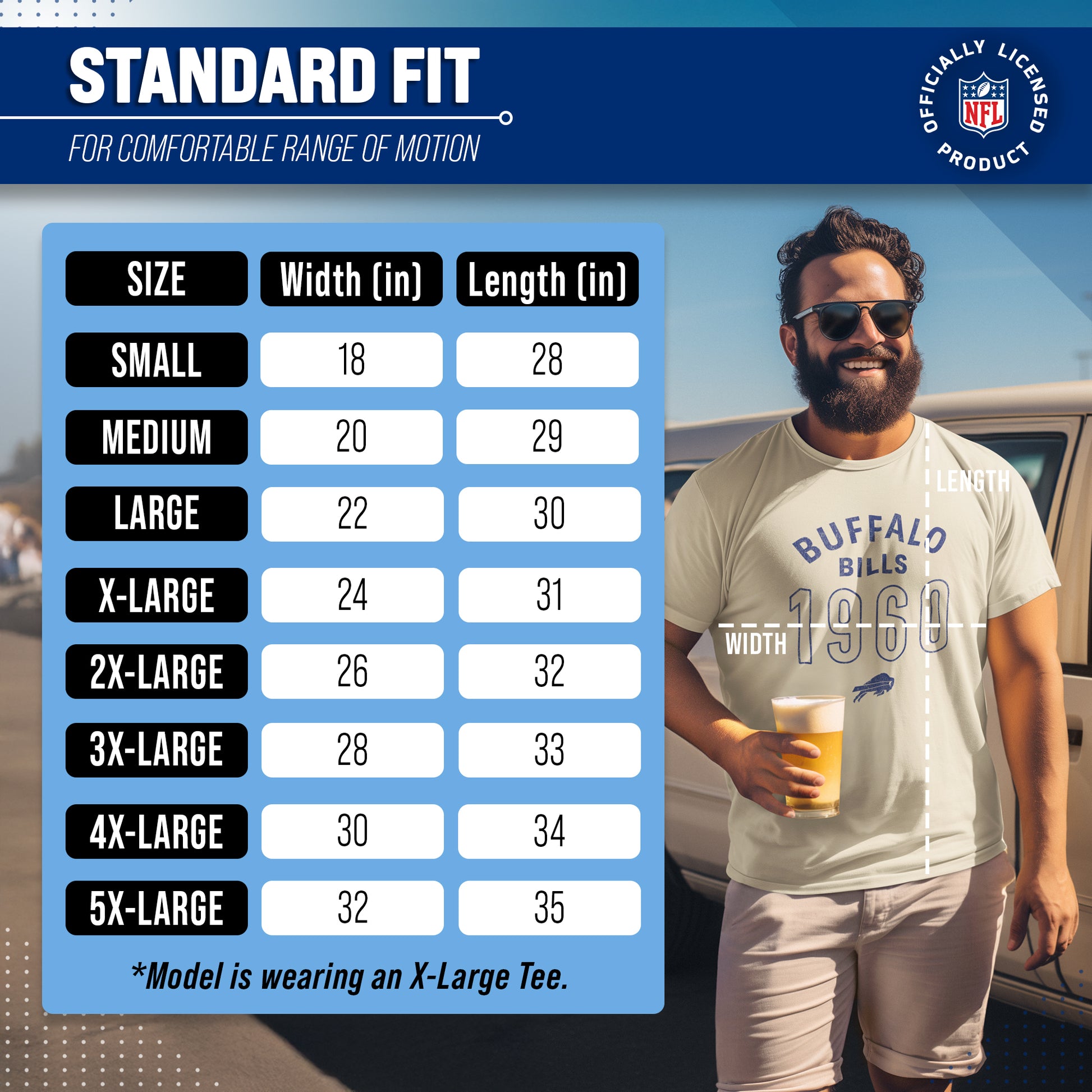 Buffalo Bills NFL Adult Big Date Tag-Less T-Shirt - Natural