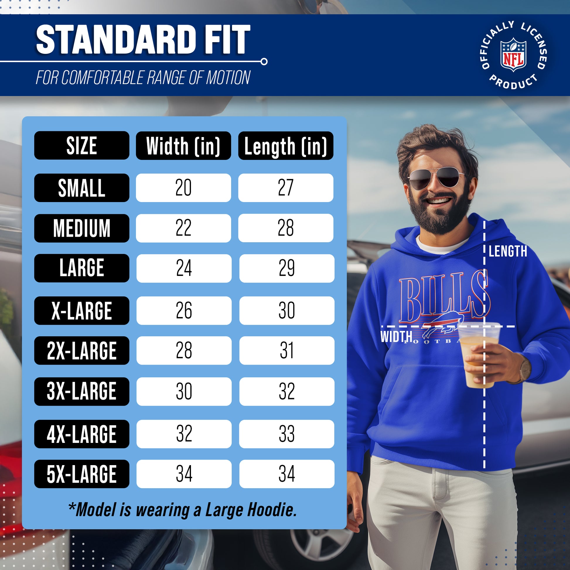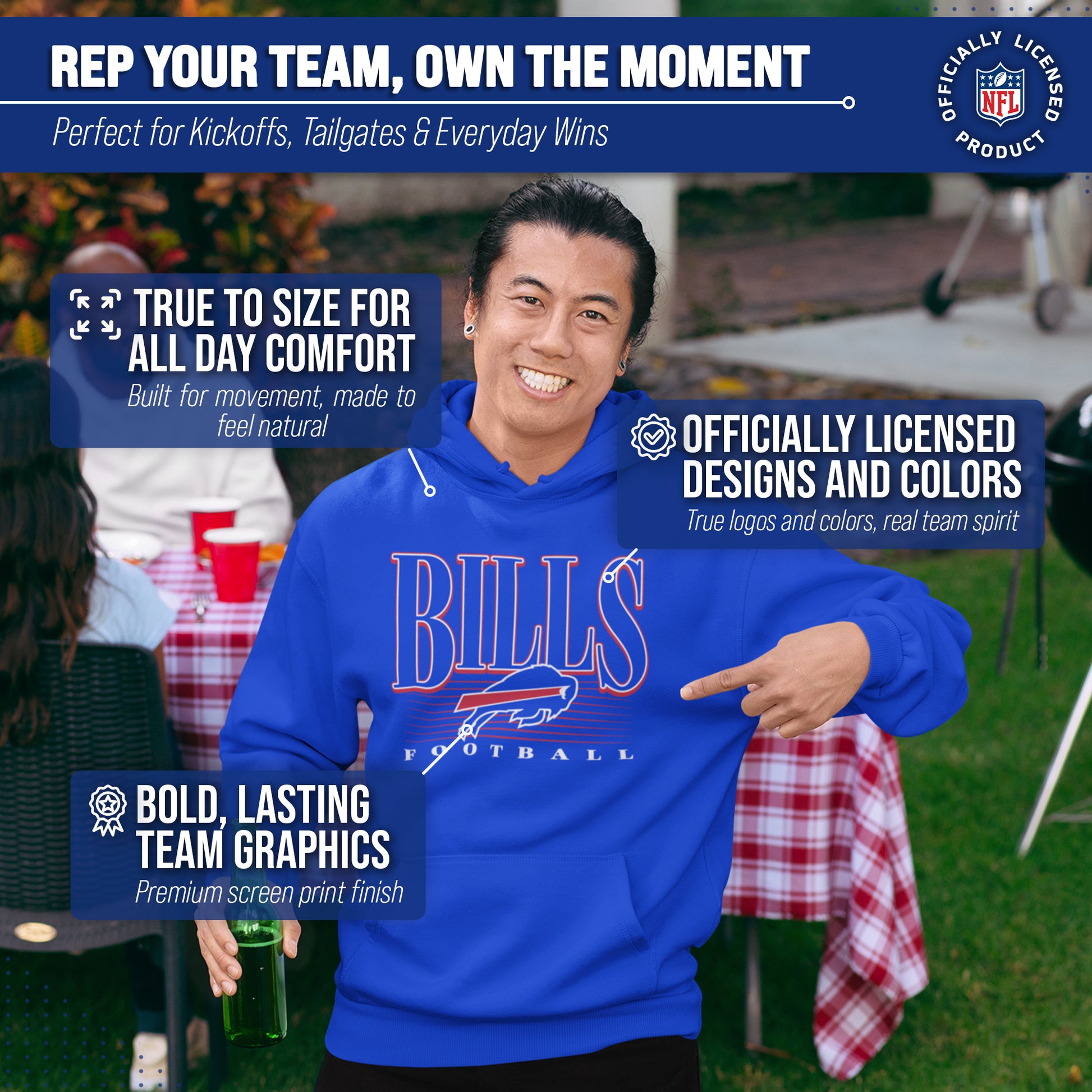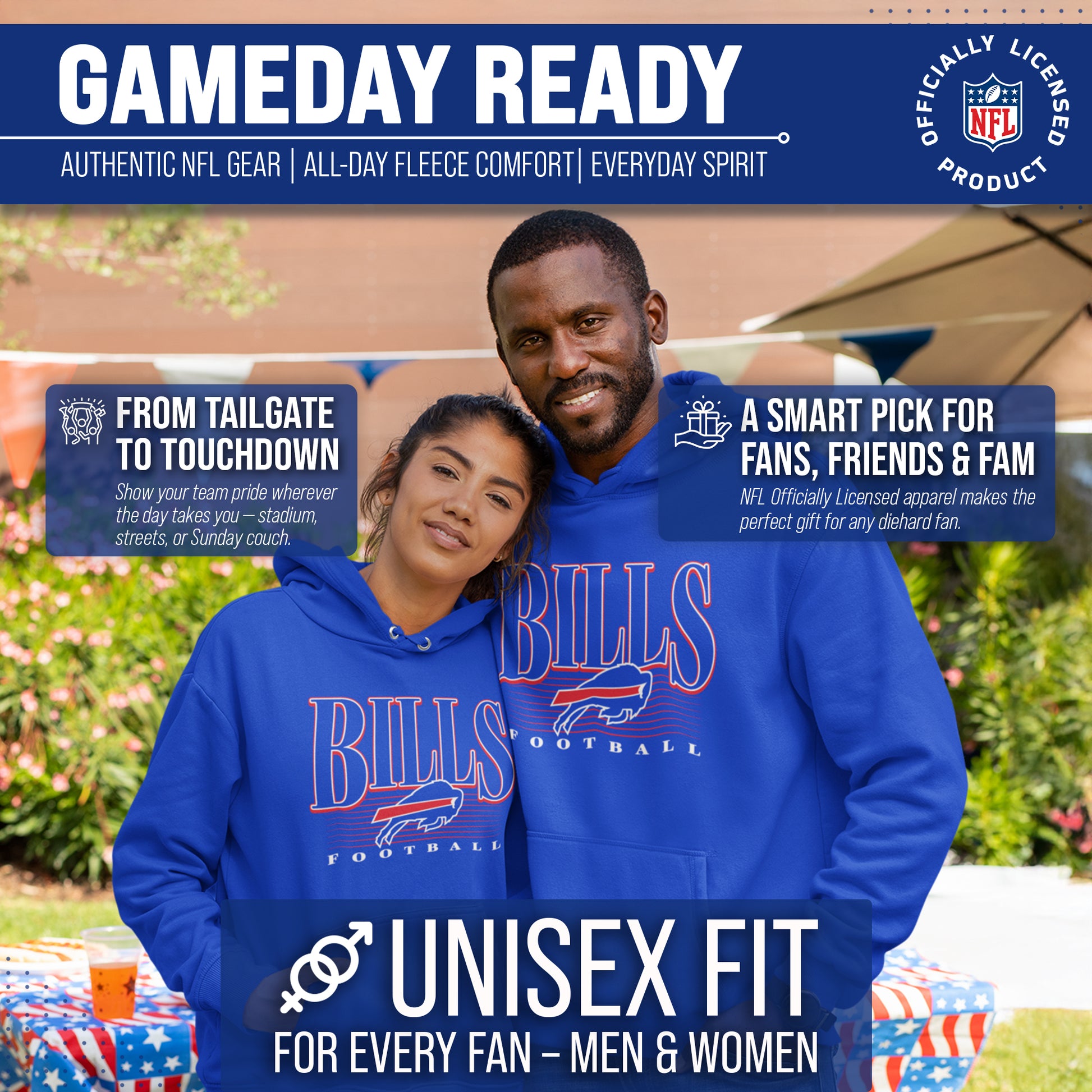 Get Ready to Show Your Team Spirit in the Most Comfortable Way Possible with Team Fan Apparel's Buffalo Bills NFL Overtime Blueprint Hooded Sweatshirt! Made with ultra-soft fleece material, this hooded sweatshirt is perfect for game days or just lounging around the house. With its unique design and performance material, you can proudly represent your favorite team wherever you go. Not only is it officially licensed by the NFL, but it also comes in adult unisex sizing so both men and women can rock their team pride. The throwback outline design adds a retro touch to your gameday attire, making you stand out from the crowd. So why settle for a basic sweatshirt when you can show off your style and support your team at the same time? Grab your NFL Overtime Blueprint Hooded Sweatshirt from Team Fan Apparel today and get ready to cheer on your Bills in ultimate comfort!