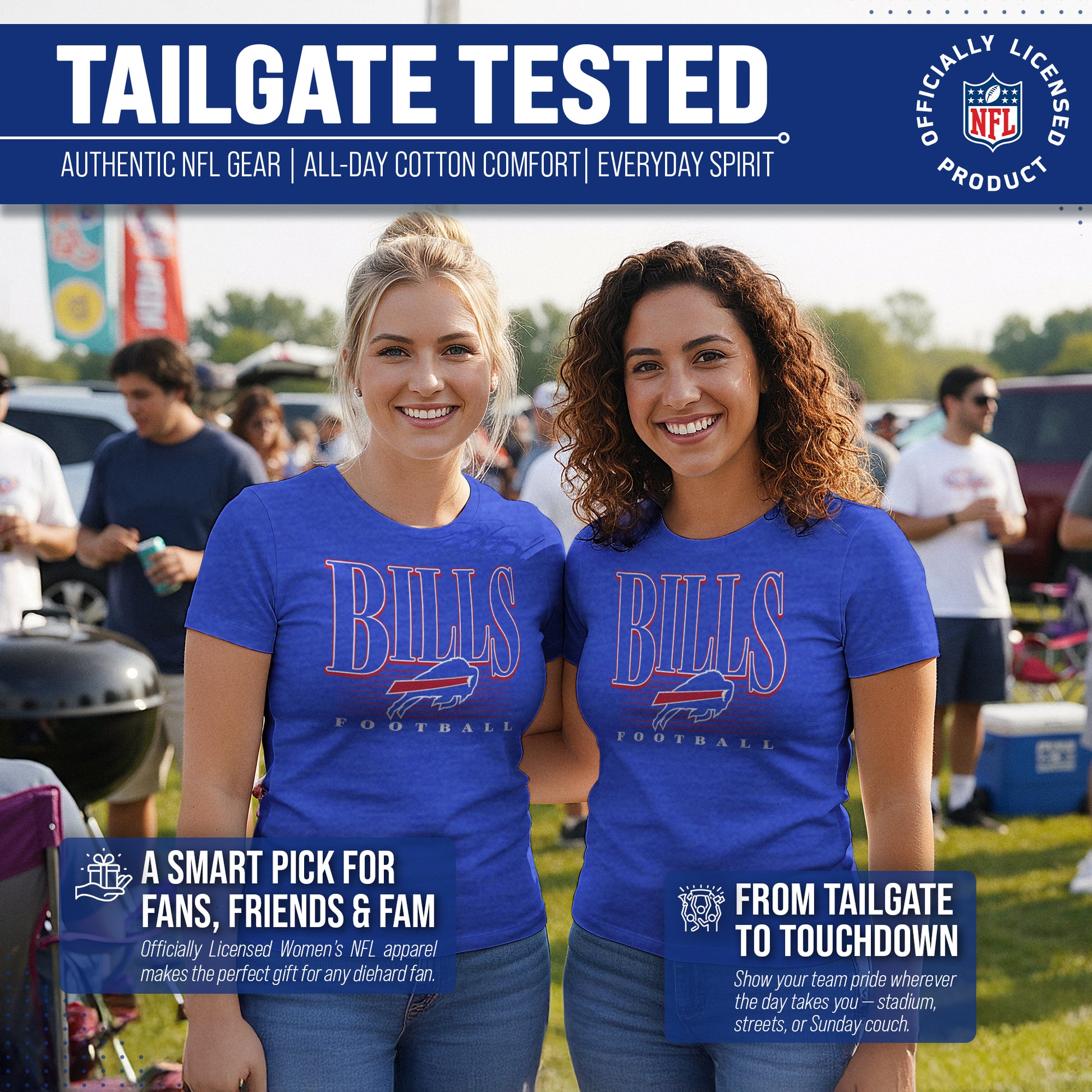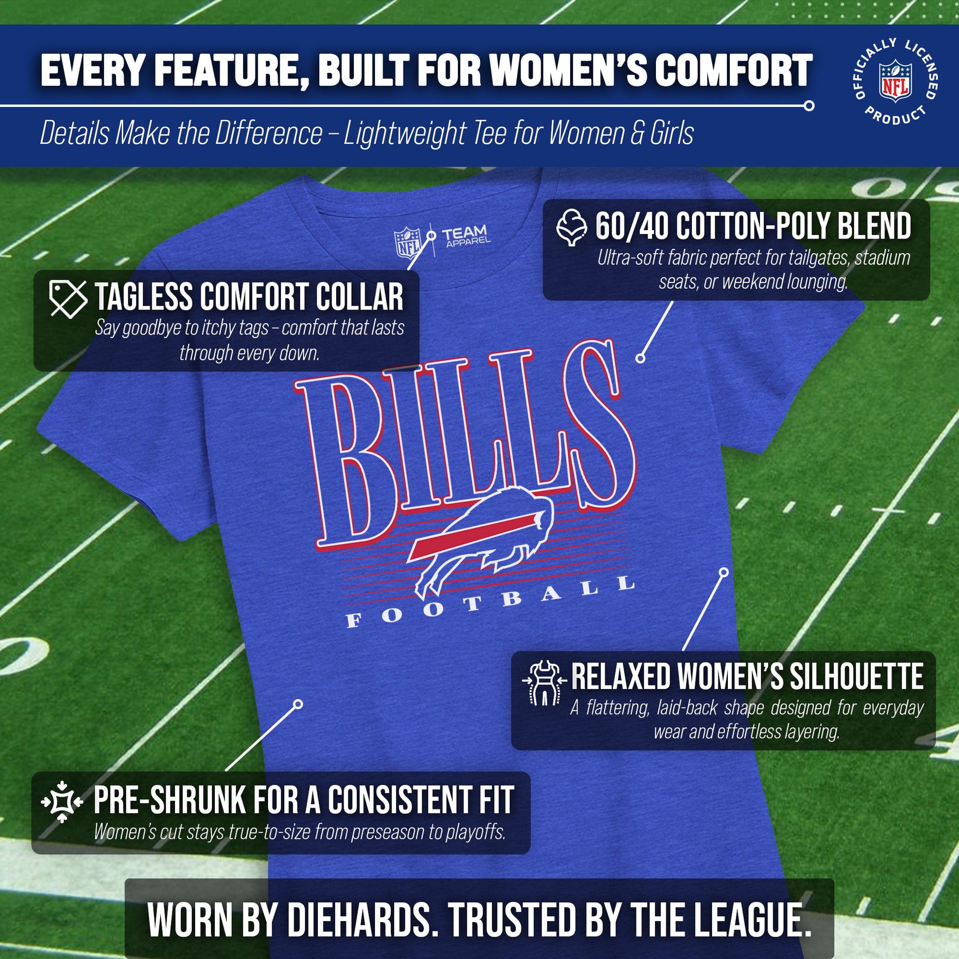 Calling all ladies! Get ready to rock game day with the Women's Team Fan Apparel Overtime Blueprint T-Shirt! This comfortable and stylish Buffalo Bills womens tee is perfect for any female football fan, whether you're cheering on your favorite team at the stadium or watching from home. Made from a super soft cotton fabric , this shirt will keep you cool and comfortable all game long. The text, logo and official team color adds a touch of retro flair, while the tag-less design ensures itch-free wear. Whether you're a die-hard fan or just love a good classic look, this shirt is perfect for showing off your team spirit. Available in a wide range of women's sizes, it's suitable for all shapes and sizes! So grab your girlfriends and get ready to cheer on your team in style with the Women's Team Fan Apparel Overtime Blueprint T-Shirt!