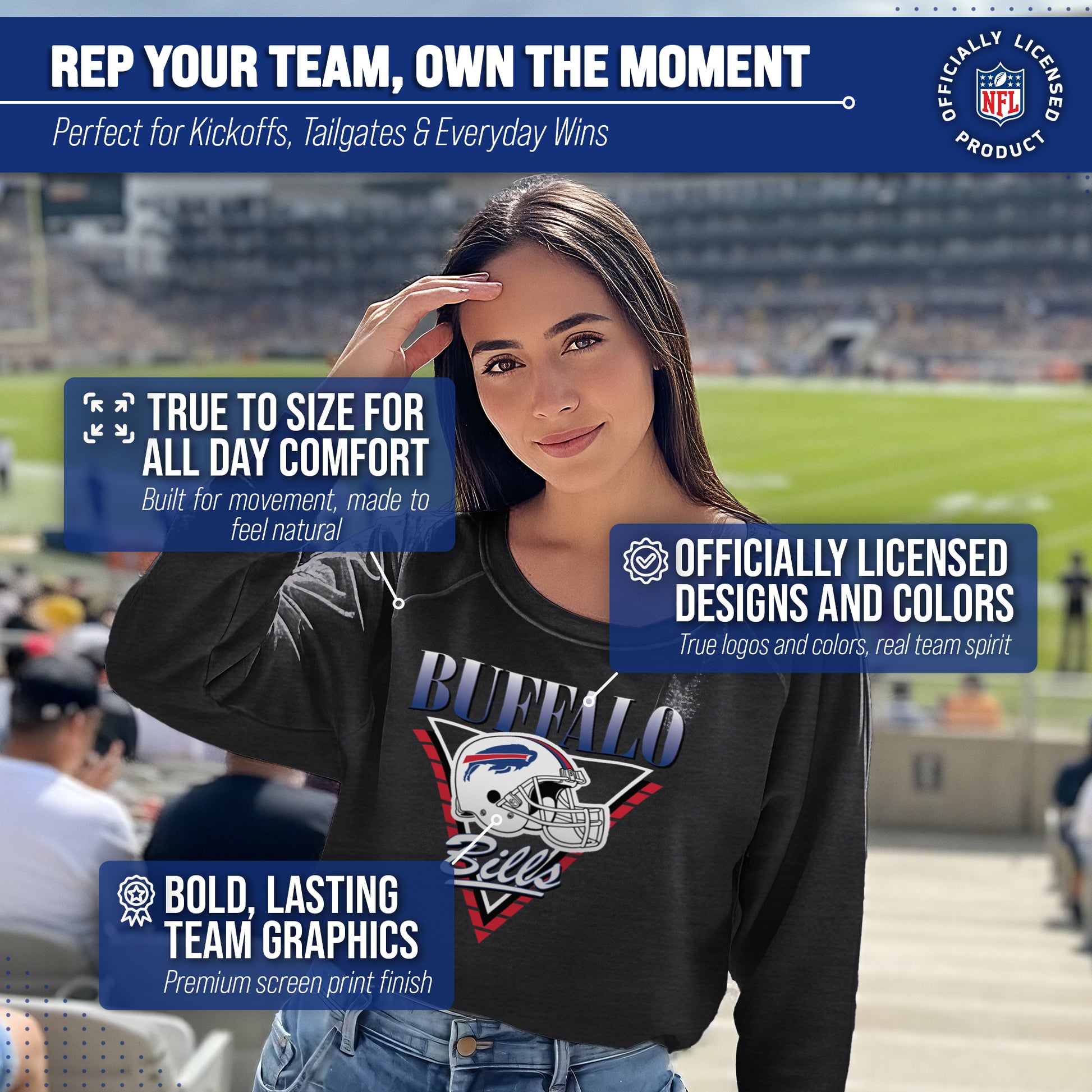 Buffalo Bills NFL Womens Retro Triangle Slouchy Crewneck - Heather Charcoal