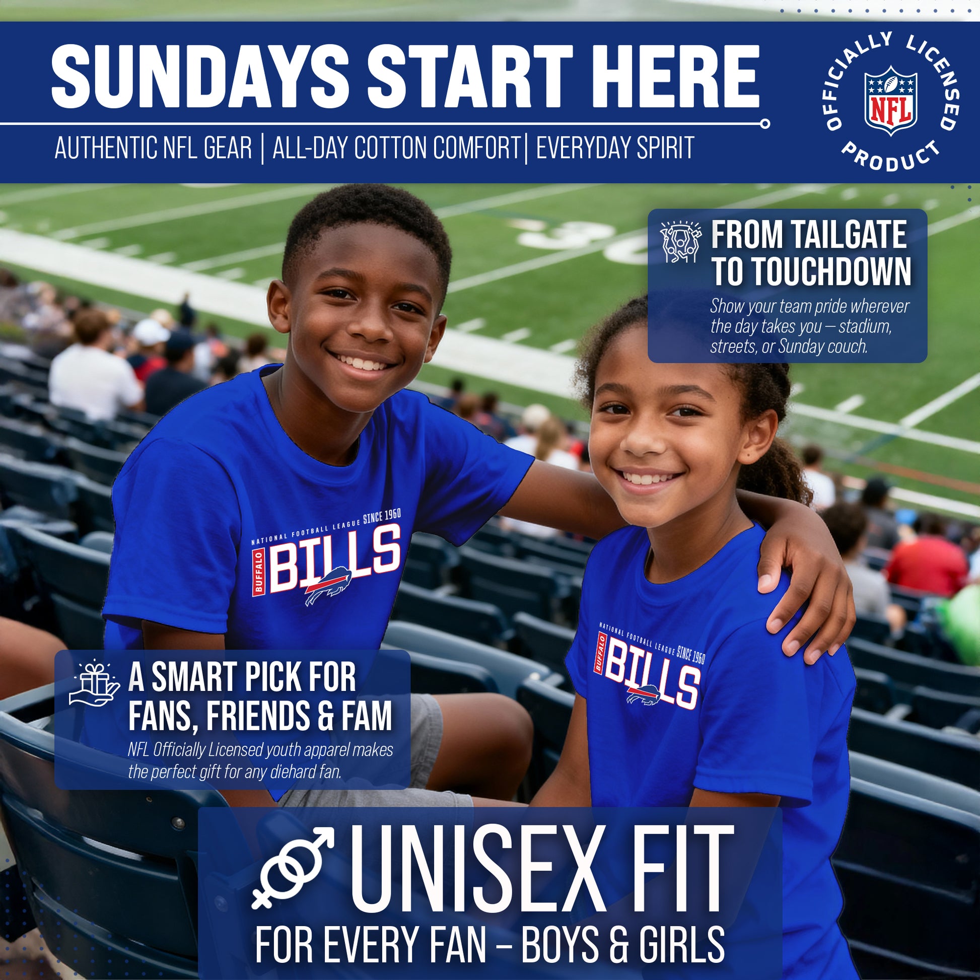 Buffalo Bills NFL Youth Modern Endzone Football T-Shirt Unisex Tag Free Comfortable - Royal