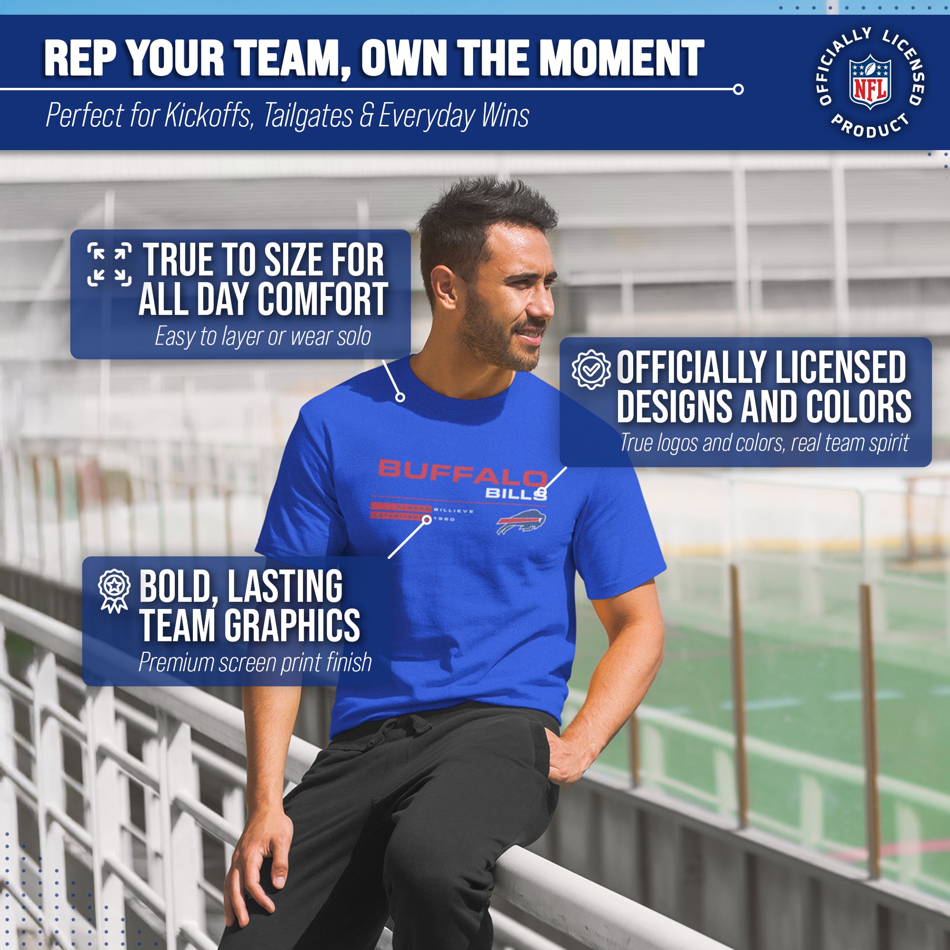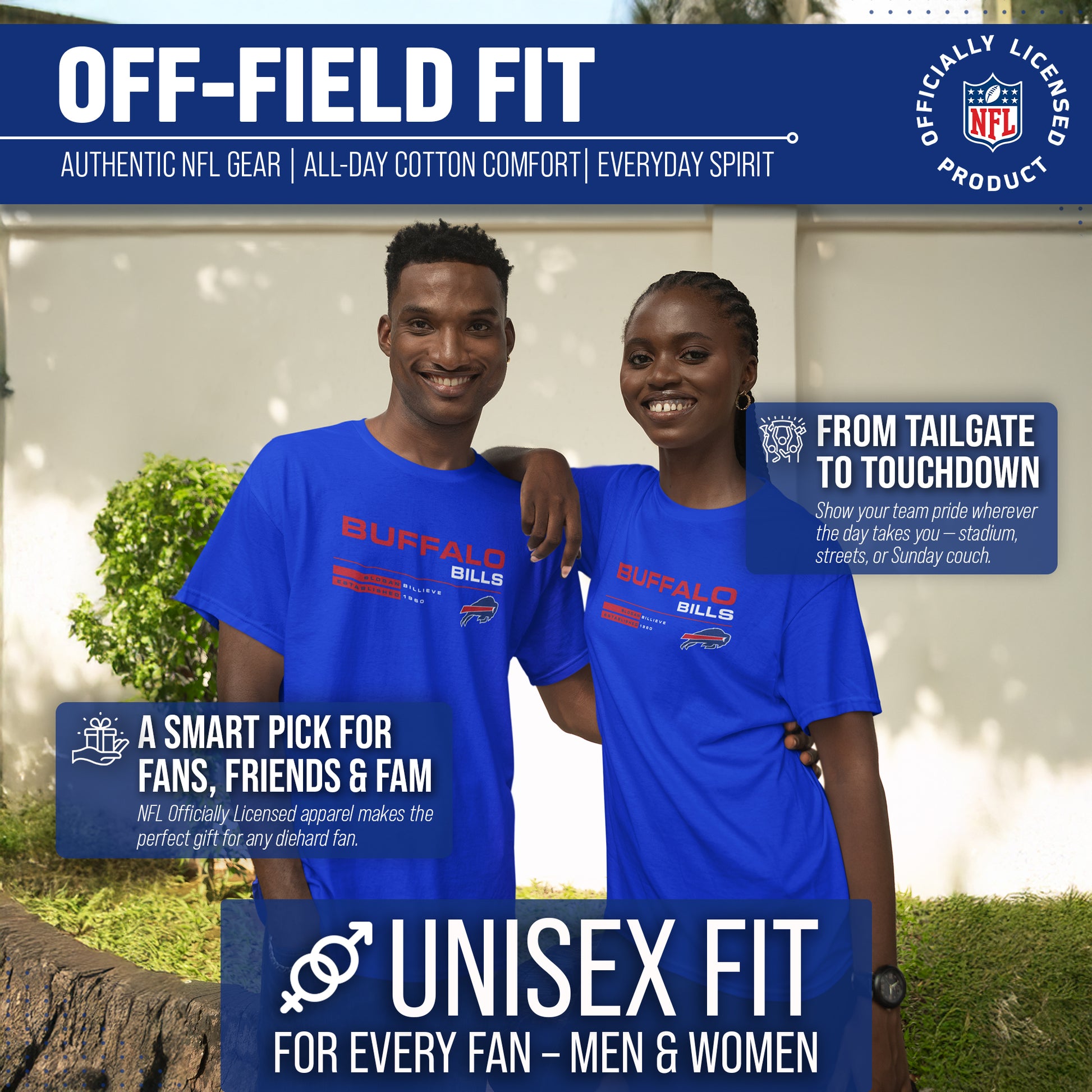 Score with Team Fan Apparel, the ultimate destination for officially licensed NFL apparel for men and women. We use only the highest-quality screen printing techniques to bring you the most comfortable, durable, and stylish clothing possible. Go ahead and show your team pride at the big game or any time! This premium t-shirt fits both male and female adults and comes in small, medium, large, XL, and XXL. So needless to say, it fits Buffalo Bills fans of all types! Maybe you aren't a Bills fan but you know someone who is? Don't worry! This high-quality t-shirt is soft, lightweight, breathable, and a GREAT gift for any birthday, anniversary, Father's Day, Mother's day, you name it! So, if you want to stand out as the #1 fan at the next big game or watch party, you're going to want to be wearing one of these football t-shirts.