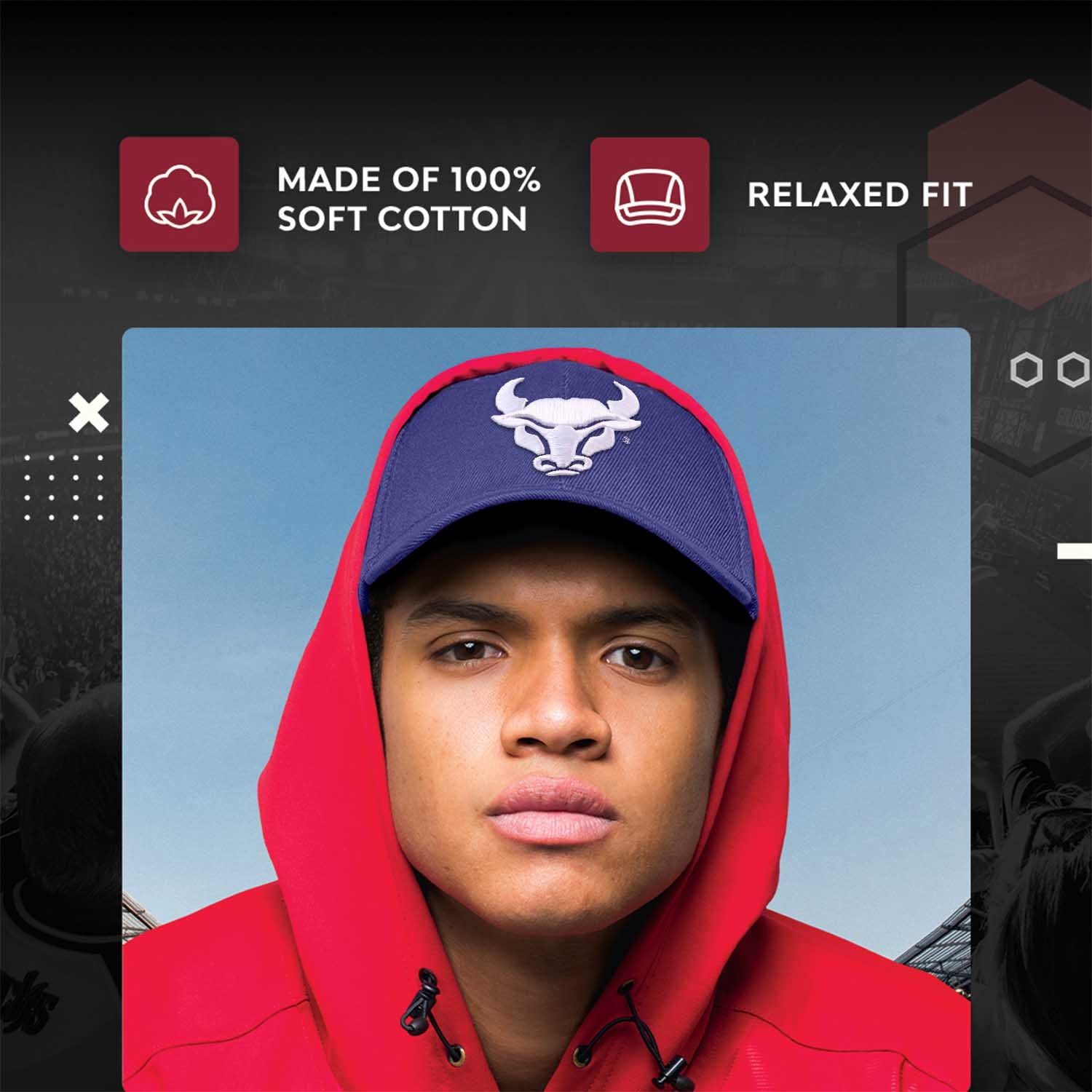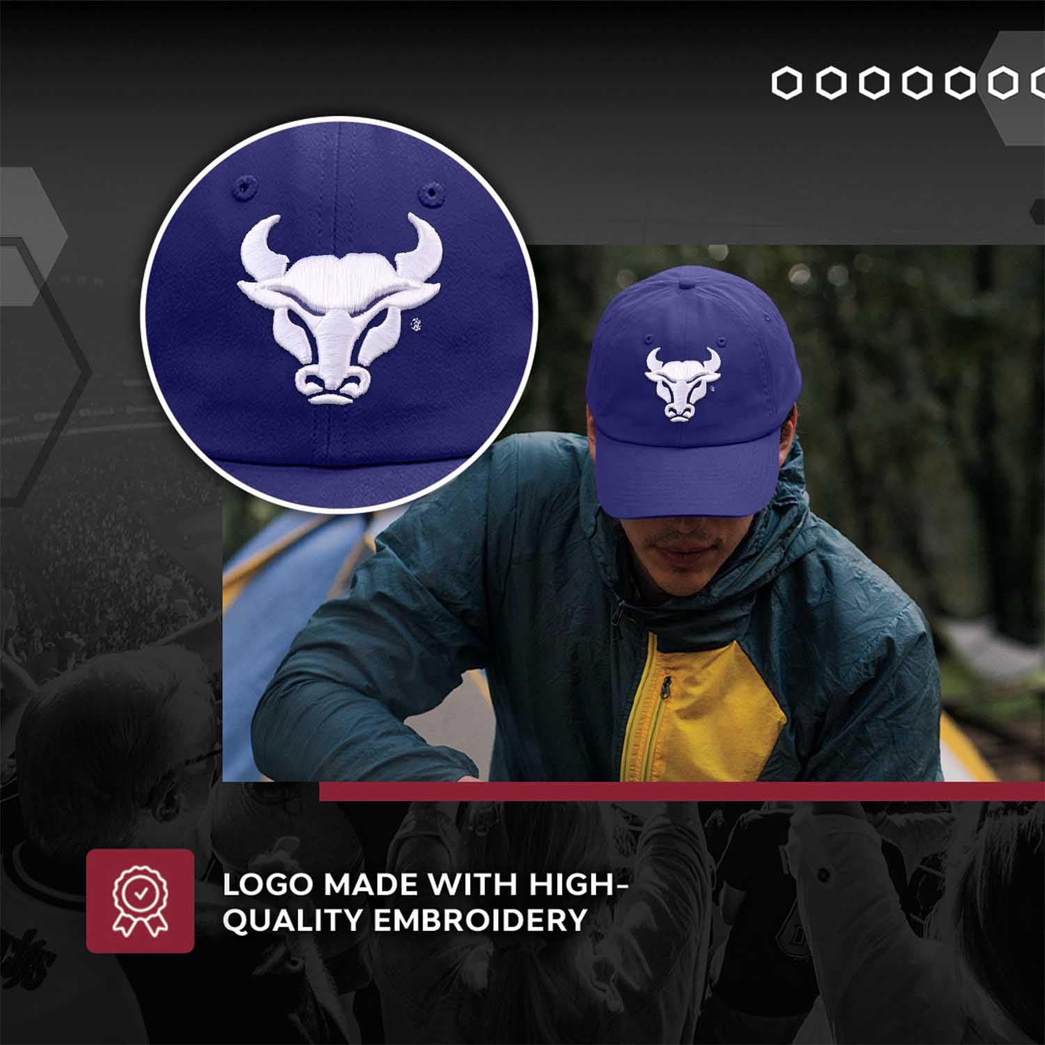 This Buffalo hat is a must-have for any Bulls fan! These college hats are made from 100% cotton and garment-washed twill, and are durable and comfortable to wear. The garment-washed fabric gives this vivid Buffalo hat a cool, stylish, and fashionable look. The Buffalo Bulls logo is embroidered on the front, with the team wordmark on the back. The relaxed, unstructured hat design feels soft & easy to wear, making it a good dad baseball hat for everyday wear. The adjustable metal closure ensures a one size fits all. If you are looking for the perfect Buffalo gift for Father's Day, look no further than the Buffalo Bulls dad hat! Wear it with the classic Buffalo Bulls apparel on game day with your Buffalo Bulls clothes and Buffalo Bulls merch, or wear it out running errands. This Buffalo cap is a staple in every Bulls fan's apparel. Show your support for Buffalo this baseball hat. Show your love for soccer, baseball, basketball, and hockey all year long.