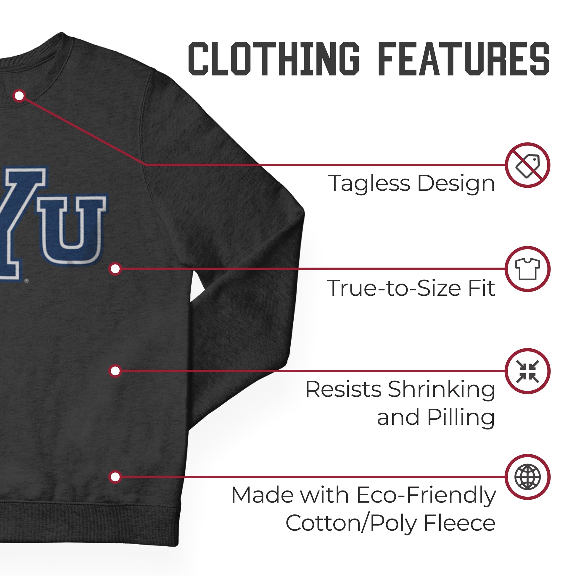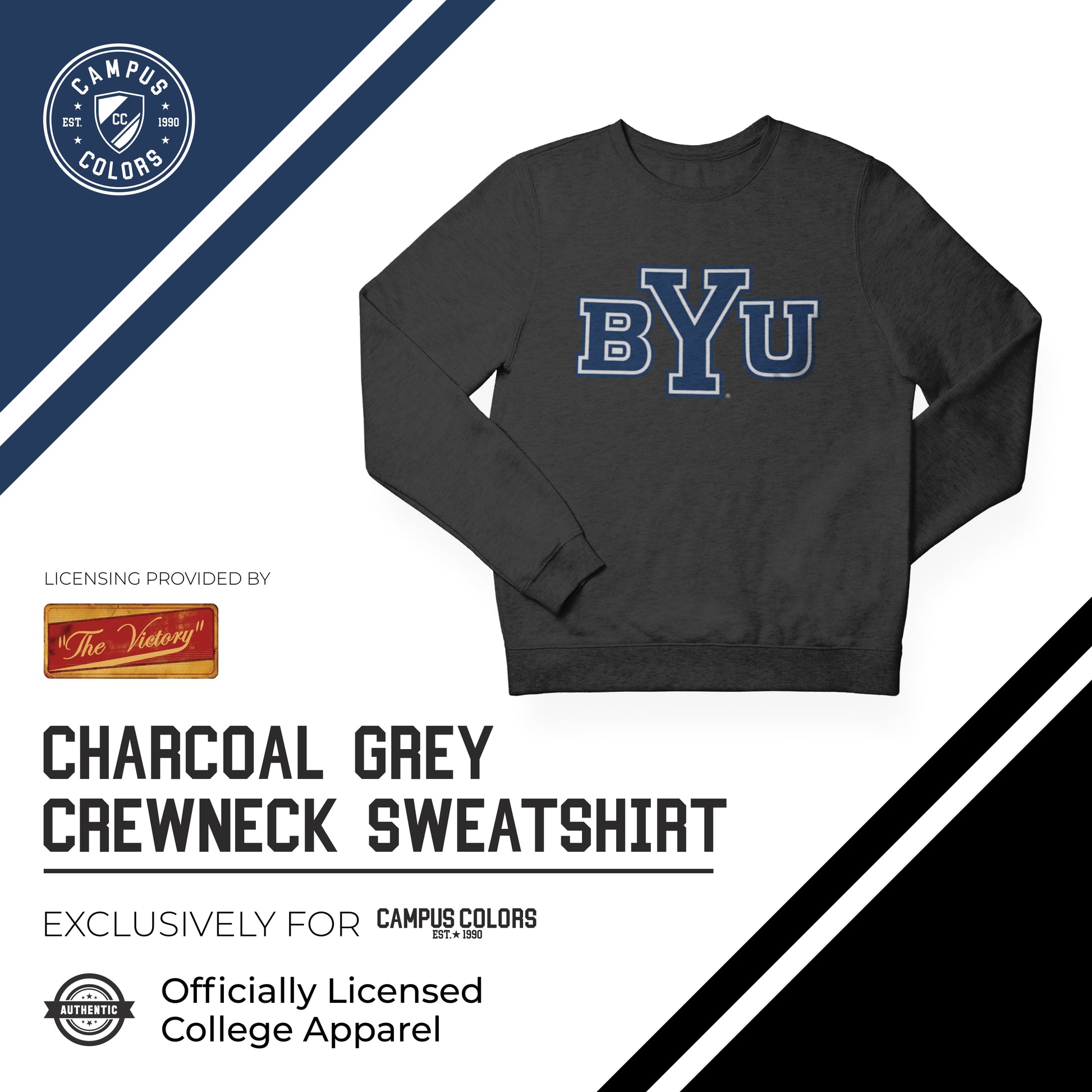 BYU Cougars Colligate Adult Charcoal Crewneck Fleece Sweatshirt - Charcoal
