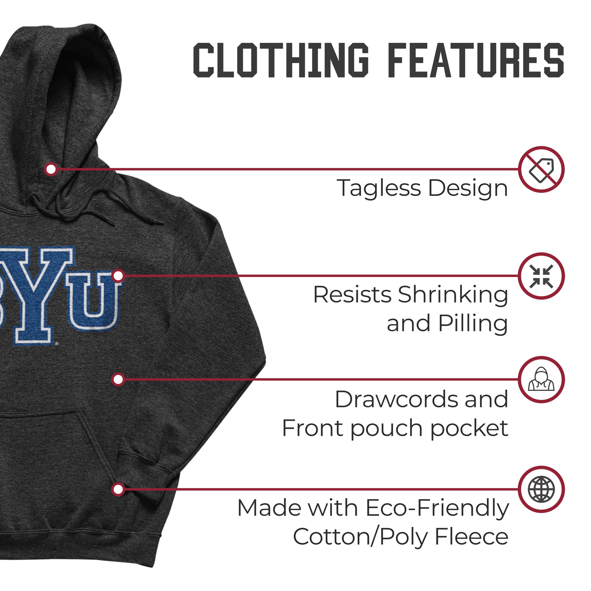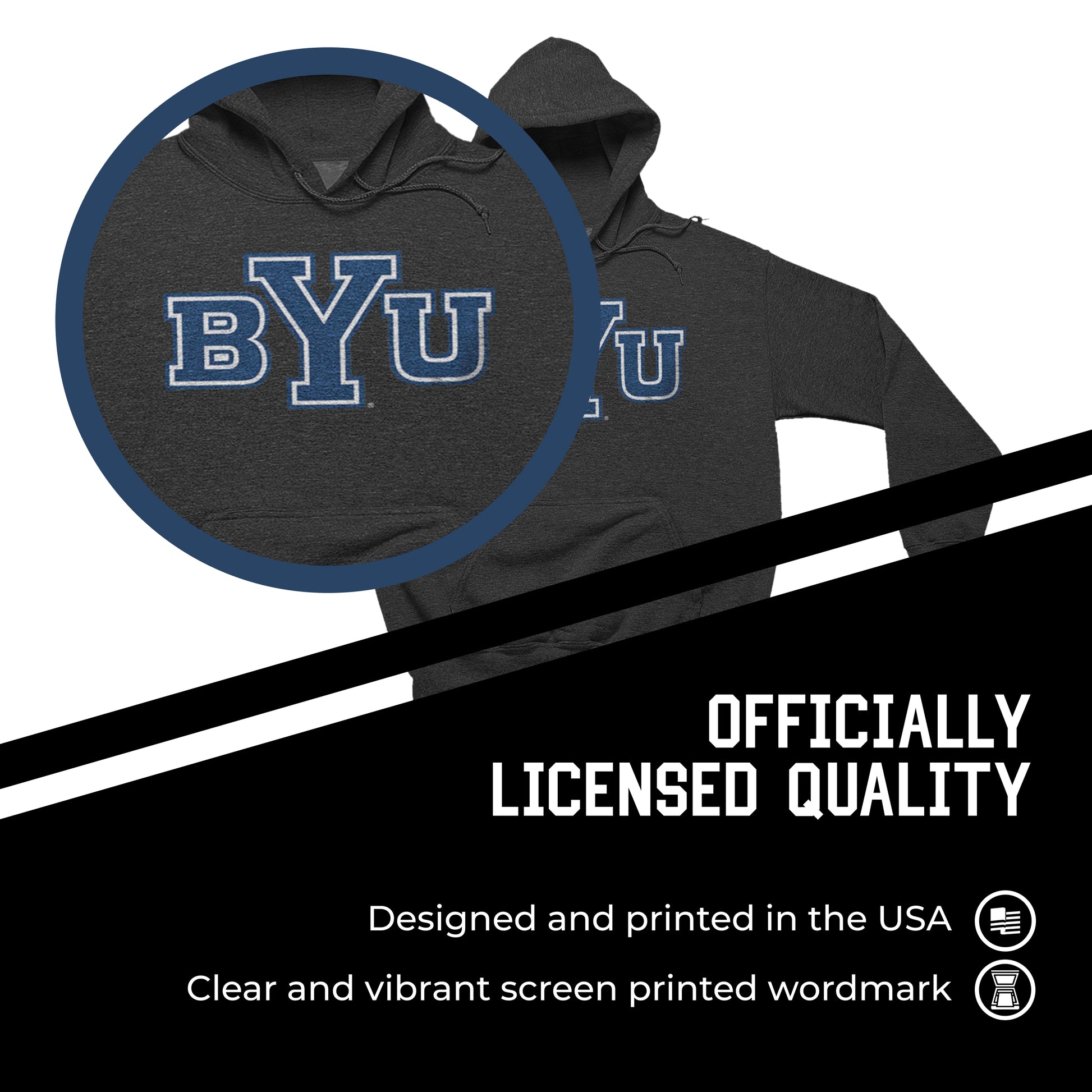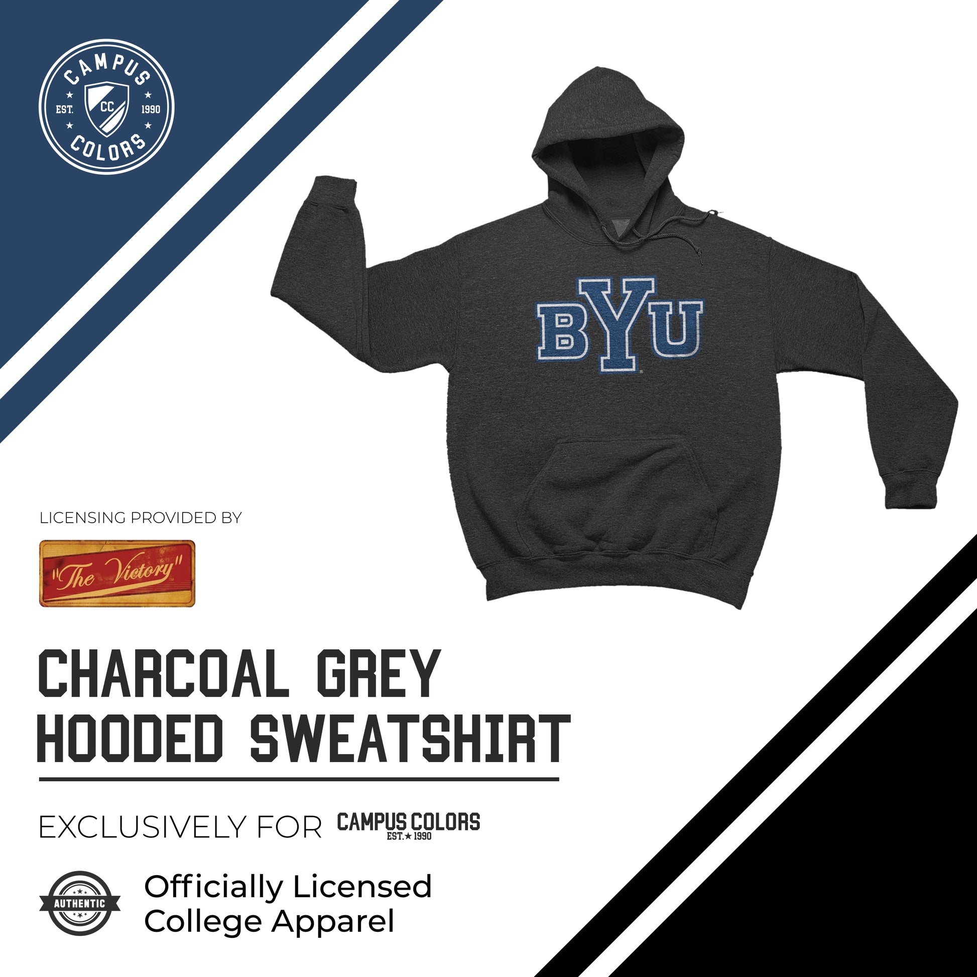 BYU Cougars NCAA Adult Cotton Blend Charcoal Hooded Sweatshirt - Charcoal