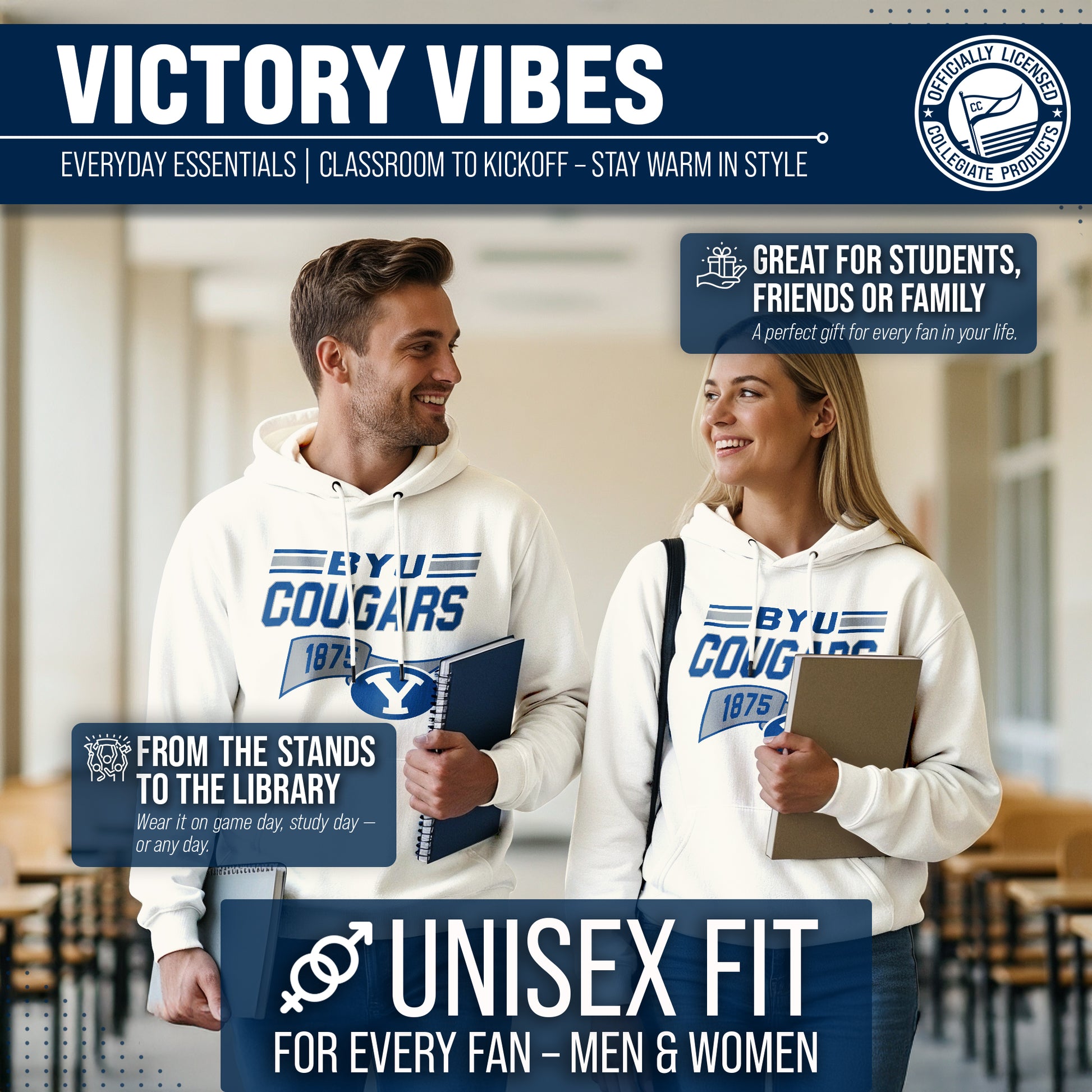 BYU Cougars NCAA Adult Unisex Varsity Club Pennant Hooded Fleece Sweatshirt - Off White