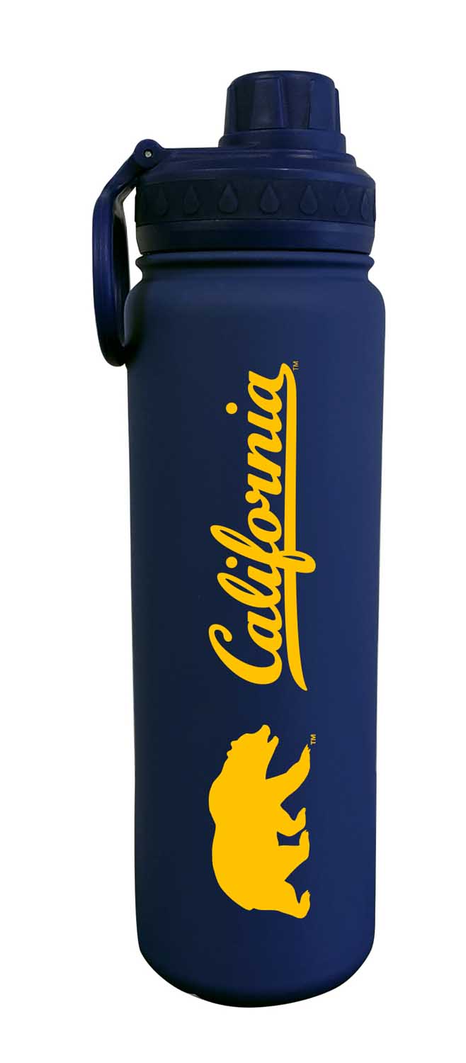 This officially licensed 24oz Cal water bottle is the best accessory for any Cal Golden Bears fan. You can use this water bottle 24 oz for water, sports drink, or even to keep your coffee hot. Our vacuum sealed sport bottle ensures that your drinks stay hot or cold for hours. You can bring this bottle along to sport games, hikes, or tailgates on game day. This sport water bottle 24 oz is a slim bottle that fits in most car cup holders for convenience. This stainless sports water bottle features an easy flow spout for the best drinking experience. The twist on cap features an easy drinking spout to make sipping a breeze. The bottle's lid twists on and off to reveal an easy drinking mouthpiece. The convenience of our double walled water bottles make them perfect for sports and everyday life! Show off your school spirit with this Cal Golden Bears water bottle. This durable stainless sports water bottle make the perfect Cal Golden Bears accessories for any activity. Our water bottle with clip for backpack is perfect for student campus life and busy alumni activities. Our vacuum sealed water bottles feature a built in handle. The easy grab bottle allows you to sip your water without spilling it on yourself while playing sports or walking to class. The college water bottle is coated in silicone for added grip and softer finish, and the exterior is sweat free so the Cal water bottle won't drip on you. This insulated water bottle is the perfect birthday or Christmas gift for fans who love to collect Cal stuff. Pair with other Cal novelties or apparel for the ultimate Bears gift for women and men. Cal gear is great as birthday gifts for college students, alumni, and sport fans. With our Cal Golden Bears water bottle, fans can show team pride and stay hydrated all day and every day!