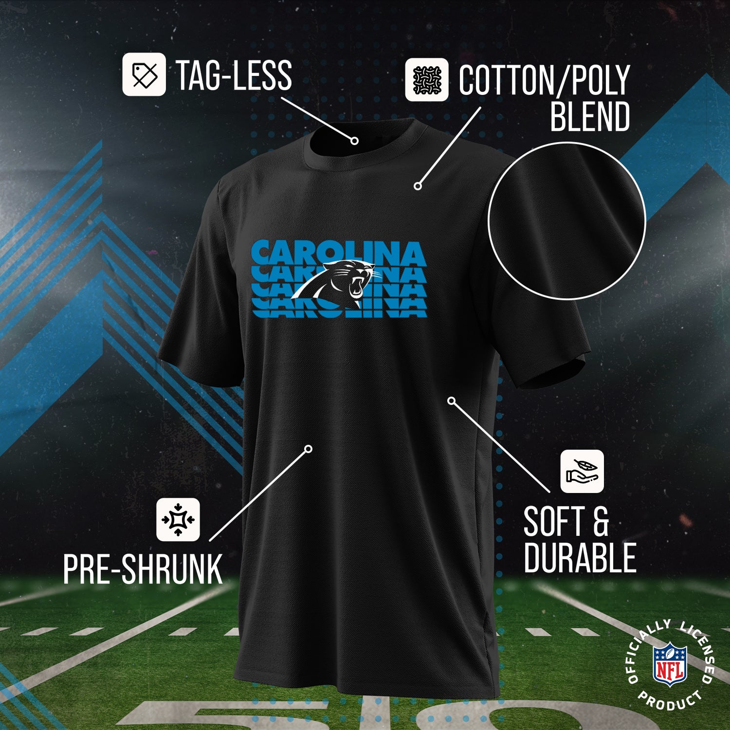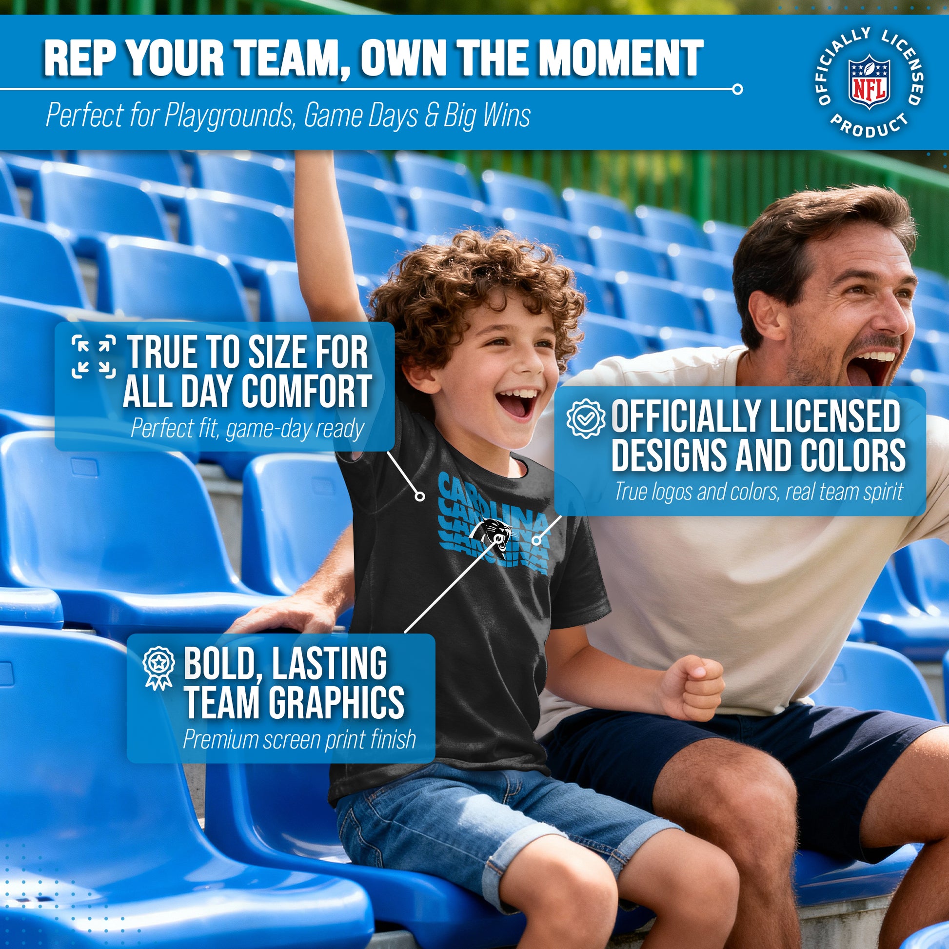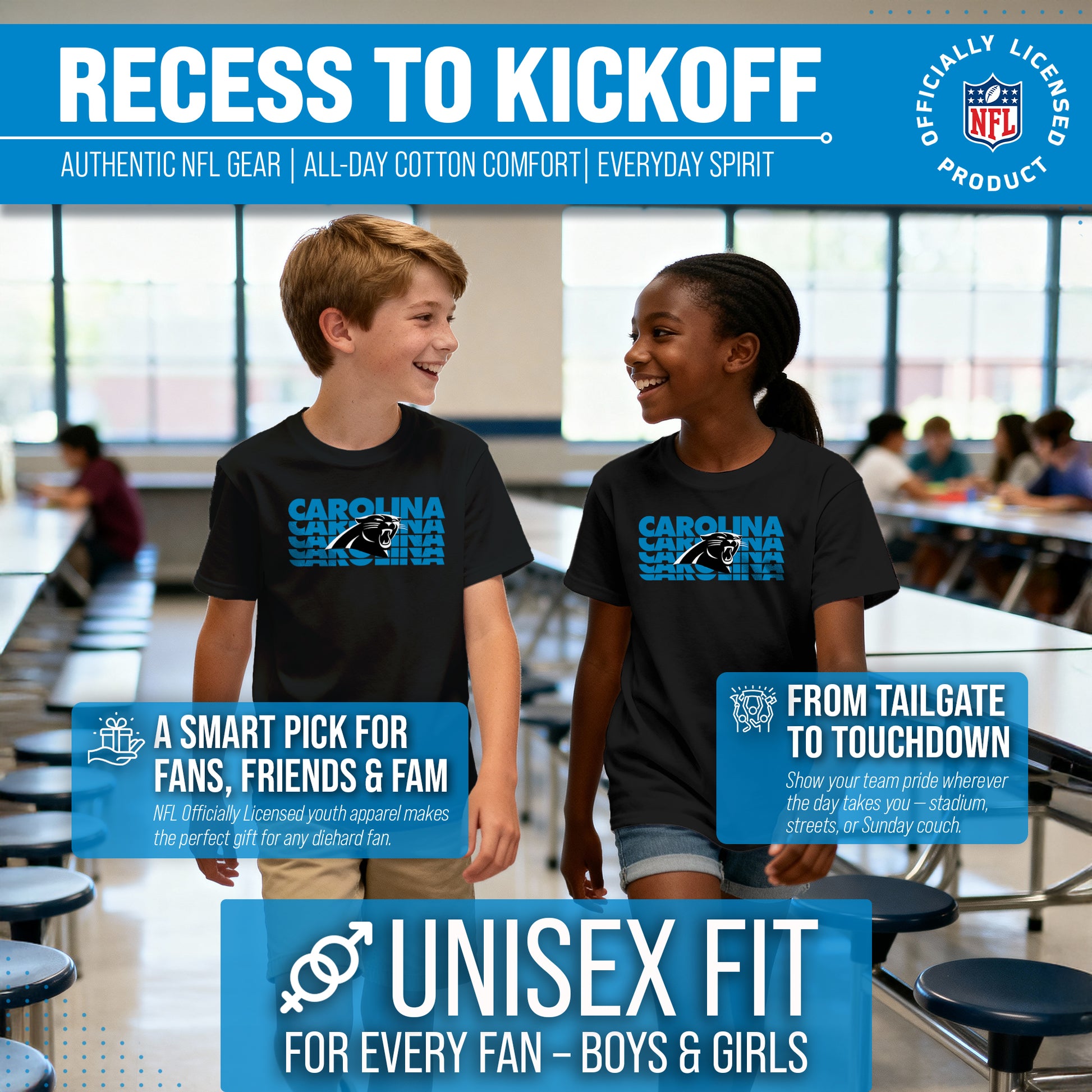 Carolina Panthers NFL Youth Repeating Logo Football T-Shirt Unisex Tag Free Comfortable - Black