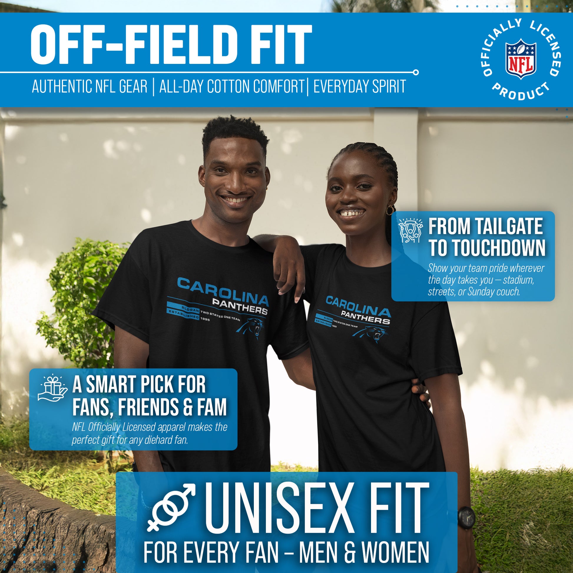 Score with Team Fan Apparel, the ultimate destination for officially licensed NFL apparel for men and women. We use only the highest-quality screen printing techniques to bring you the most comfortable, durable, and stylish clothing possible. Go ahead and show your team pride at the big game or any time! This premium t-shirt fits both male and female adults and comes in small, medium, large, XL, and XXL. So needless to say, it fits Carolina Panthers fans of all types! Maybe you aren't a Panthers fan but you know someone who is? Don't worry! This high-quality t-shirt is soft, lightweight, breathable, and a GREAT gift for any birthday, anniversary, Father's Day, Mother's day, you name it! So, if you want to stand out as the #1 fan at the next big game or watch party, you're going to want to be wearing one of these football t-shirts.