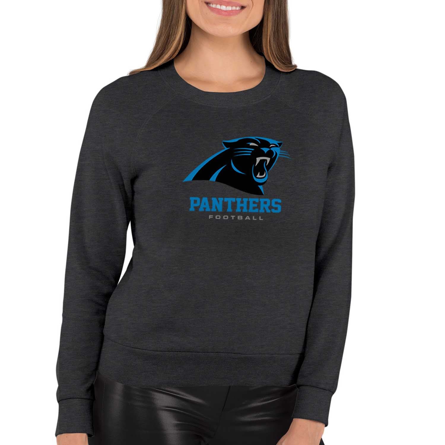 Carolina Panthers Women's NFL Ultimate Fan Logo Slouchy Crewneck -Tagless Fleece Lightweight Pullover - Charcoal