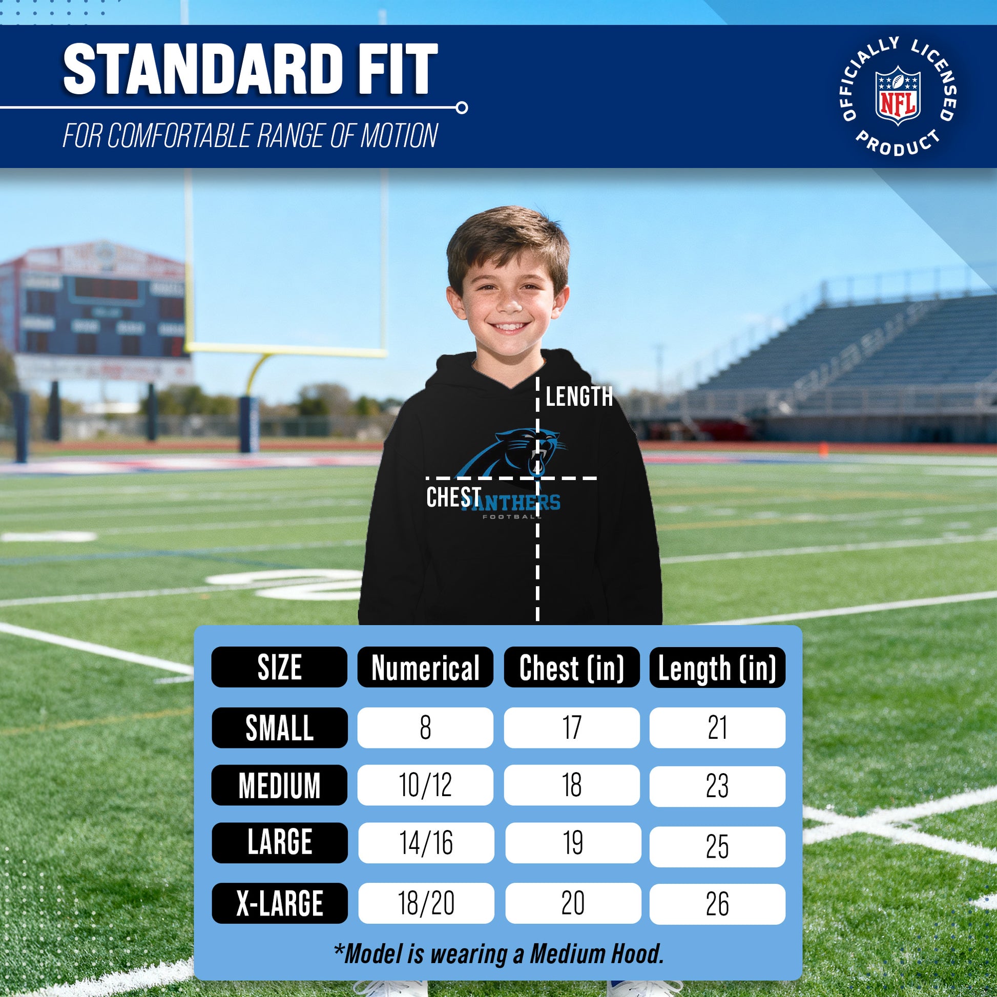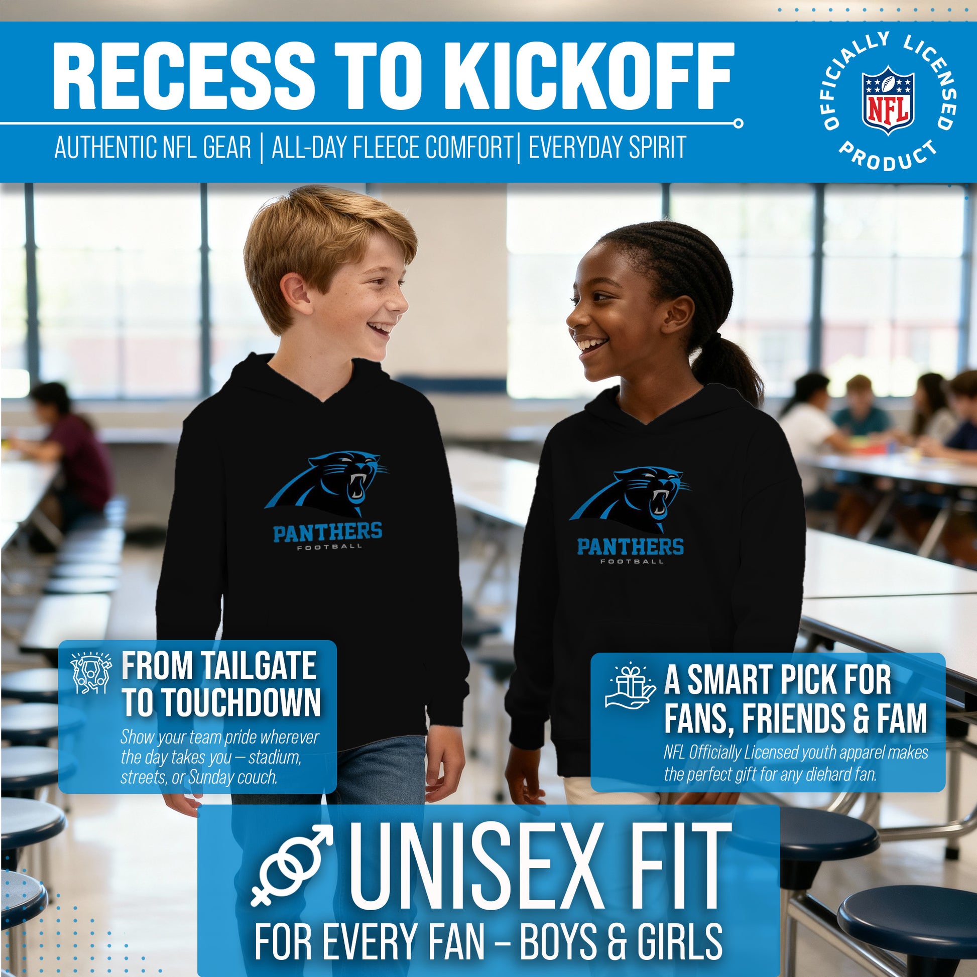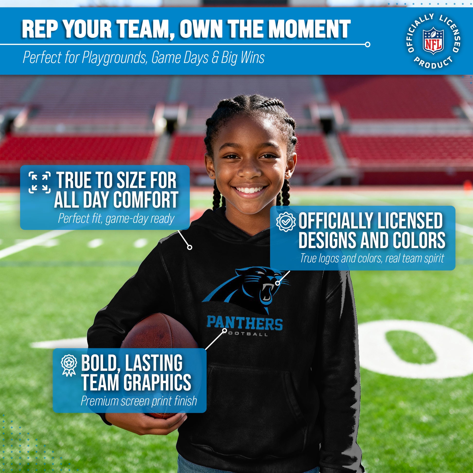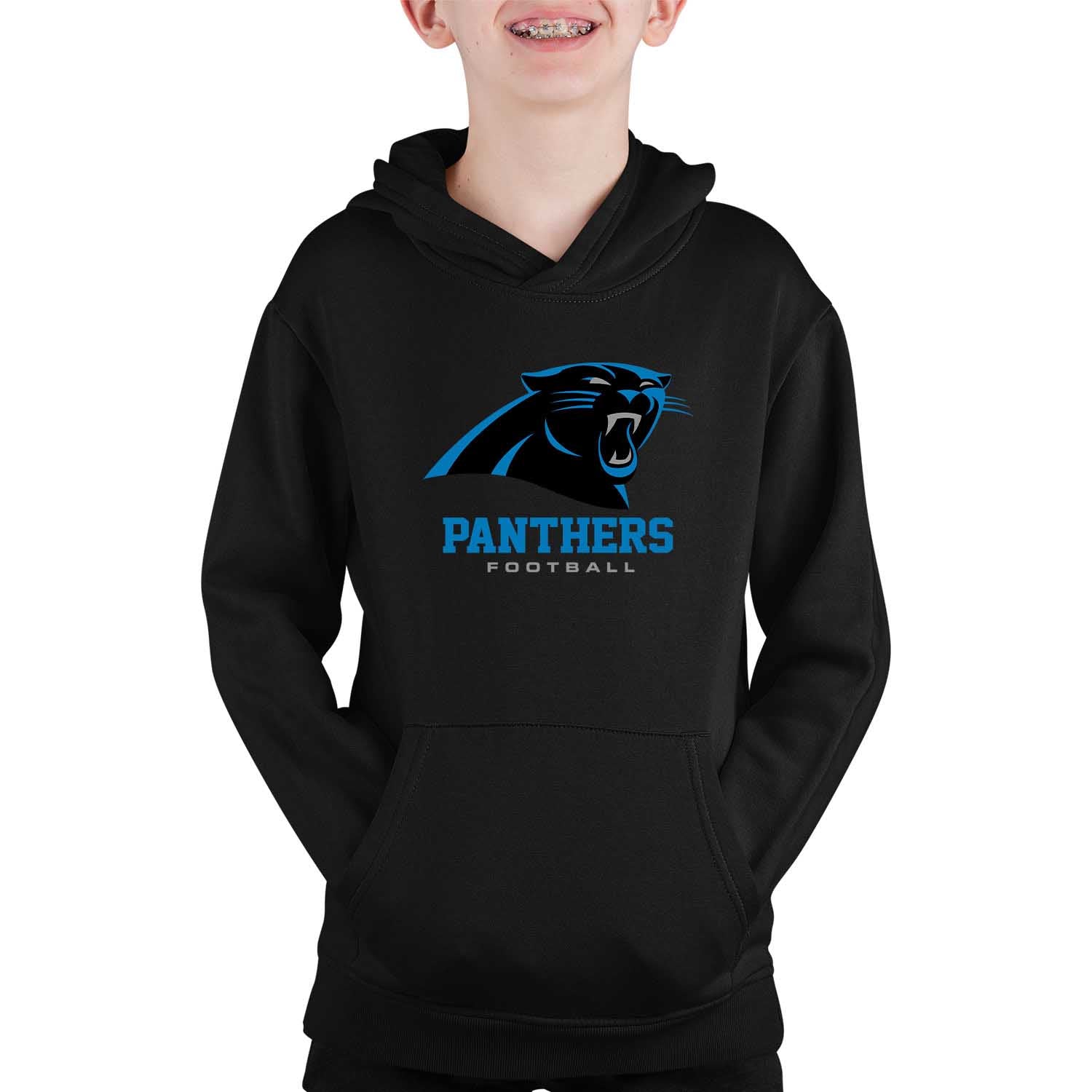 Carolina Panthers Youth NFL Ultimate Fan Logo Fleece Hooded Sweatshirt -Tagless Football Pullover For Kids - Black