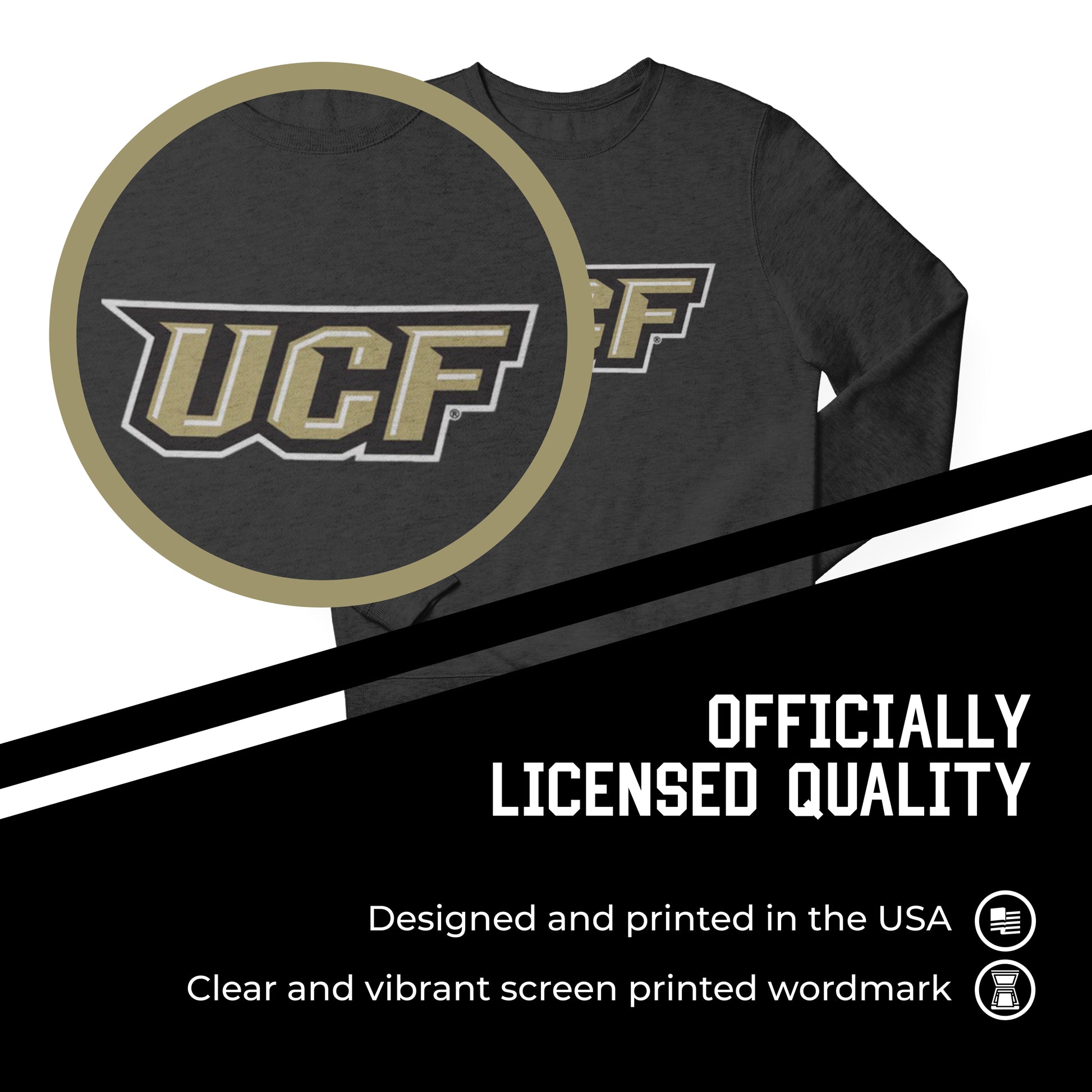 Our Charcoal Gameday Crewneck Sweatshirt is a college crewneck sweatshirt with a warm and toasty 9 oz fleece lining. It's the very best of Central Florida Knights apparel, plain and simple. Gear up for your school's cold weather football or hockey game with confidence. Or, for women, bring it with you to basketball games and tie it around your leggings in case the arena is a little chilly. Our college crew neck sweatshirts for men and women are super comfortable, run true to size, and are great for showing your school pride all year long. Plus, the unisex fit is ideal for both men and women and works as an oversized sweatshirt for kids. College crewnecks for men and women feature your school's screen-printed university wordmark will stay crisp and clear, wear after wear. All colors and fonts are officially licensed and are of the highest of quality, it even comes with an officially licensed tag. Features: ribbed cuffs and waistband. This college sweatshirts crew in particular is perfect for tailgates, games, and showing off your school spirit. Gameday crewneck Central Florida Knights sweatshirts make a great birthday, Christmas (or any other holiday), or graduation gift for any college student, upcoming high school or college graduate, alumni, or college sports fan. Gameday charcoal crewneck is essential collegiate apparel for protecting yourself and your loved ones from the elements. The fleece material will keep you warm through the colder months, and the no-zip design allows you to pullover and feel embraced like a big oversized blanket. The Central Florida Knights charcoal crew necks are pre-shrunk and are made from a dual blend of 50% cotton and 50% polyester that is ideal for that tailgate or game day when the temperature drops. Pair with your other favorite UCF game day apparel! Say goodbye to cheap sweatshirts. Our charcoal college sweatshirts for women and men help you gear up and get ready to cheer your team to victory.