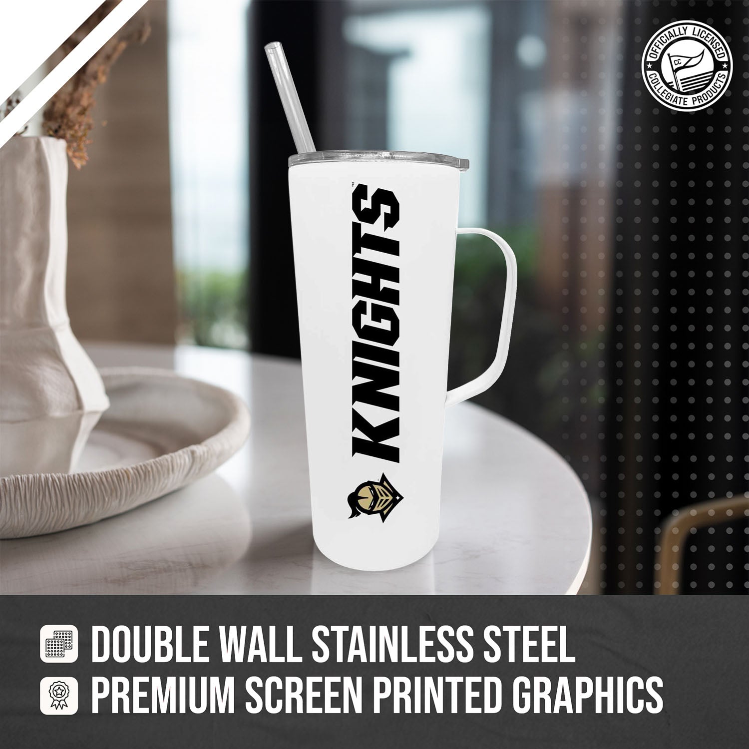 Central Florida Knights NCAA Stainless Steel 20oz Roadie With Handle & Dual Option Lid With Straw - White