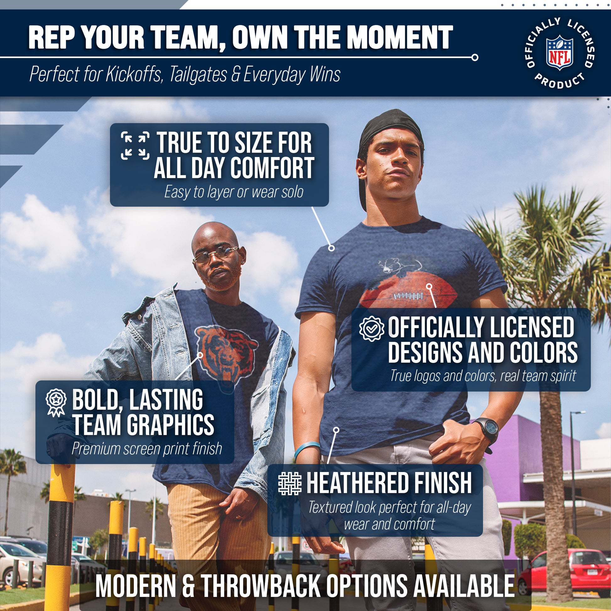 Looking for a comfortable, lightweight tee with a Chicago Bears design? Look no further than the Modern Throwback Tee. This Bears t-shirt is made of cotton and polyester. It features the officially licensed Bears logo in a trendy design. It's designed and printed in the USA and is perfect for men or women. This tagless Bears shirt is beyond comfortable and will keep you looking and feeling your best while you cheer on your favorite football team on game day. If you are looking for the best Chicago Bears gifts for men, Chicago Bears for women, pro football Chicago Bears shirts, football tshirts, men's and womens Bears t-shirts, football merchandise Chicago Bears gear for men and women, lightweight & tagless Chicago Bears shirts, or Chicago Bears apparel, look no further than this Chicago Bears short sleeve fan shirt. It makes the perfect Father's Day or Christmas gift for Chicago Bears fans.