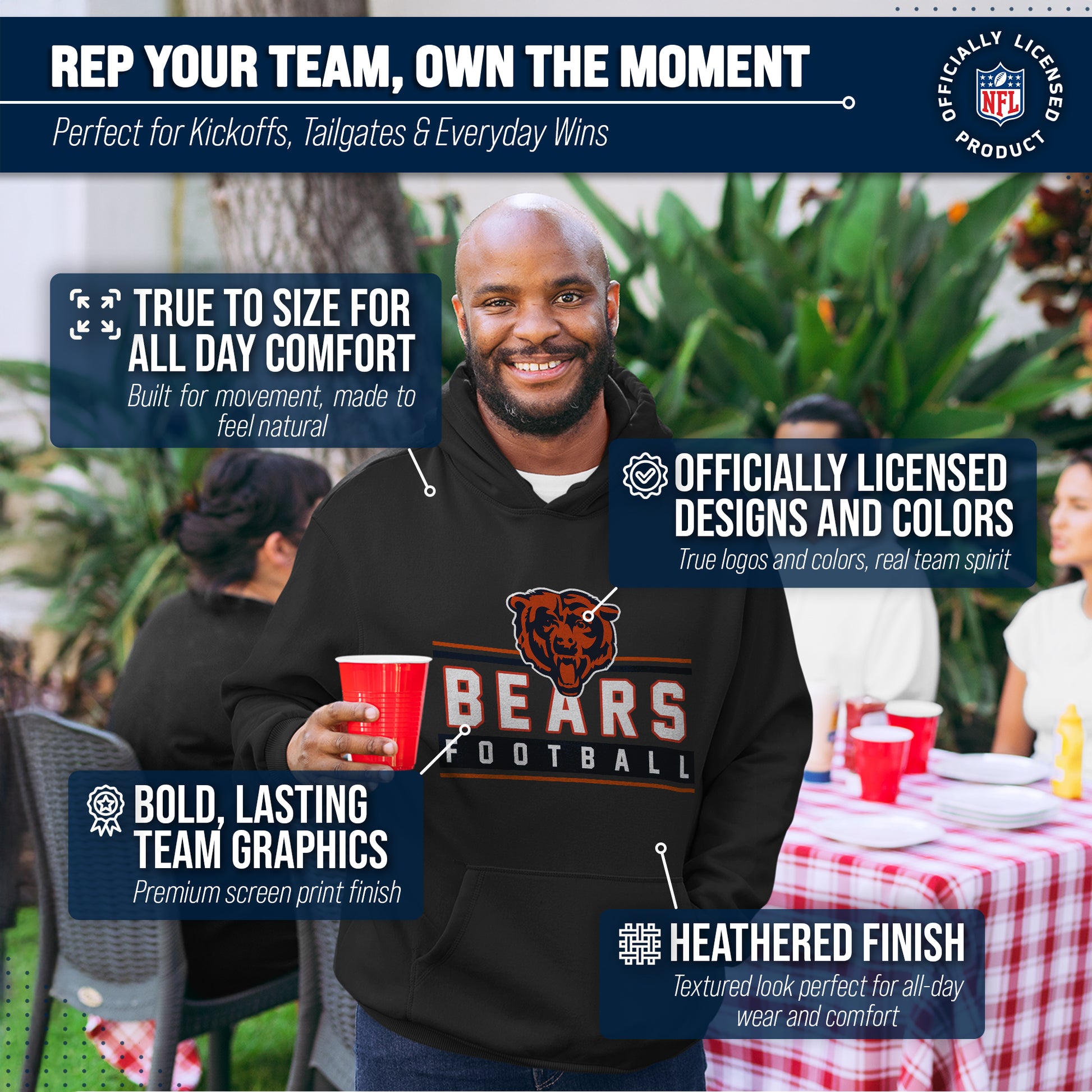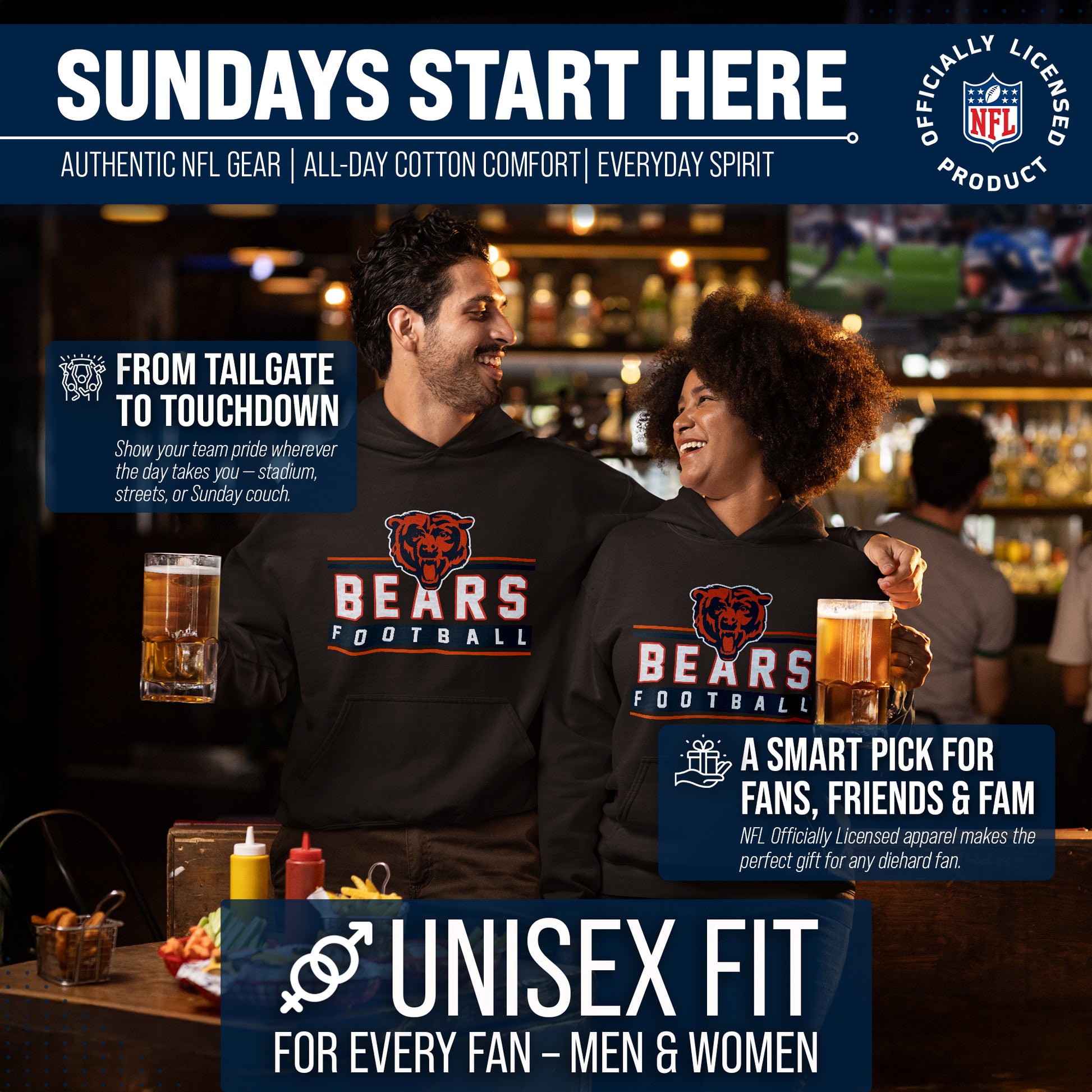 The True Fan womens and mens Chicago Bears hoodies are the ultimate light, soft, & comfortable sweatshirts. These Chicago Bears pullover hoodies are the most versatile football apparel. Let us help you celebrate your team pride with our durable and lightweight Chicago Bears hoodies for men and women. This sweatshirt features a quality, screen printed wordmark that will last. The official wordmark design gives you the look of a loyal and seasoned sports fan and the unique, dual-blended material gives a trendy, distressed look without that heavy printed feel. Made of 50% ringspun cotton and 50% polyester, the dual blend material is extremely soft and smooth. These Chicago Bears hoodies for men and women come without a tag, so you'll never feel irritated by tags again! This comfortable Chicago hoodie makes the best birthday, Christmas, or graduation gifts for Bears fans.