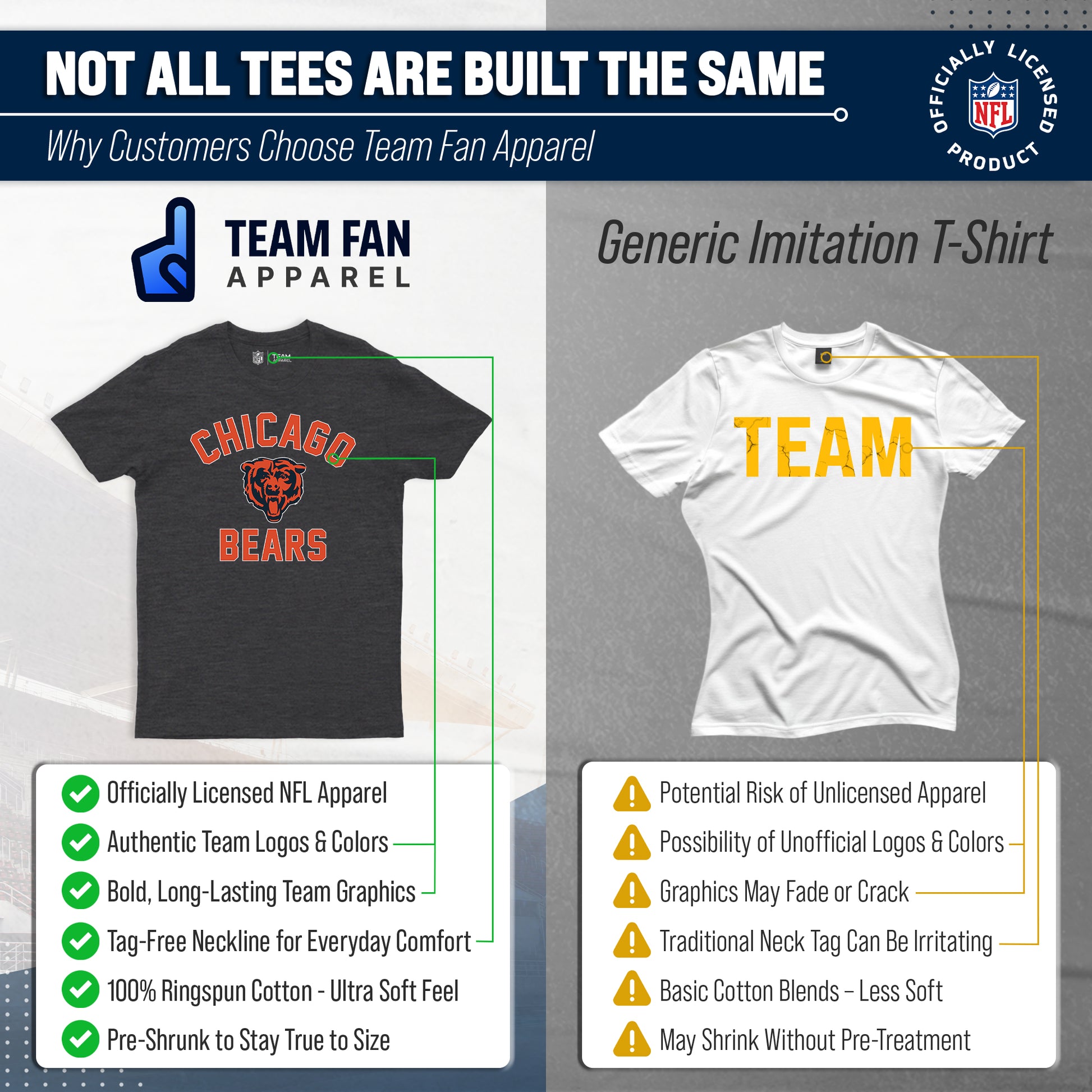 There's nothing more exciting than a much-anticipated gameday, and our Adult Gameday Chicago Bears football tshirt is the ideal shirt to wear on gameday whether you're tailgating, at the game, at the bar, or watching from the comfort of your own home. This Chicago tshirt is super comfortable, runs true to size, and is great for showing team pride all year long! The semi-fitted style makes this the perfect Chicago shirt for both men and women. Our Chicago Bears shirts really are the perfect fan apparel for tailgates and sports games. The Chicago Bears tshirt is lightweight and ideal for warmer weather or as an extra layer during colder months. Our Bears shirts for men and women are essential Chicago apparel for football fans. Our Gameday Adult Football shirts come in primary team color, navy or black, and in charcocal heather. Our tagless Chicago Bears t shirt ensures the most comfortable fit. This semi-fitted tshirt is made froma cotton poly blend; 3/4"" double-needle topstitched collar makes for comfortable fit around the neck and shoulders. This high quality Chicago t-shirt features a double-needle sleeve and bottom hems. These are high quality Bears graphic shirts for men and women. The graphics will stay crisp wear after wear, and year after year. The thermal printed graphics are high definition, official true team colors, and also resist fading. This Bears tshirt is made with high stitch density for smoother printing surface. Our pro Chicago Bears tshirts for men and women make the best Bears gifts. This piece of Chicago Bears apparel is the perfect birthday or Christmas gift for any professional sports fan. This mens tee is absolutely perfect for tailgating, stadium fun, or watching the game at home.