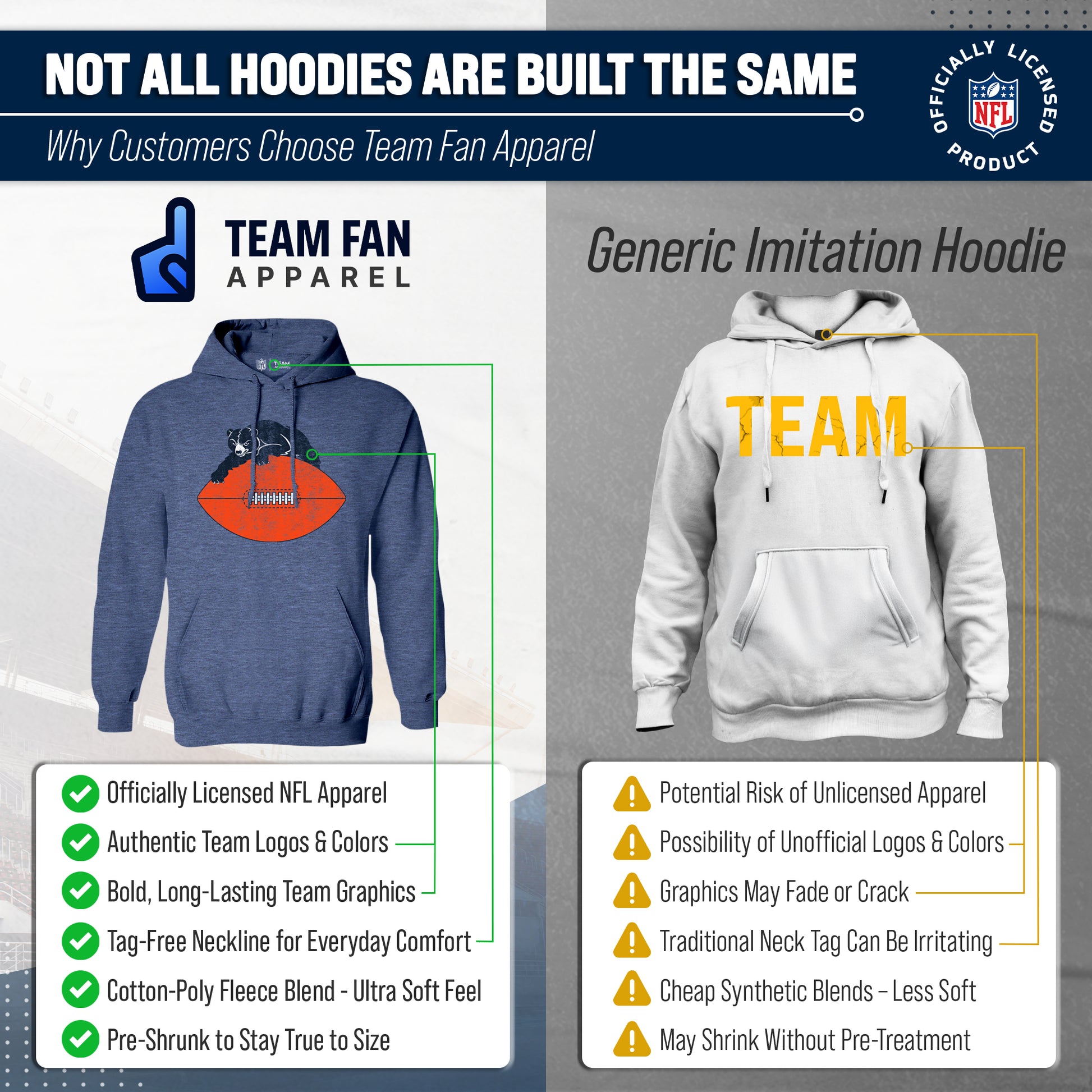 Get Ready to Show Your Team Spirit in the Most Comfortable Way Possible with Team Fan Apparel's Chicago Bears NFL Modern Throwback Hooded Sweatshirt! Made with ultra-soft fleece material, this hooded sweatshirt is perfect for game days or just lounging around the house. With its unique vintage design and performance material, you can proudly represent your favorite team wherever you go. Not only is it officially licensed by the NFL, but it also comes in adult unisex sizing so both men and women can rock their team pride. The modern throwback design adds a classic touch to your gameday attire, making you stand out from the crowd. So why settle for a basic sweatshirt when you can show off your style and support your team at the same time? Grab your NFL Modern Throwback Hooded Sweatshirt from Team Fan Apparel today and get ready to cheer on your Bears in ultimate comfort!