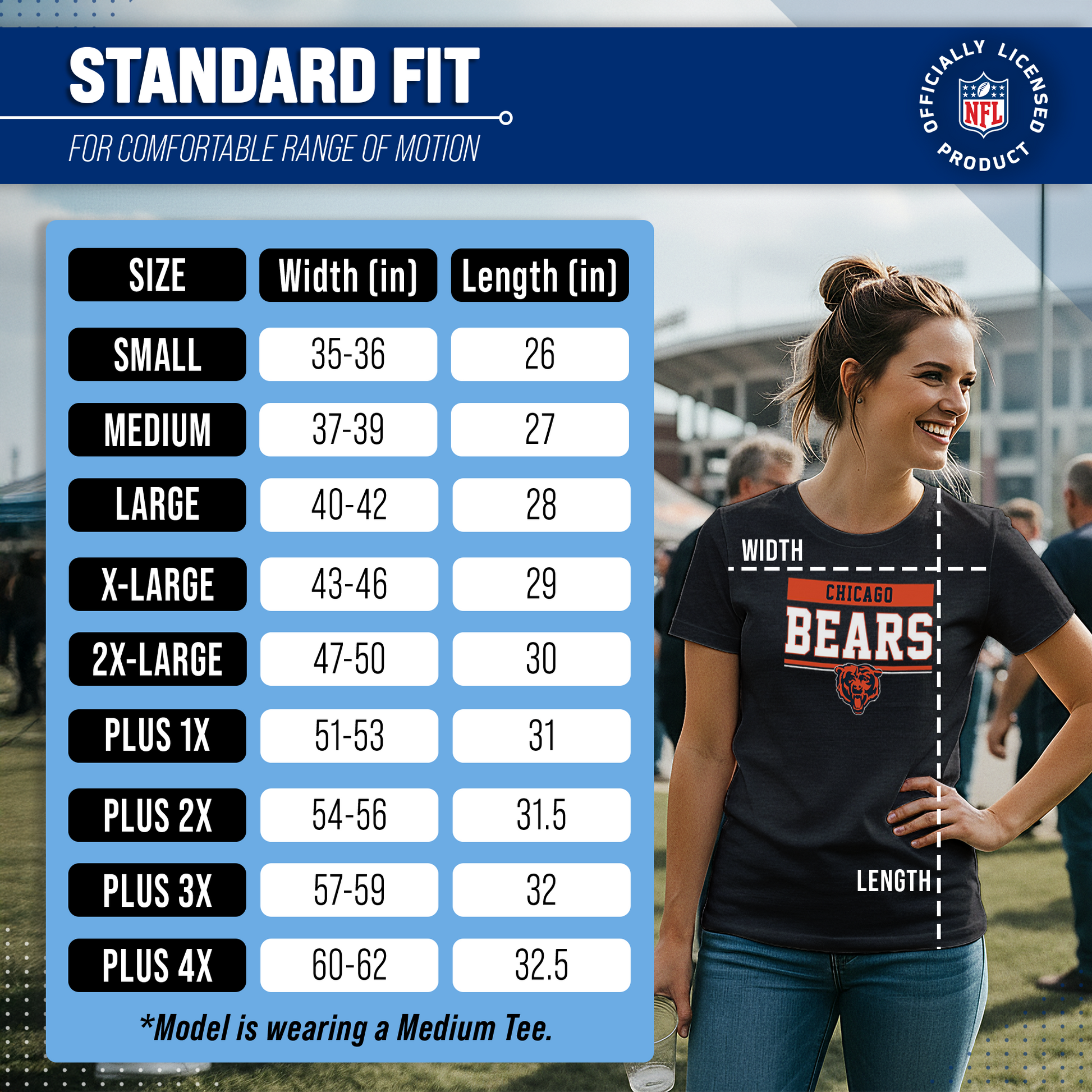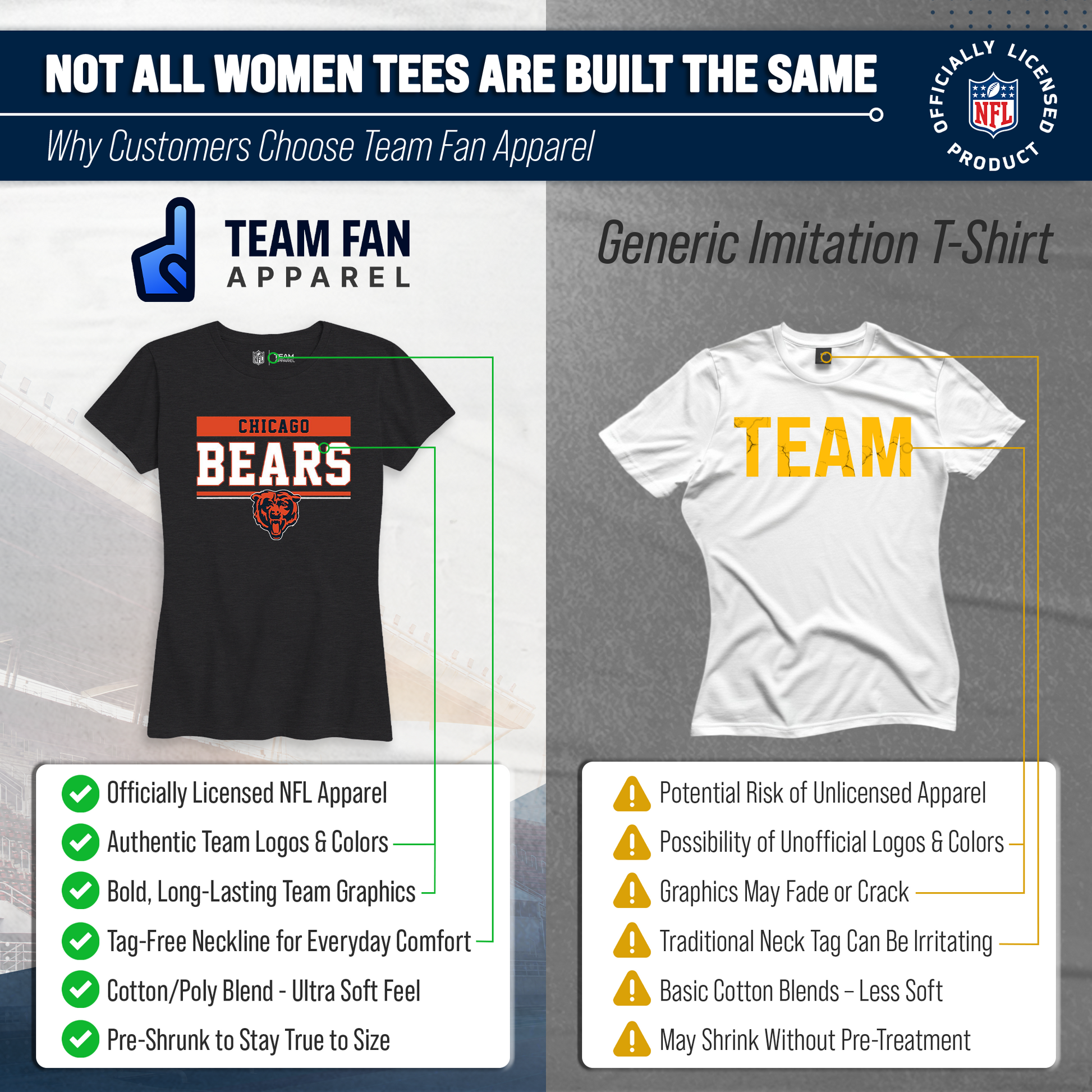 Our officially licensed womens Chicago shirt is super comfortable, runs true to size, and is great for showing off your Chicago Bears pride. The high-quality thermal printed logo will look fresh after years of wear, making it a great alternative to your womens Chicago Bears jersey. Our charcoal t-shirt has a relaxed yet contoured fit for a casual yet feminine look. The short sleeve shirt is perfect with shorts for tailgates in warmer months, or with jeans or leggings and a sweater during colder months. Available in plus sizes, our Chicago shirts for women plus size or straight size will make anyone feel comfortable enough to show off their love for the Chicago Bears. If you're looking to give team t shirts for women as a gifts, our womens charcoal tshirt is the Bears shirt women will love. Officially licensed to ensure no counterfeit designs or colors, our Chicago Bears womens shirts are great for superfans. 100% ringspun and made from a blend of cotton and polyester, designed to keep you cool and comfortable all year long. The womens gameday football t shirt will definitely become one of your favorite tops.