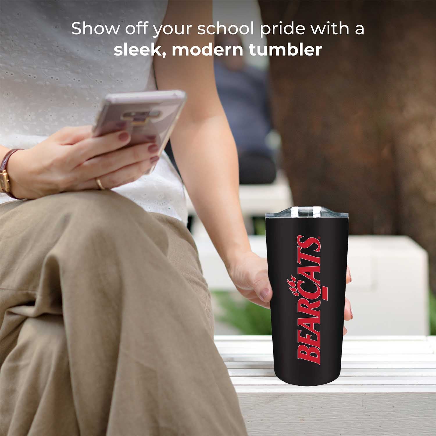 Our stainless steel tumbler mugs are designed for constant use in any type of setting! At a sports game? These insulated tumblers are compact and can fit in most cup holders. On the move? Our contoured spout makes it easy to sip on the go! Your tumbler is there to compliment your Cincinnati sweatshirt when you need to stay warm and there when you're looking for an ice-cold refreshment. No matter the setting, show your school pride while properly and efficiently preserving the desired temperature of your beverage! This Cincinnati  Bearcats travel mug also makes a great gift if you're looking to give someone a cool Bearcats novelty, this Cincinnati  Bearcats travel mug compliments any kind of Bearcats apparel. Combine the Cincinnati water bottle with a Cincinnati pillow, a Cincinnati face mask, and a Cincinnati blanket and give a whole haul of Bearcats gear to your favorite Cincinnati  Bearcats alumni! All of our products feature the official team colors, logos and lettering. We don't skimp on quality in any way. The colors are always vibrant and the graphics are always accurate and brimming with team spirit.