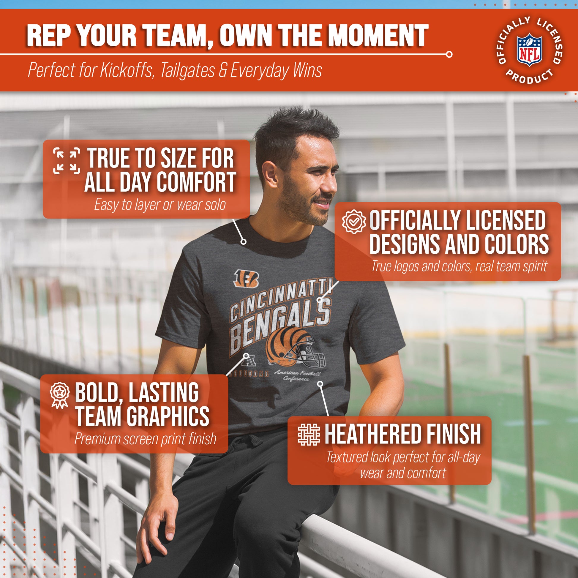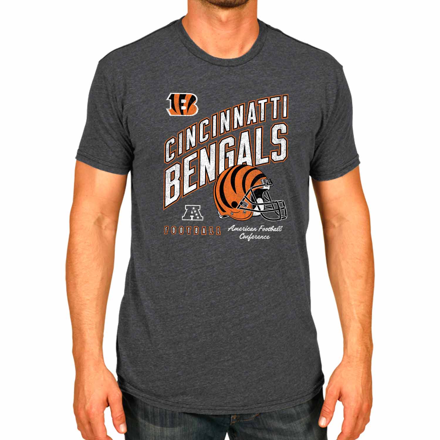 Cincinnati Bengals NFL Adult Distressed Helmet Tag-Less T-Shirt - Heather Charcoal