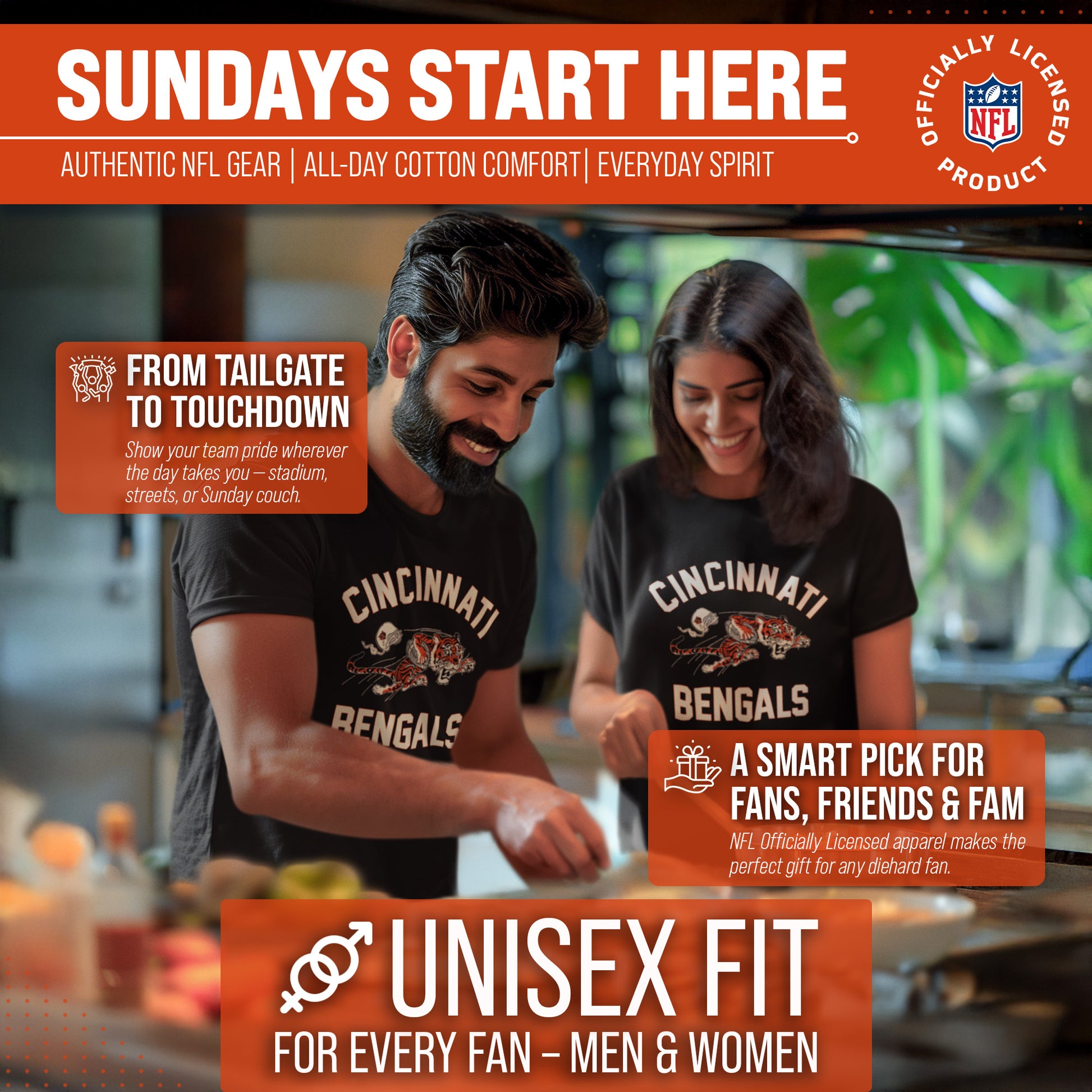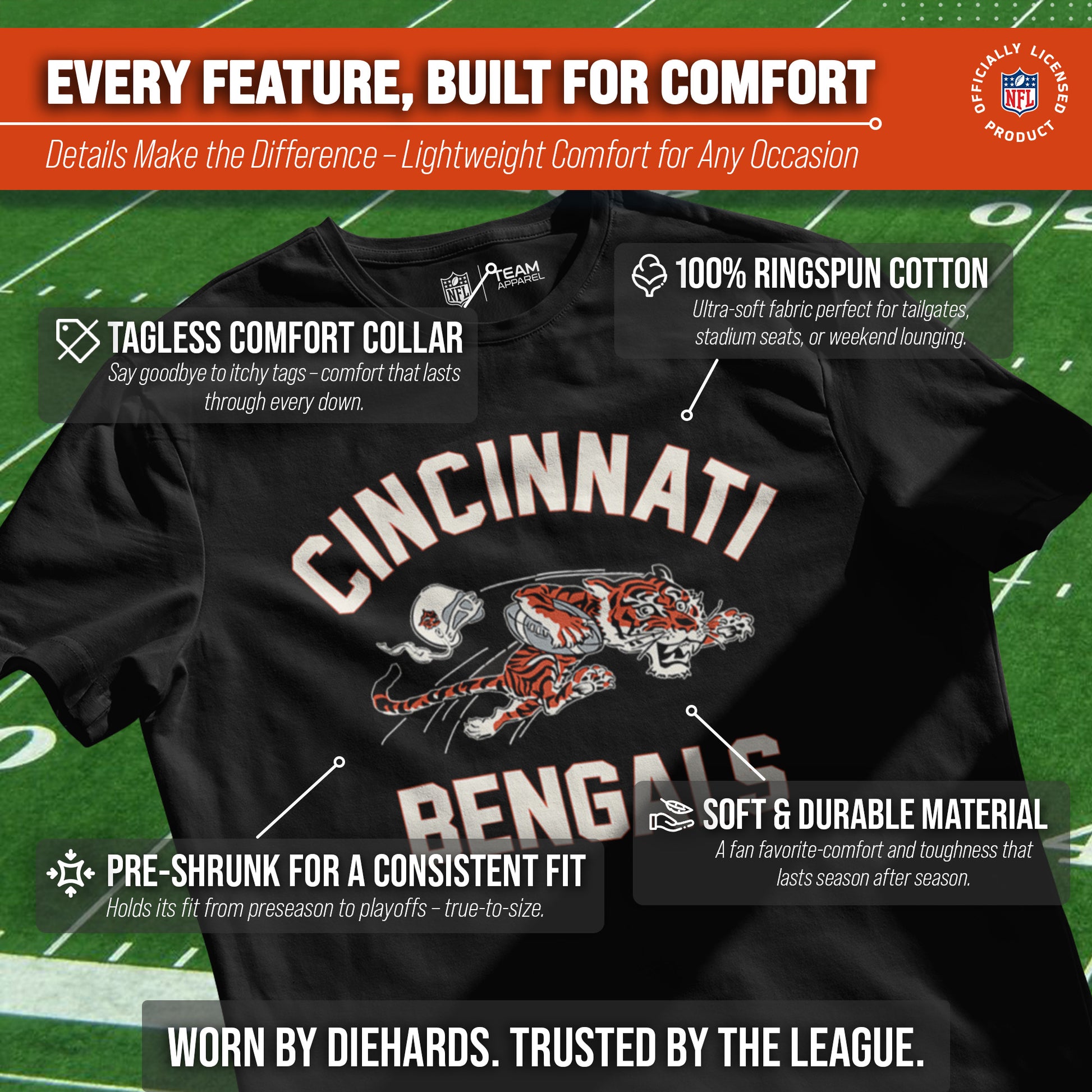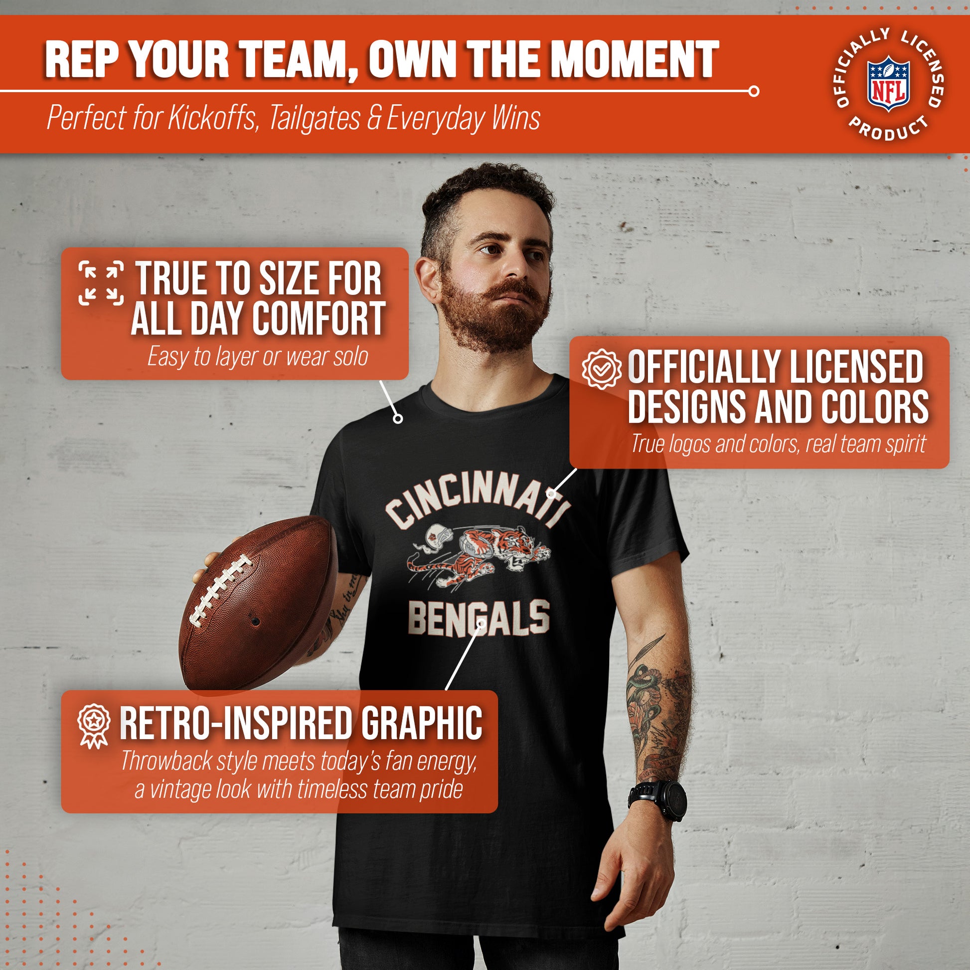 Show off Your Team Spirit with the Comfortable and Stylish Cincinnati Bengals NFL Adult Retro Gameday T-Shirt!  Support your favorite football team in style and comfort with this officially licensed Bengals t-shirt. Made from a soft and breathable ring-spun cotton, this shirt is perfect for game day or everyday wear. The tag-less design eliminates any annoying tags that can cause discomfort, making it even more comfortable to wear.  Featuring a retro gameday design, this unisex t-shirt is suitable for both men and women. The short sleeve style is perfect for warmer weather or layering under a jacket during colder months. Whether you're cheering on your team at the stadium or watching the game from home, this t-shirt is the ultimate fan apparel.  So go ahead and show off your Bengals team pride with the NFL Adult Retro Gameday T-Shirt - because nothing beats comfortable, stylish, and officially licensed fan gear!