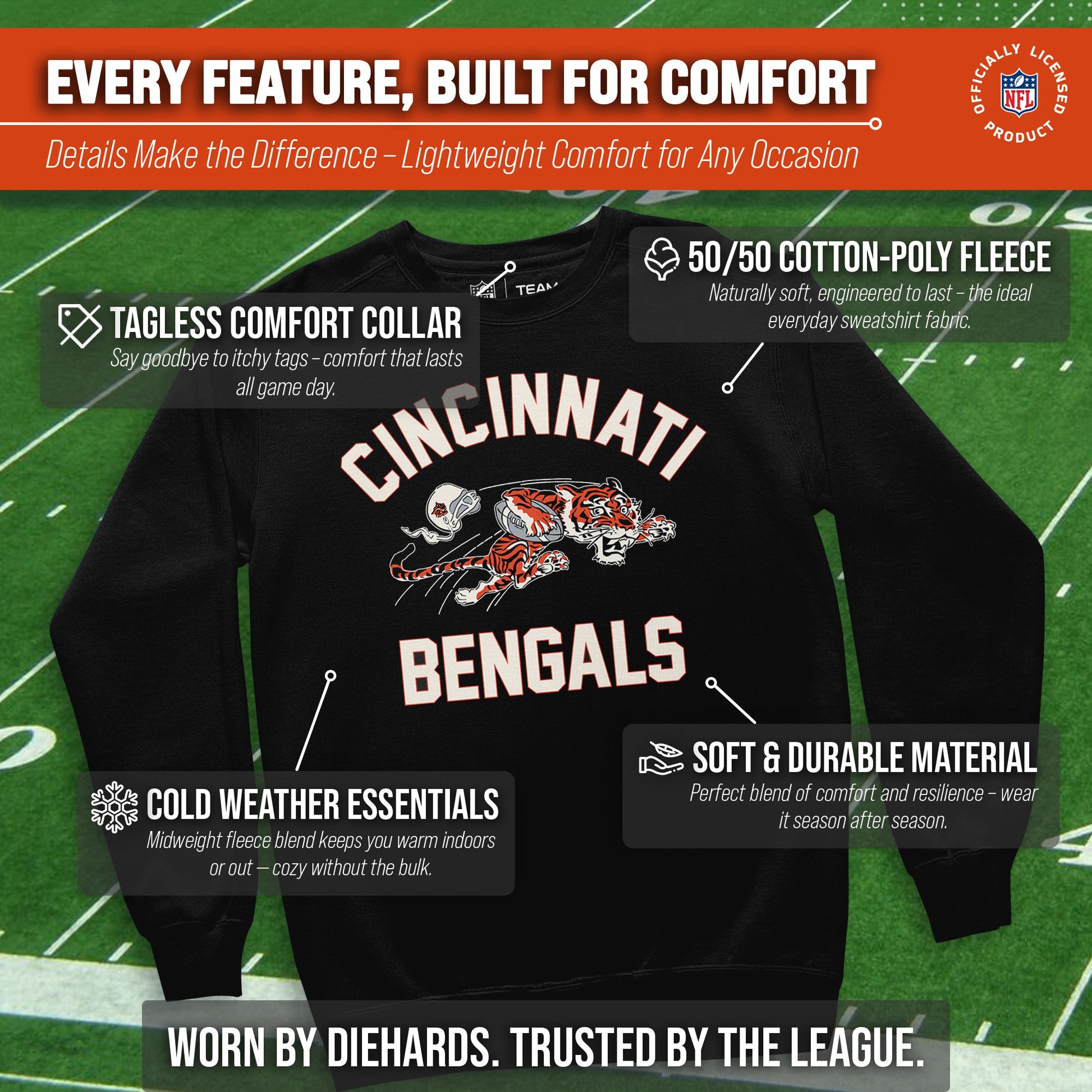 Cincinnati Bengals NFL Adult Unisex Retro Gameday Ultra Soft Fleece Crewneck Sweatshirt - Black