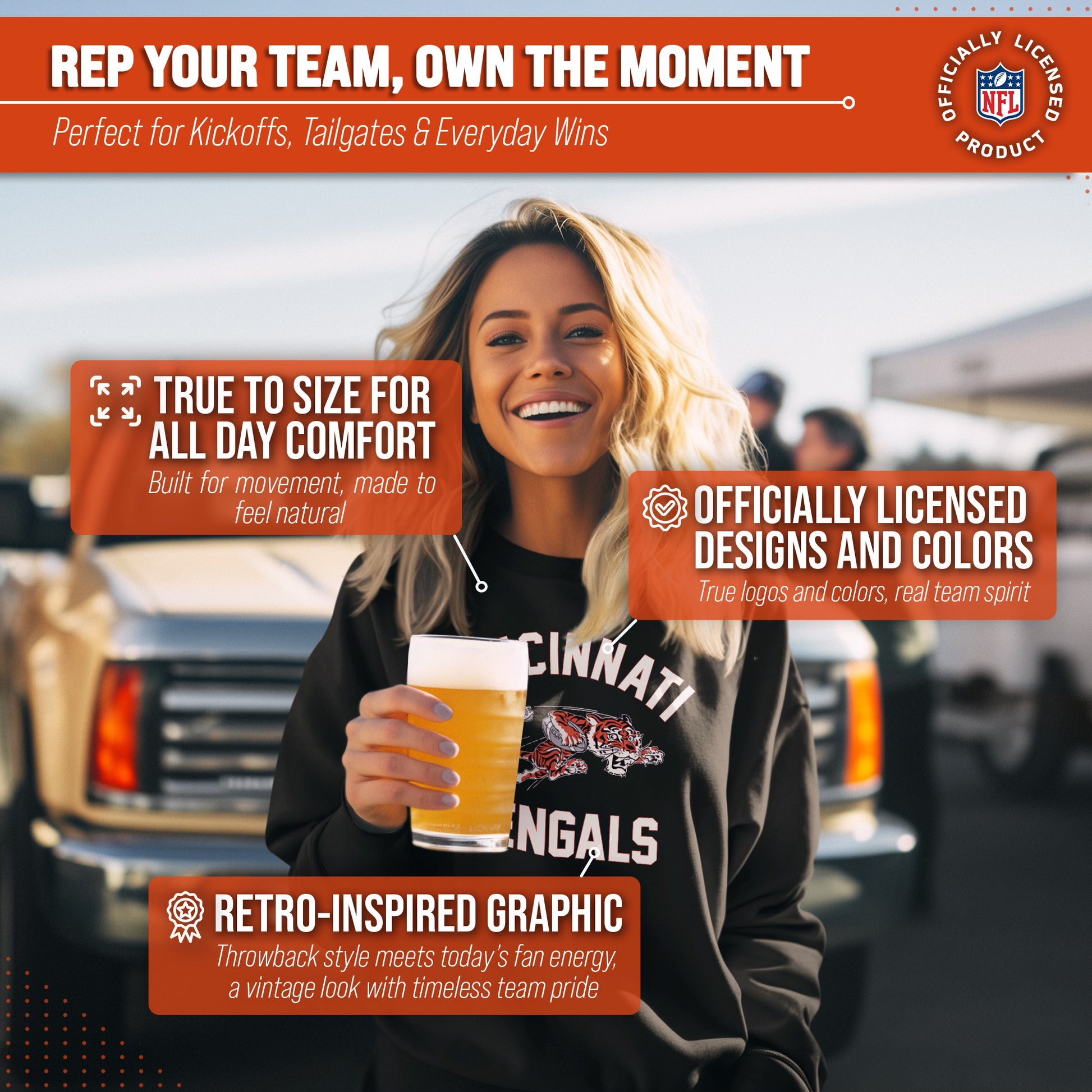Get Ready to Show Your Team Spirit in the Most Comfortable Way Possible with Team Fan Apparel's Cincinnati Bengals NFL Retro Gameday Crewneck Sweatshirt!  Made with ultra-soft fleece material, this crewneck sweatshirt is perfect for game days or just lounging around the house. With its unique design and performance material, you can proudly represent your favorite team wherever you go.   Not only is it officially licensed by the NFL, but it also comes in adult unisex sizing so both men and women can rock their team pride. The retro gameday design adds a vintage touch to your gameday attire, making you stand out from the crowd.  So why settle for a basic sweatshirt when you can show off your style and support your team at the same time? Grab your NFL Retro Gameday Crewneck Sweatshirt from Team Fan Apparel today and get ready to cheer on your Bengals in ultimate comfort!