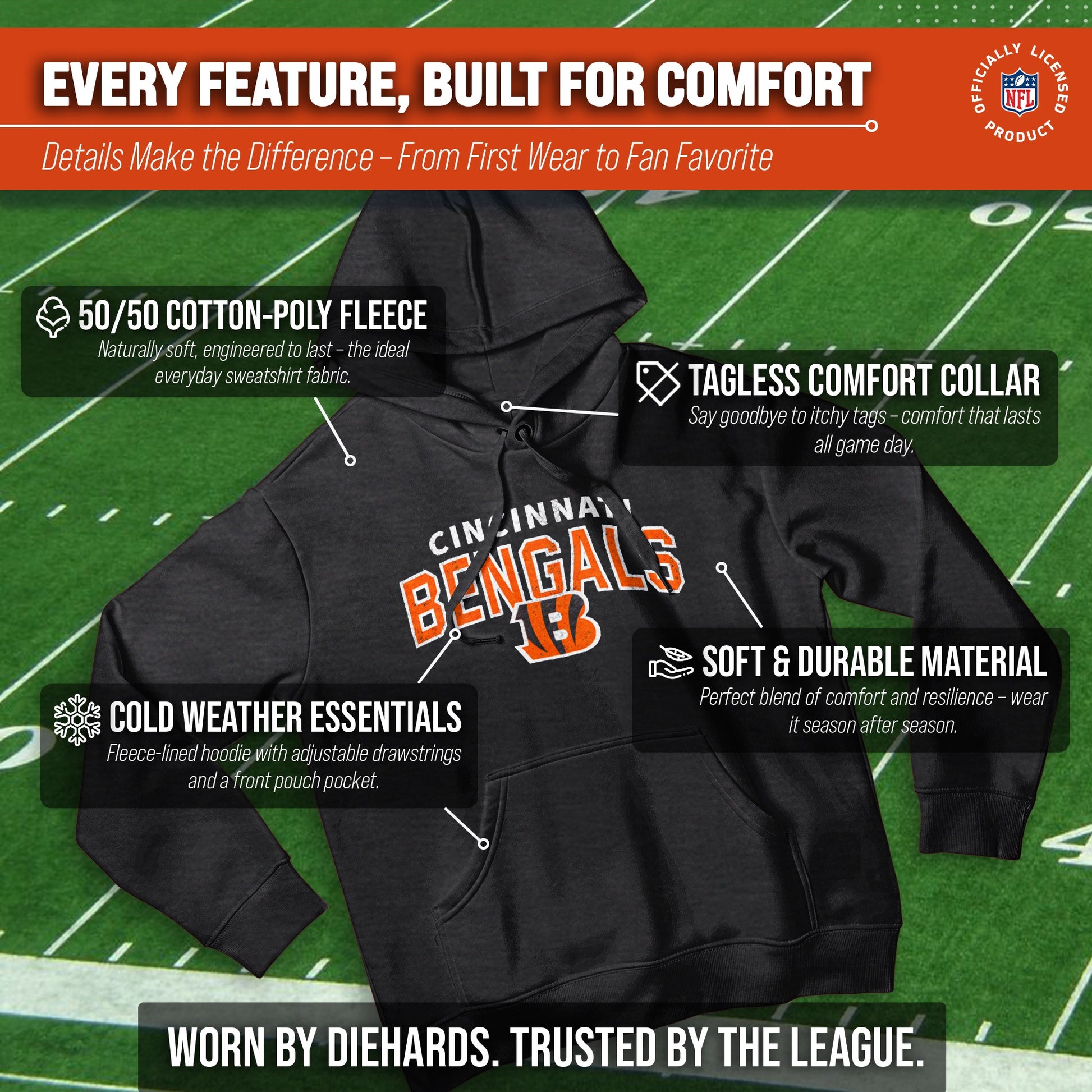 Get Ready to Show Your Team Spirit in the Most Comfortable Way Possible with Team Fan Apparel's Cincinnati Bengals NFL Starting Fresh Hooded Sweatshirt!  Made with ultra-soft fleece material, this hooded sweatshirt is perfect for game days or just lounging around the house. With its unique vintage design and performance material, you can proudly represent your favorite team wherever you go.   Not only is it officially licensed by the NFL, but it also comes in adult unisex sizing so both men and women can rock their team pride. The Starting Fresh design adds a classic touch to your gameday attire, making you stand out from the crowd.  So why settle for a basic sweatshirt when you can show off your style and support your team at the same time? Grab your NFL Starting Fresh Hooded Sweatshirt from Team Fan Apparel today and get ready to cheer on your Bengals in ultimate comfort!