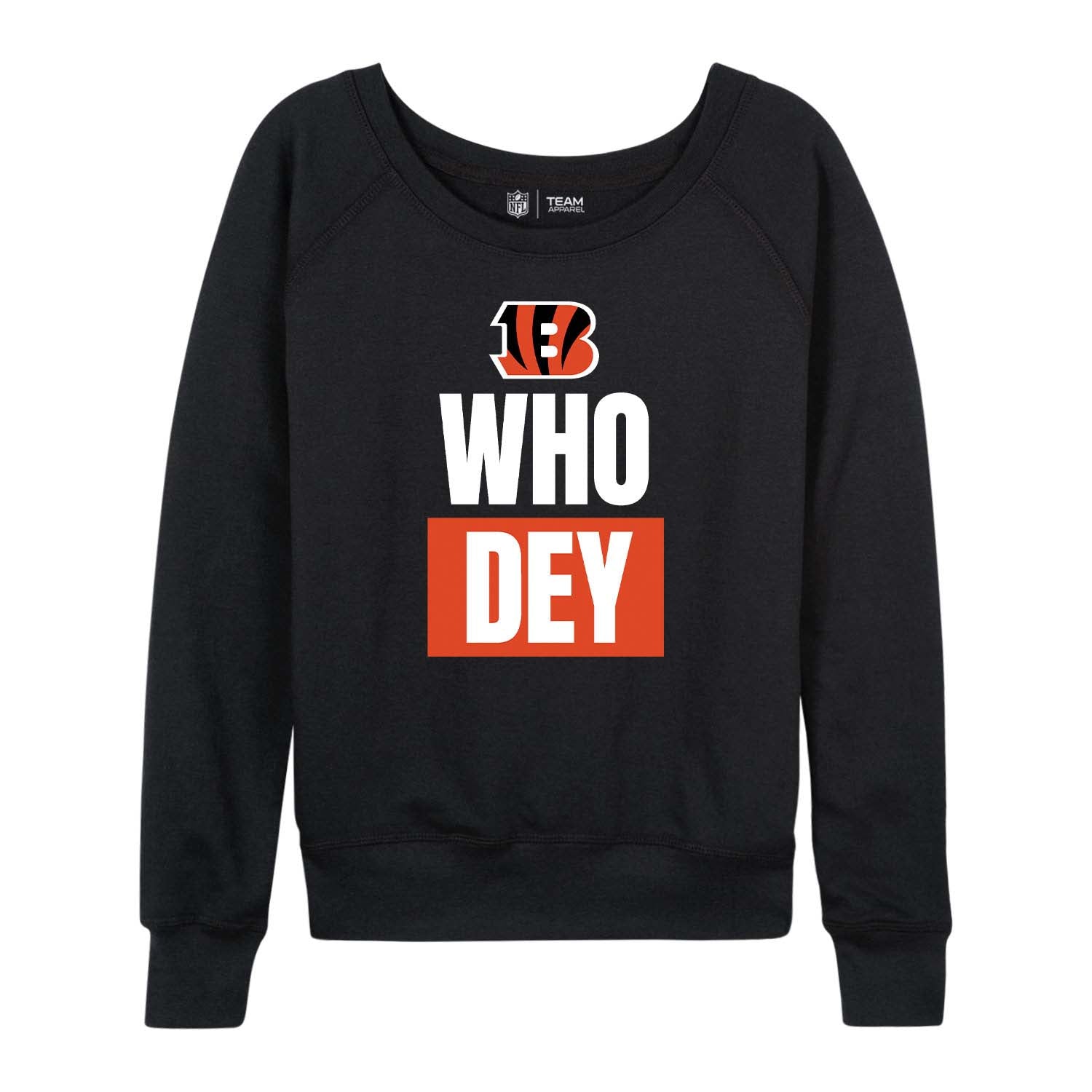 Our Cincinnati slogan womens Slouchy Crew is the perfect way to get ready for football season. With its raglan sleeves, 1 x 1 rib knit crew neck and cuffs, and slouchy fit, this long sleeve womens crewneck pullover will quickly become your favorite piece of womens Bengals apparel. Made from 60% ringspun cotton and 40% polyester lightweight French terry, this is the most comfortable Cincinnati crewneck. The slouchy Bengals crew for women is available from size small up to size 3XW, so you'll be able to find the right sized Cincinnati slouchy crewneck for you. Features the official Cincinnati Bengals slogan, the graphics will stay crisp and wear after wear. All Cincinnati colors and fonts are officially licensed and are of the highest of quality. This Cincinnati Bengals slouchy crew is perfect for tailgates and football games. Wear the lightweight crewneck alone in warmer weather or layer it with warm clothes during colder months. Tackle the chilly football season with our sensitive-skin-approved womens crew. This long sleeve Cincinnati Bengals slogan womens crew is tagless and has a relaxed, slouchy fit for a casual, comfy look, which is perfect for tailgating or wearing to the game. These Bengals slogan shirts for women are made from a cotton poly fleece blend. This fabric that will keep any fan comfortable, no matter the temperature.