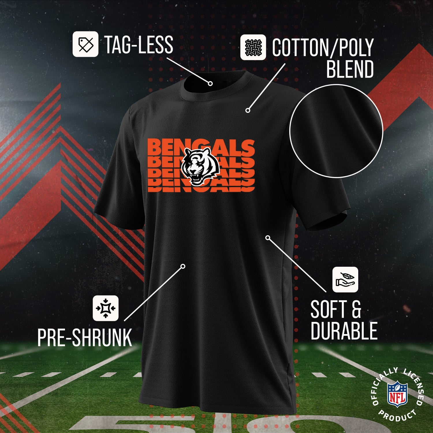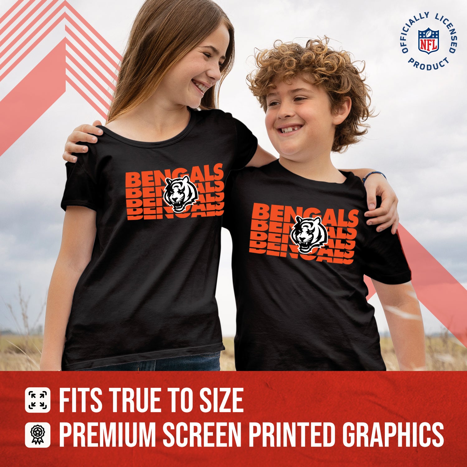 Cincinnati Bengals NFL Youth Repeating Logo Football T-Shirt Unisex Tag Free Comfortable - Black