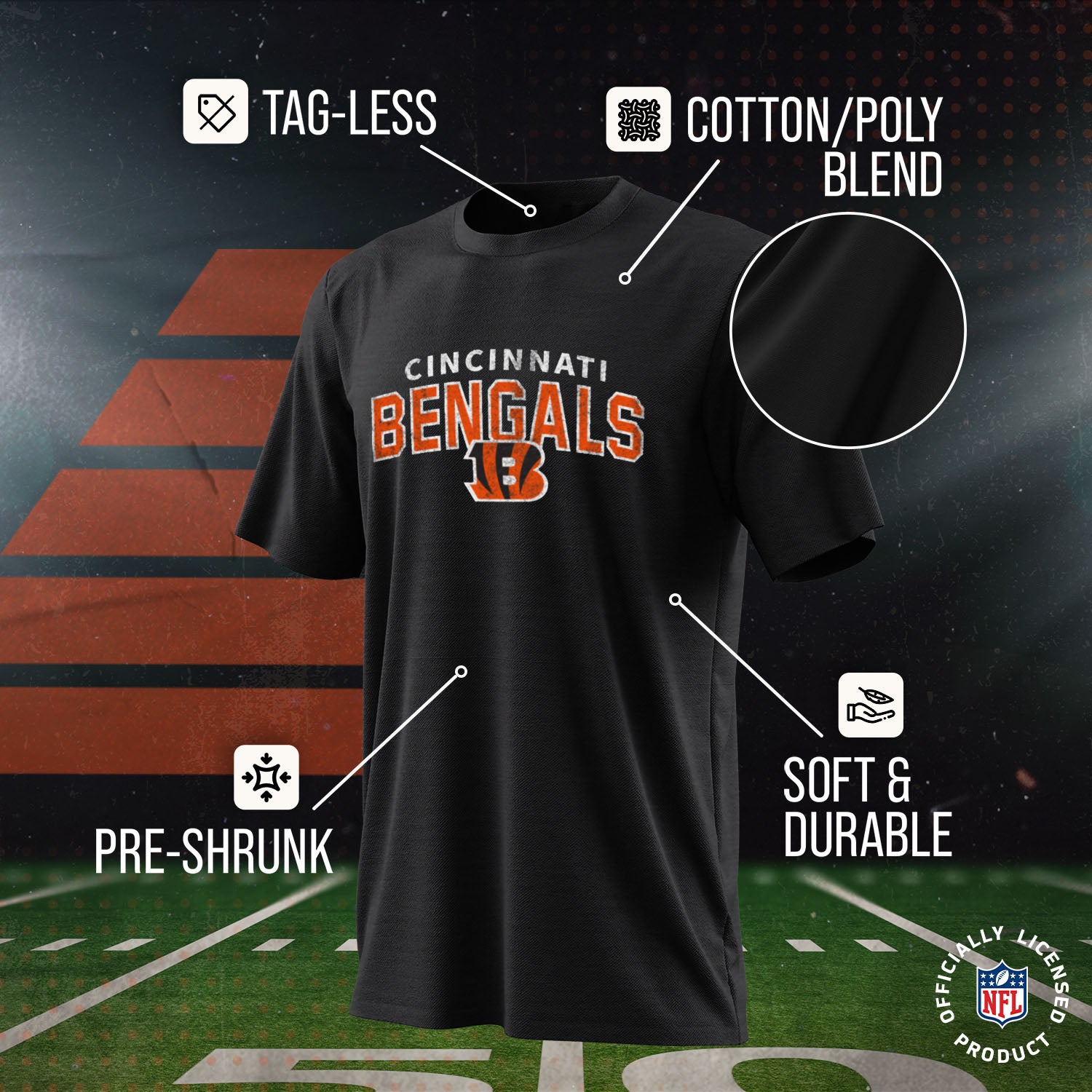 Cincinnati Bengals NFL Youth Starting Fresh Tee- Pro Football Tag-Less T-Shirt For Boys & Girls - Black