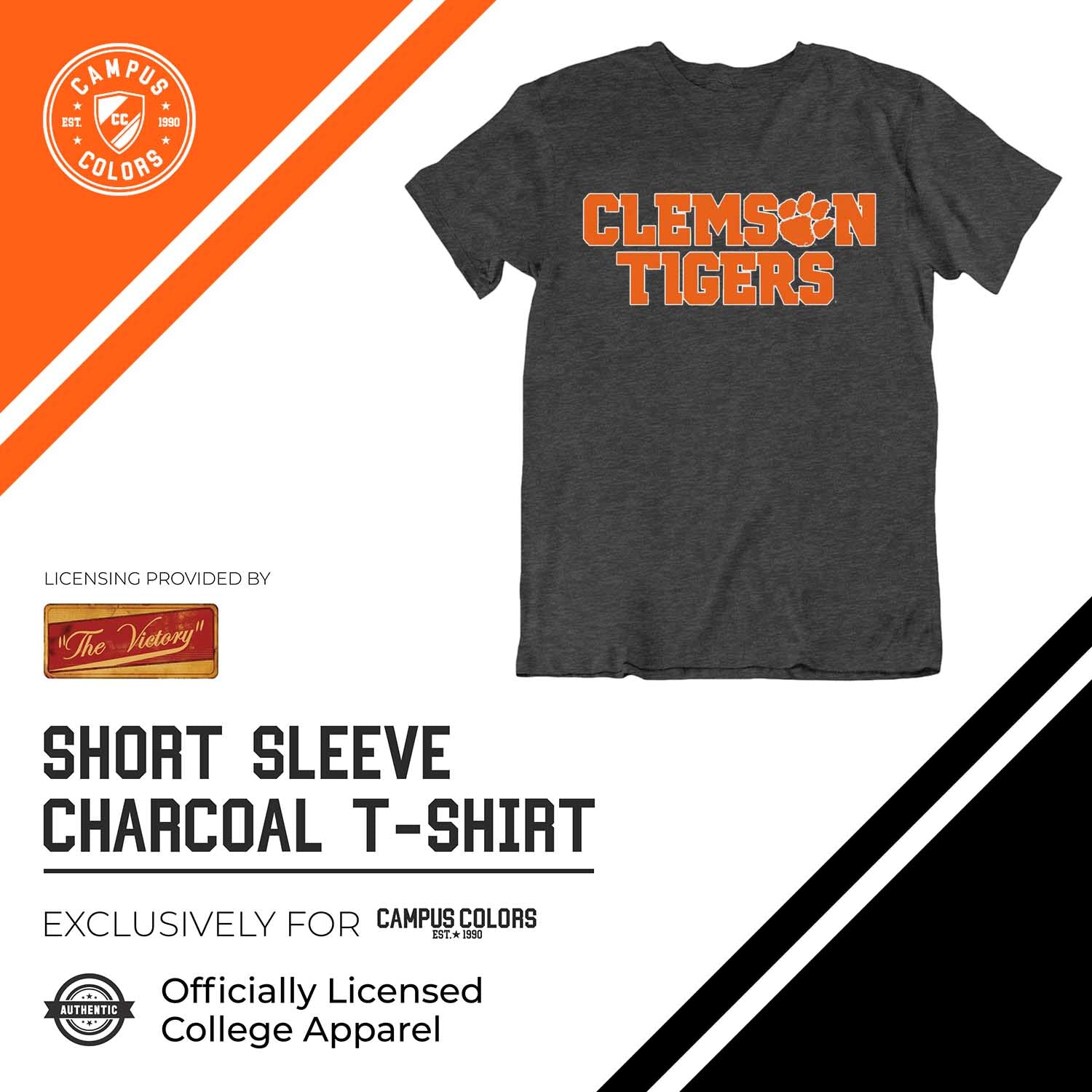 Clemson Tigers Campus Colors NCAA Adult Cotton Blend Charcoal Tagless T-Shirt - Charcoal