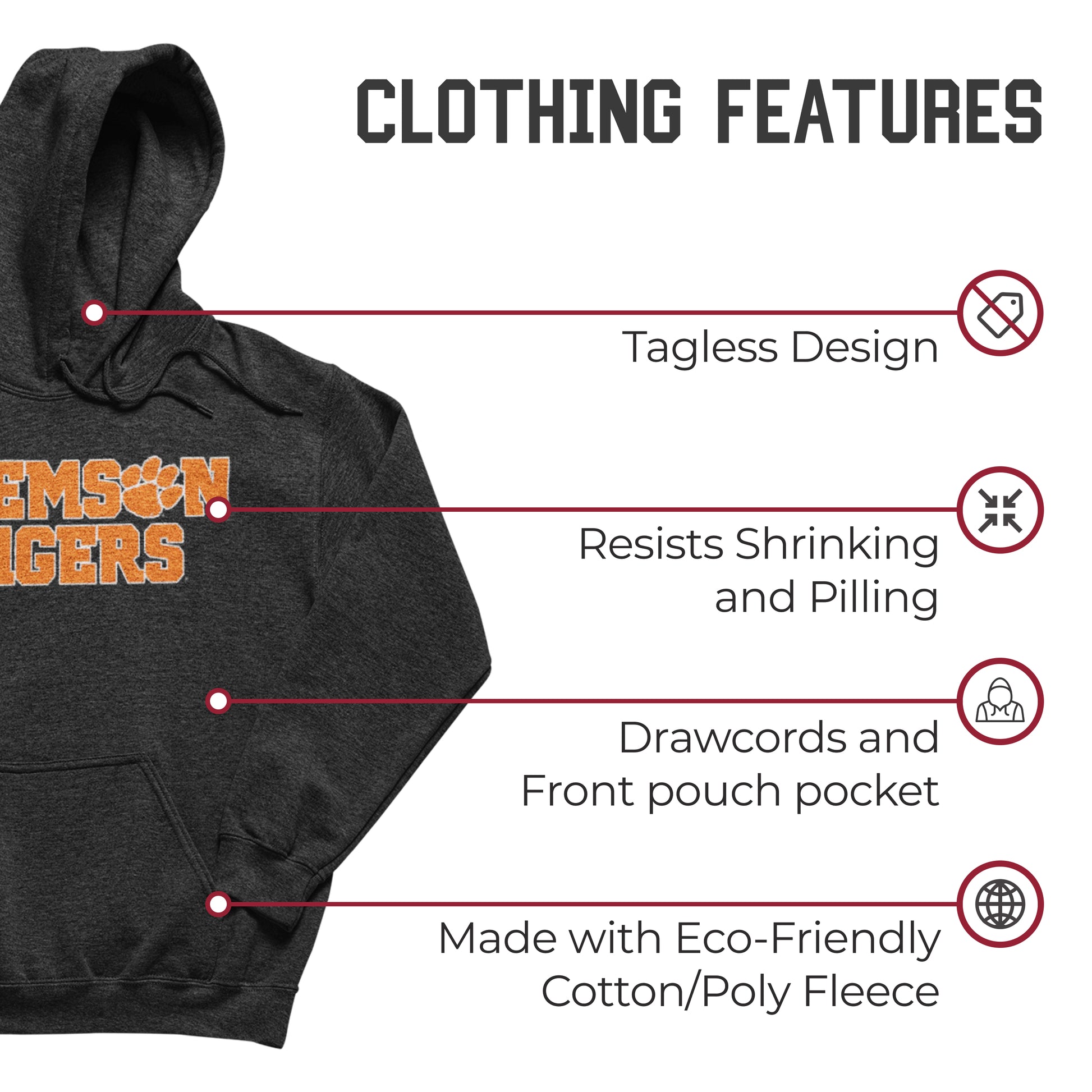 Clemson Tigers NCAA Adult Cotton Blend Charcoal Hooded Sweatshirt - Charcoal