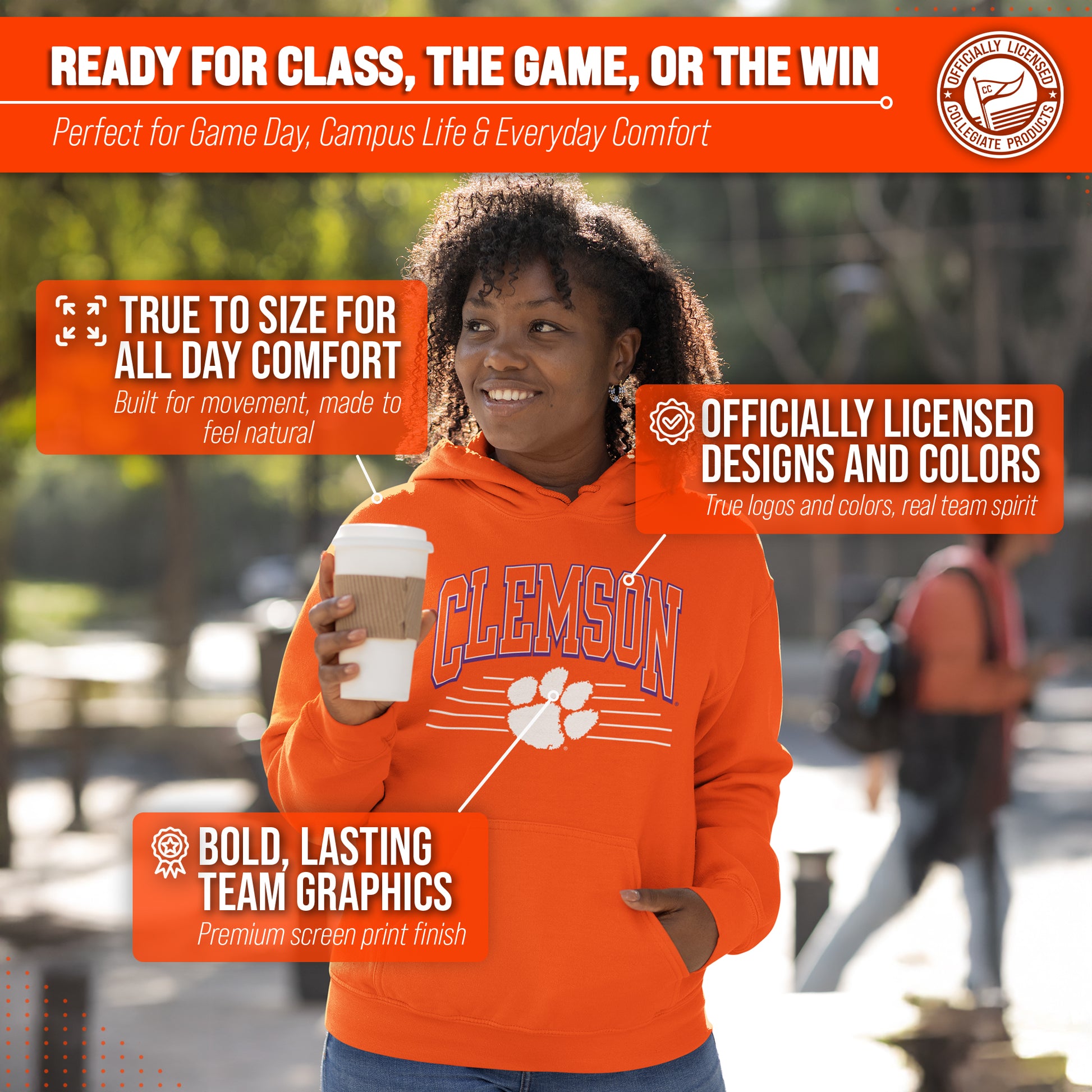 Show off your team spirit and stay warm in the NCAA Adult Unisex Overtime Classics Clemson Tigers Hooded Fleece Sweatshirt! This cozy sweatshirt is perfect for any Clemson fan, with its vibrant team colored design. Made from a comfortable cotton poly fleece fabric, this Tigers hooded sweatshirt features long sleeves, a front pouch pocket, and a hood to keep you extra snug on chilly days.  But that's not all - you can wear this Clemson sweatshirt game after game without worrying about wear and tear. It's the perfect addition to your college team apparel collection, whether you're cheering on your team at the stadium or just lounging at home. It is the number one Clemson item you'll want to have on the next cold game day!   So why settle for a plain old sweatshirt when you can show off your love for Clemson Tigers in style? Get your NCAA Adult Unisex Overtime Classics Hooded Fleece Sweatshirt today for yourself or any Tigers fan in your life and be confident know that you are rocking the most authentic and official gear!
